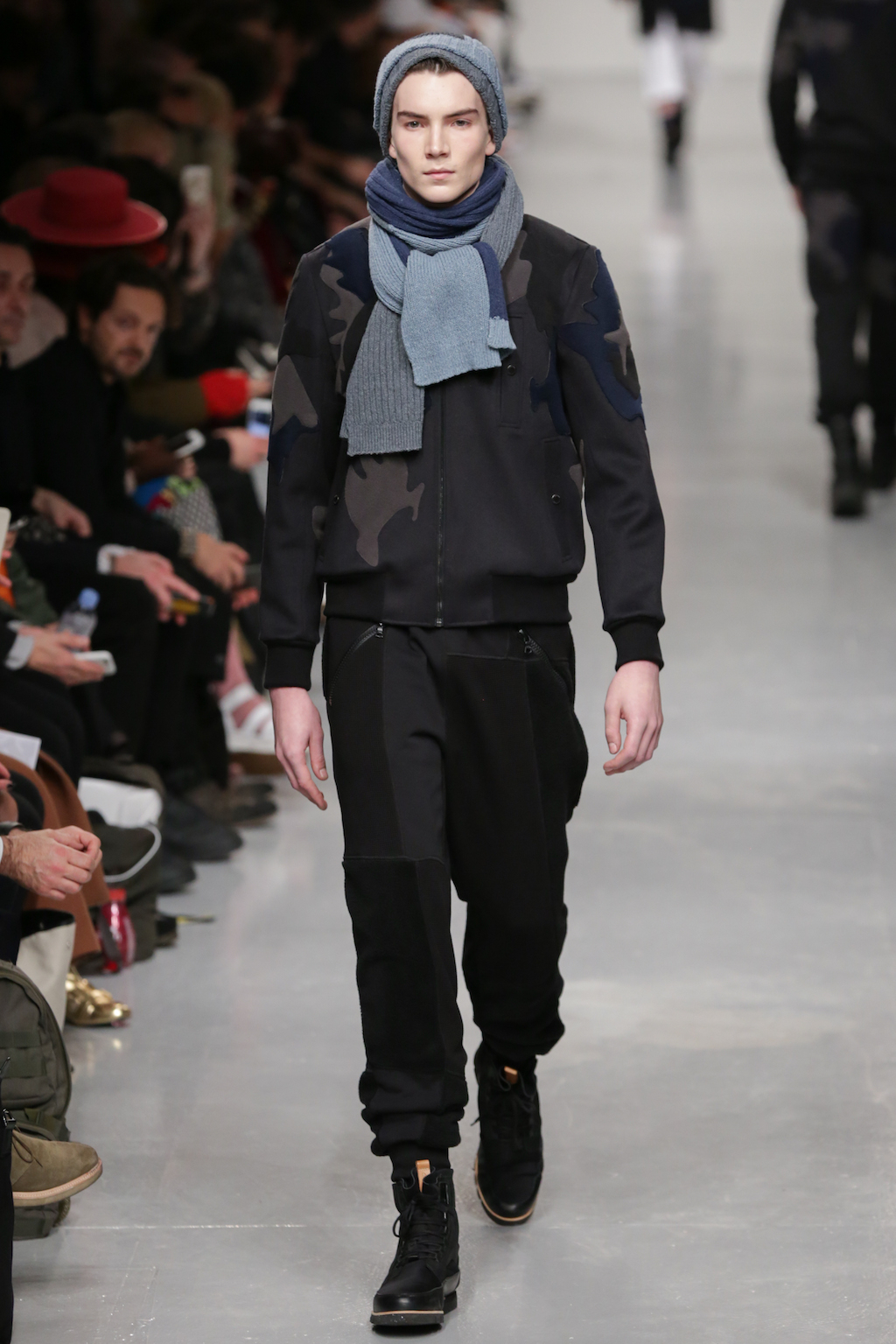 Citing Ellsworth Kelly’s ghost army as a point of inspiration, Christopher Raeburn plays on contradictions: camouflage that conceals while fluorescents reveal; utilitarian yet fun-loving designs and new creations from old materials to achieve equally experimental and wearable pieces.