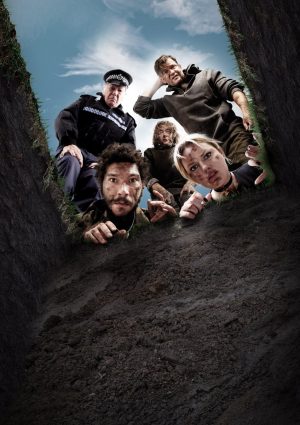 Jeff Rawle delightfully portrays Inspector Clout, a classic but tongue-in-cheek, irreverent and corrupt police detective. Stephan Boxer is brilliantly insane and perverse as Gerry, a frog farmer who converses with imaginary six foot amphibians and is perpetually high on toad venom-laced marijuana. His brother Roger’s dour expression and morbid conviction that he murdered his own mother is perfectly characterised by Julian Bleach. Joel Fry and Tom Bennett are convincing as kooky, desperate anti-vivisection terrorists Jago and Marc, and Gwyneth Keyworth is effective as their duplicitous object of affection, Caro.