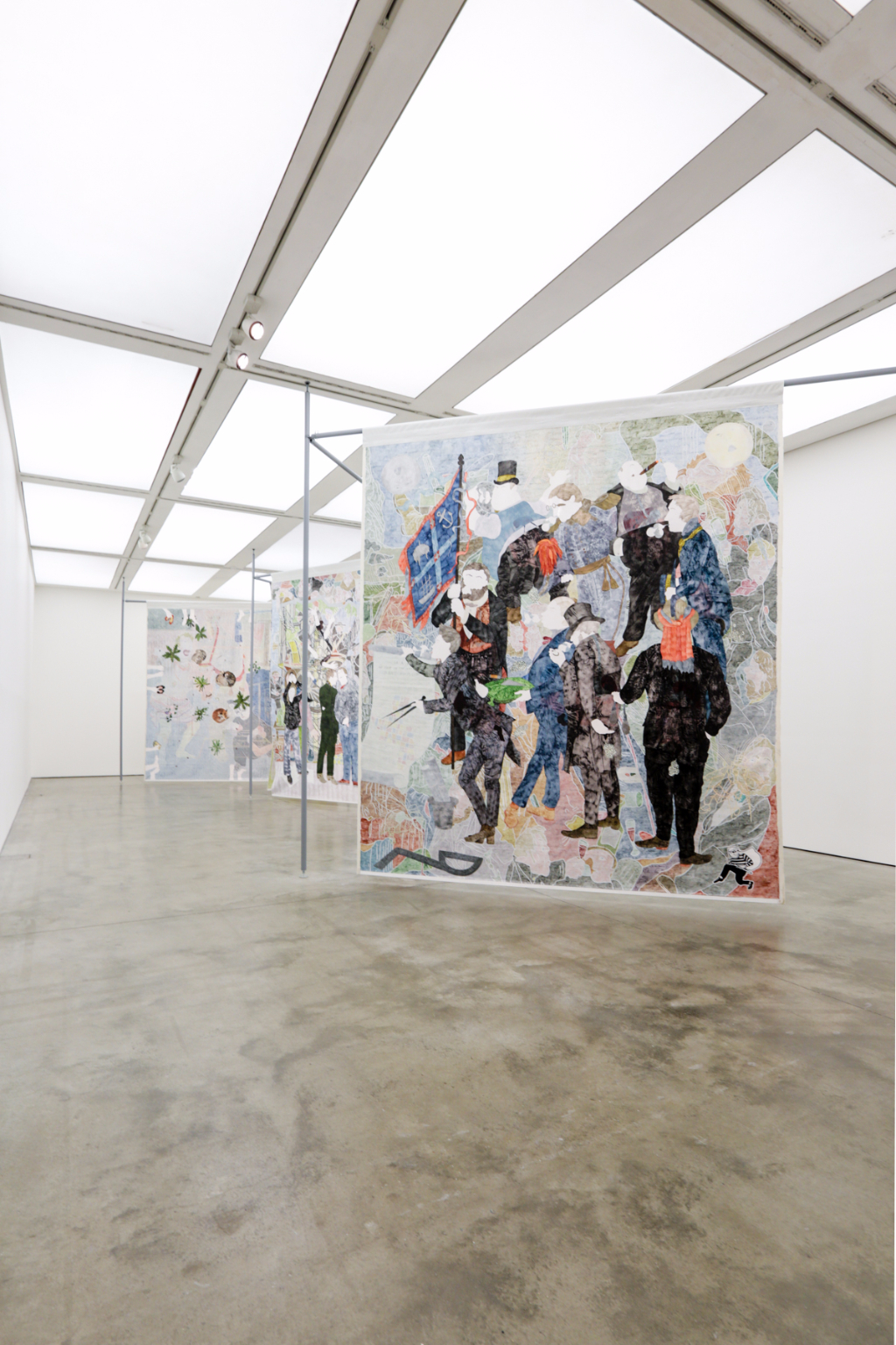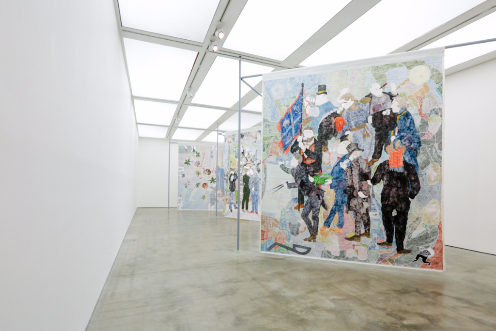 Johnson’s Warm Ties is an exploration of contemporary Australian identity – particularly their relationship with British colonialism. Made in collaboration with Artspace, Sydney, the Melbourne-based artist portrays complex identity politics through the medium of painting. The old sensibilities of British Australia are contrasted with depictions of crude elements of modern Australia. 19th-century men in top hats and refined dress are juxtaposed with a feminine figure using her camera phone, for instance.