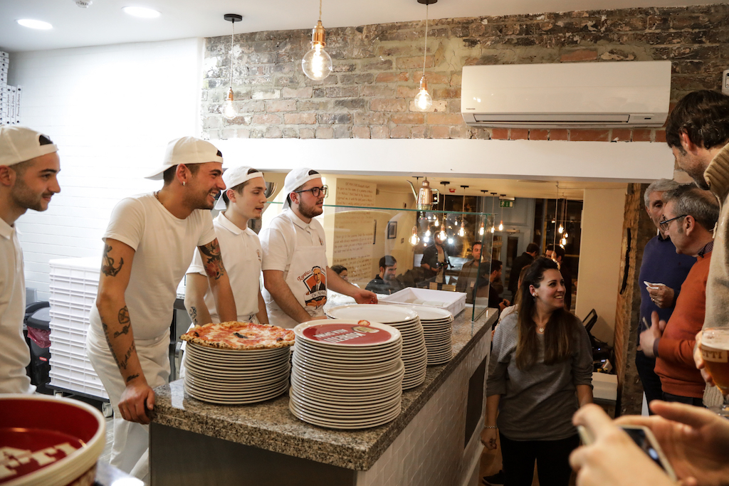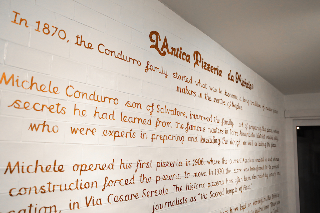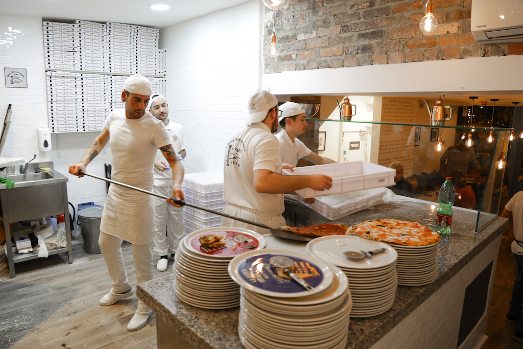 It took weeks for the team of young pizza makers – who all worked in Naples – to find the perfect temperature (of the room and the water) to leaven the dough. Those are in fact the only variables, the products come from Naples and the custom-made wood-fired oven too: with its 450-500 degrees, it takes only 60 to 90 seconds to make one pizza. Members of the Condurro family were present too and they were impressed with the resemblance to the original.