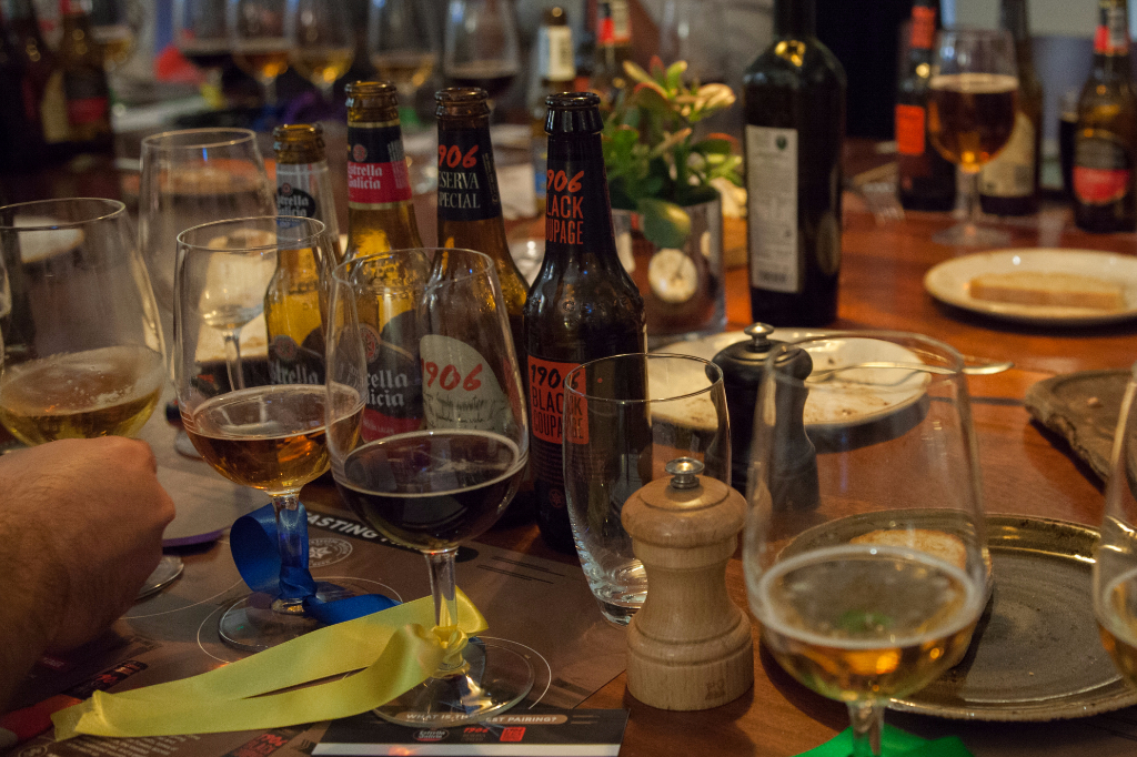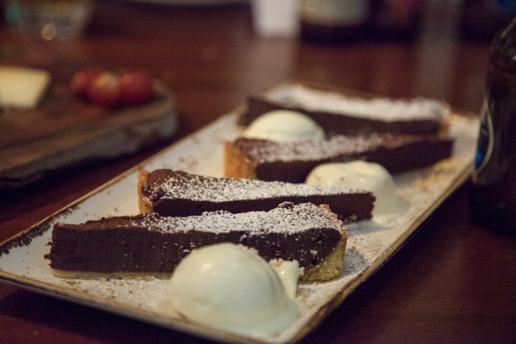 Funnily enough, the Reserva is actually a better pairing for the beautiful chocolate torte that comes next than the 1906 Black Coupage that’s suggested. This black lager is seriously rich, with notes you would normally expect to see in a doppelbock or porter. Dark chocolate, coffee and liquorice dominate, and although it’s a very interesting beer in and of itself, it’s just a little too much when paired with a dessert. The torte itself is incredible: chocolate as smooth as velvet, hitting that magic point between being gooey and silky with effortless ease.