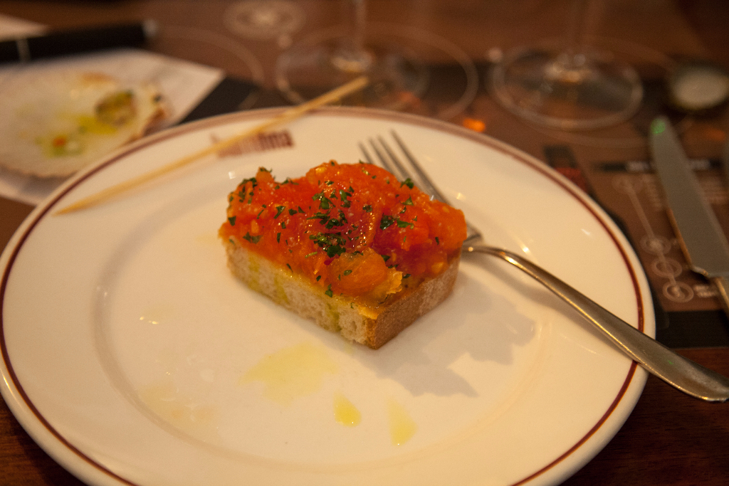 For many, it’s a chance to showcase the best drinks that their region can offer. Here Barrafina and Estrella Galicia unite to showcase the potential of pairing a selection of beers with the former’s exceptional range of tapas. Eyebrows raise in slight alarm as an alcohol-free variant is wheeled out for the first dishes: although alcohol-free beer makes up a decent chunk of the Spanish market, here its consumption is almost negligible. There’s no need for concern, though, as it pairs beautifully with a rich cube of tortilla, all dense, gooey goodness, the slight creaminess of the beer accentuating the tortilla’s own excellent texture. It’s more demure flavour profile also allows both the sweetness of Pan con Tomate and the citrus zing of Scallop Ceviche to flourish.