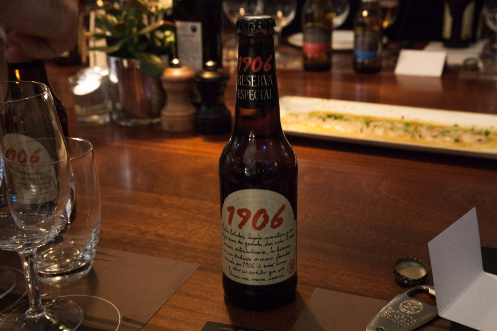 The 1906 Reserva Especial is the one beer that really steals the show though. Named after the brewery’s founding year, it’s robust yet subtle, packed full of malts but with lighter notes of caramel in there too. It’s smooth enough to go perfectly with a medley of seafood: plump, succulent prawns, their heads bursting with salty bisque; langoustines awash with garlicky butter. Yet there’s a boldness there that isn’t bullied by strips of beautifully seared Galician steak, matching them blow for meaty blow. Lamb sweetbreads, adorned with a little blob of creamy mayonnaise, benefitted immensely from the beer’s slight acidity, cutting through all that creamy richness.