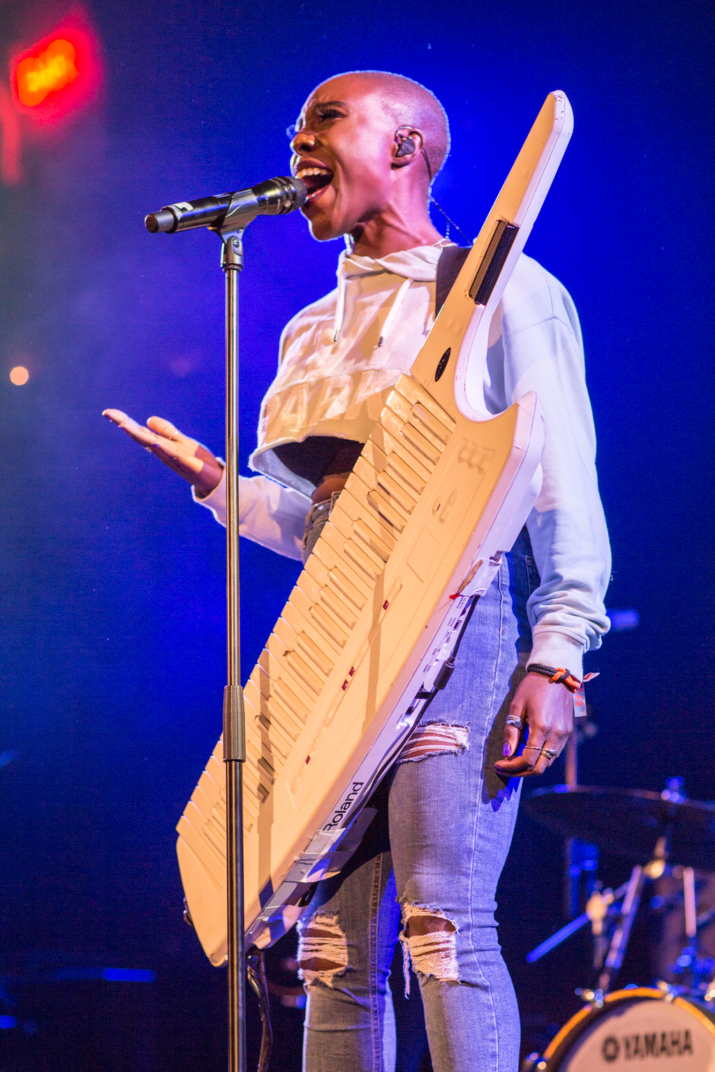 Next up, singer-songwriter The Beach sung his heart out on Thieves and new track Bite My Tongue, alongside “Andy” on the keyboard and with a stunning accompaniment from the London Contemporary Voices choir. Armed with his acoustic guitar, the south Londoner’s soulful James Bay-esque sound had the audience that he felt “staring and making me nervous” enraptured.