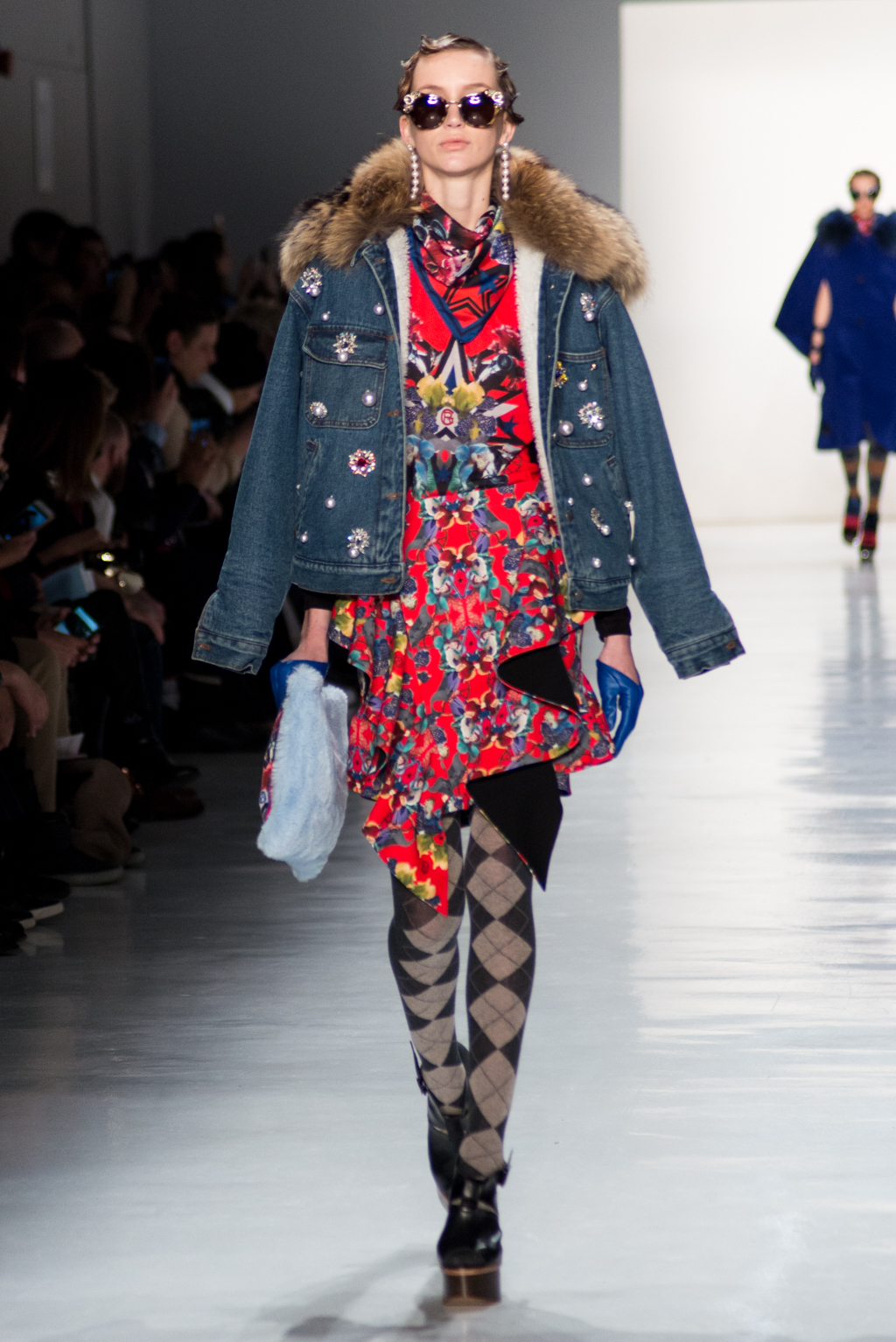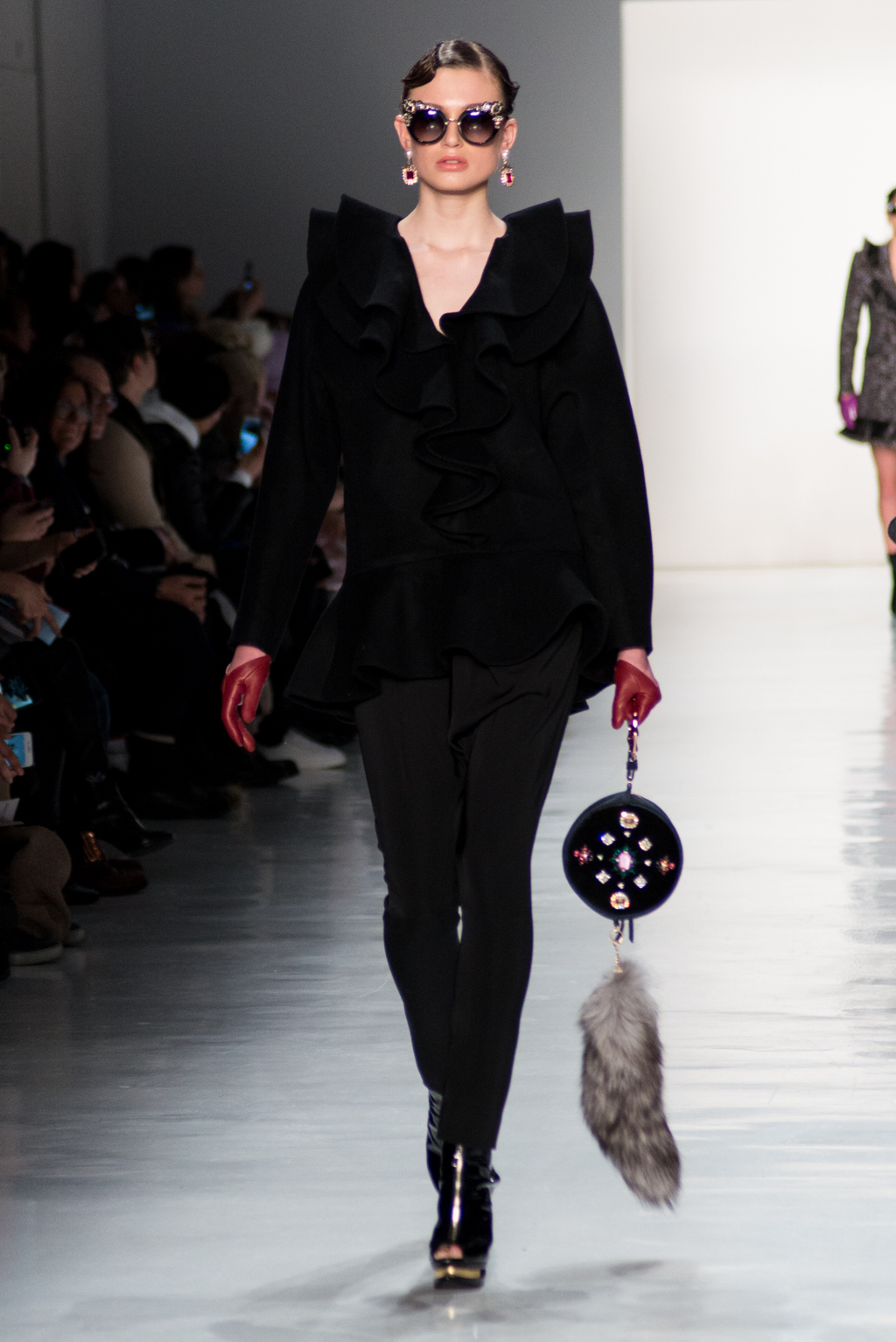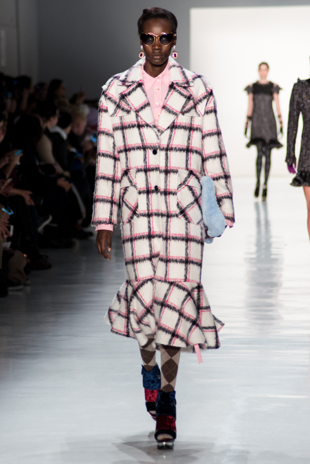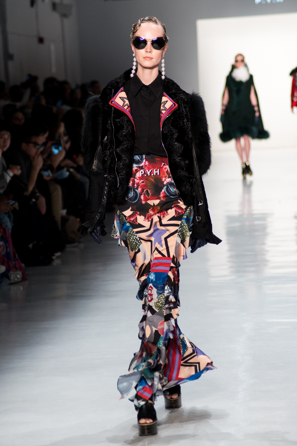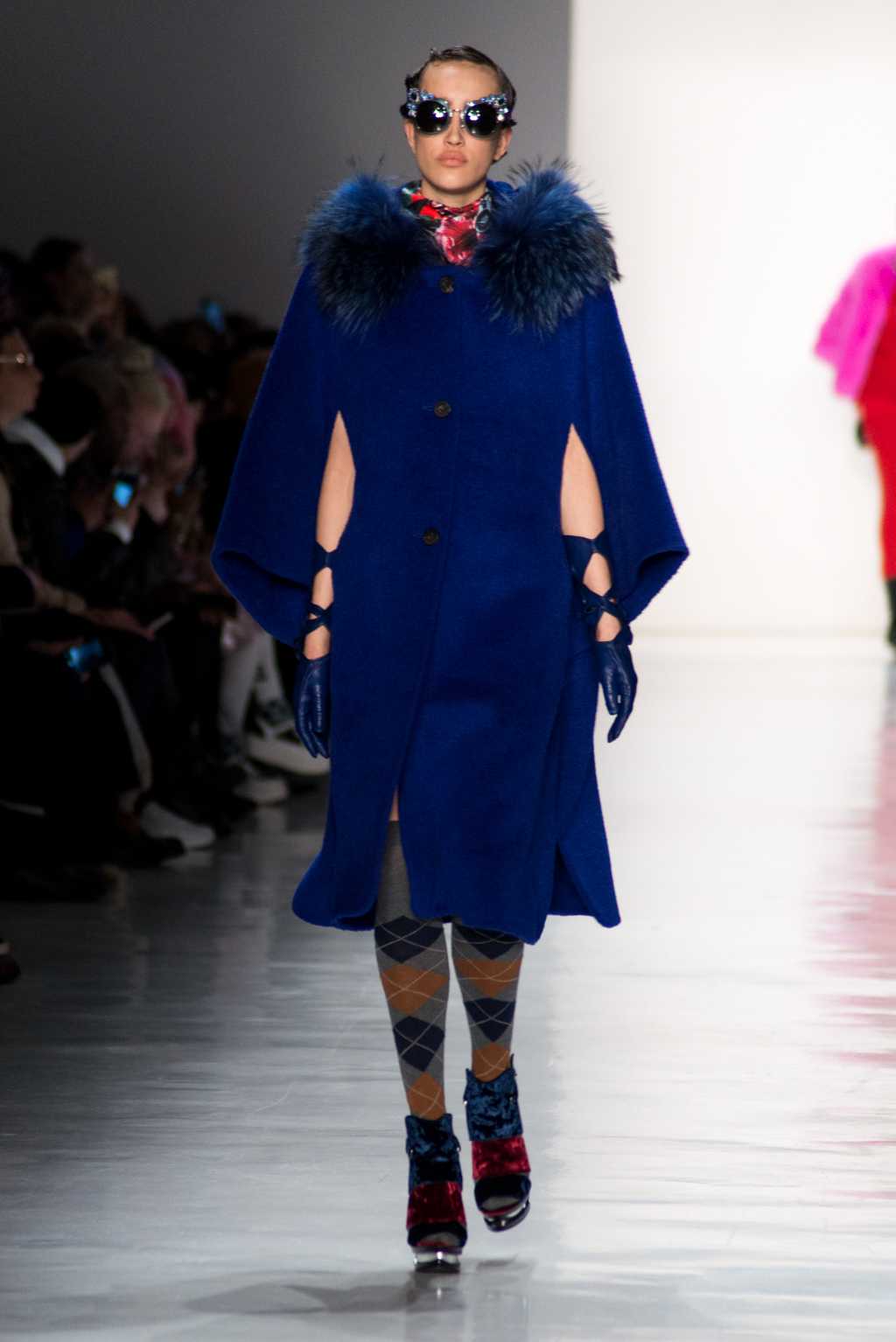 Kimmy J’s brand showed a collection that was rooted in the outsider esthetic. The show had a sporty skater look as well as reference to grunge culture. The brand played with proportions especially with their oversized outerwear that was a theme in both their men’s and womenswear looks. Accesories like chain belts and fishnets played off the soft look of the bright faux fur that the designer used and helped the collection keep a hard, boundary-pushing edge.