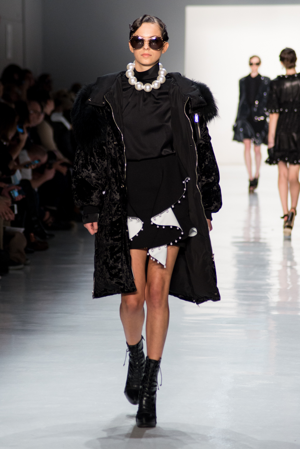 Finally, Yohanix showed a collection that primarily revolved around their strong outerwear collection. While the designer did reference street style, the new line had a decidedly luxe look blending more sporty pieces with ready-to-wear clothing as has been the trend for several seasons. There were rich fabrics layered like velvet, brocade, and silks mixed and matched in a modern manner. The collection had a slightly french styling that added to the cool girl esthetic that Yohanix achieved with their layered looks.