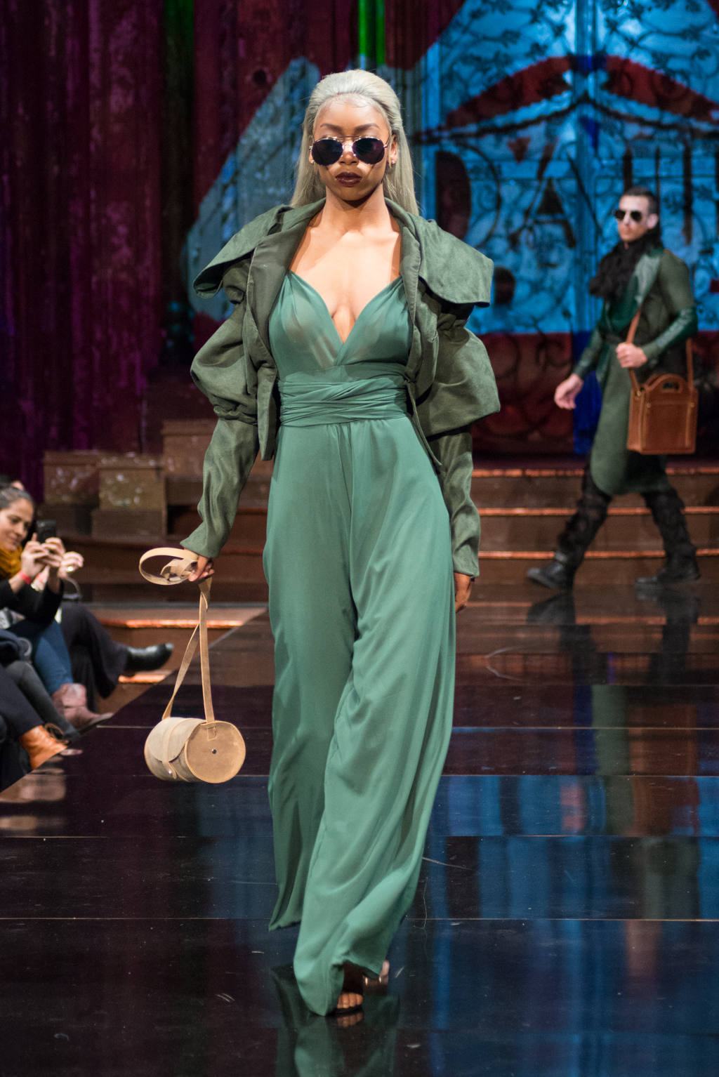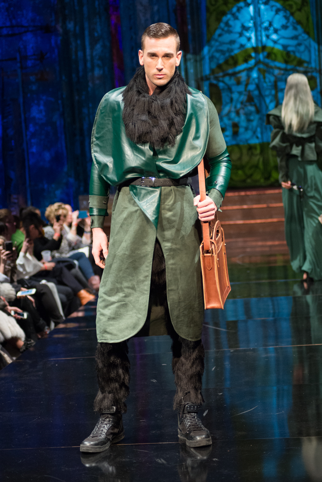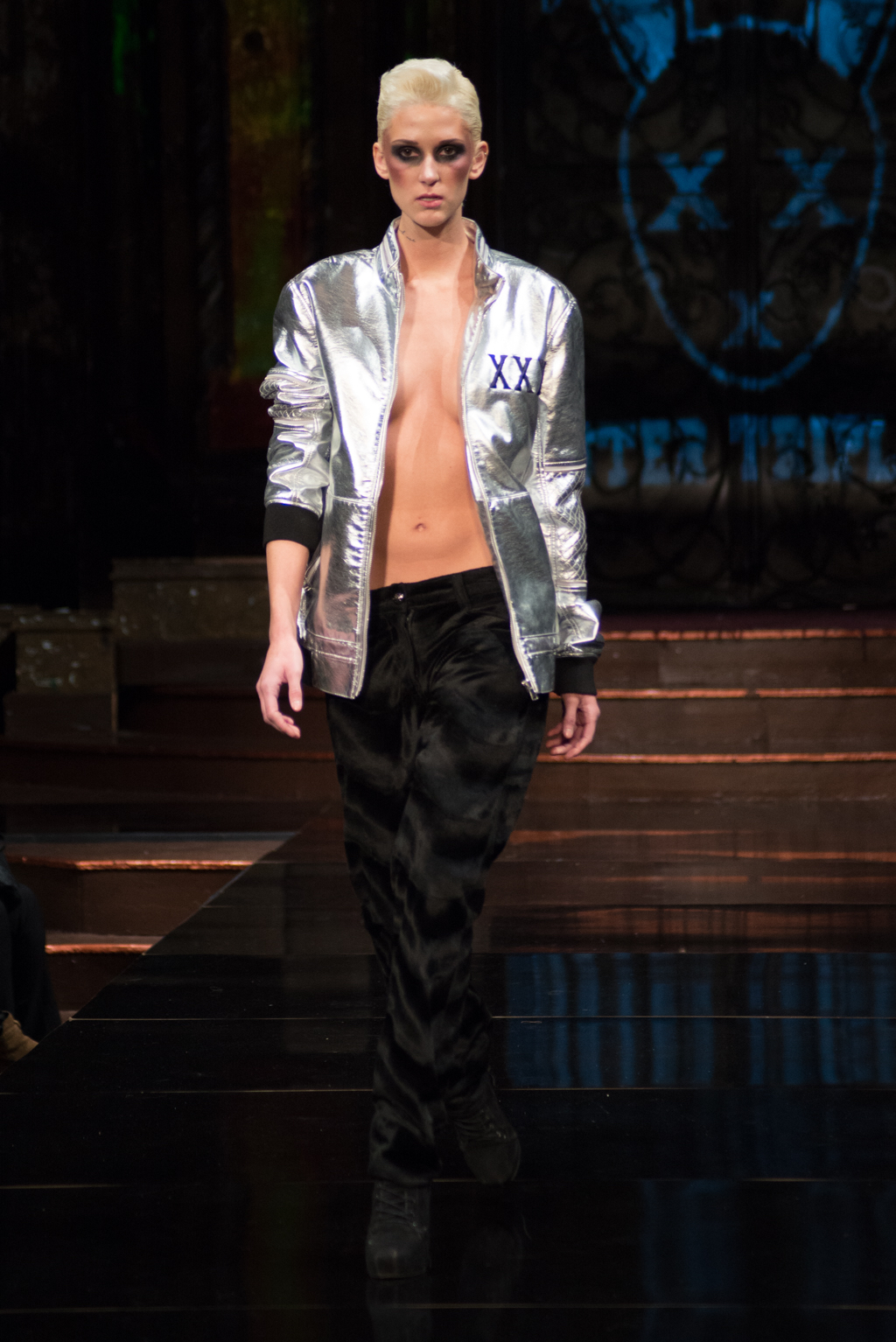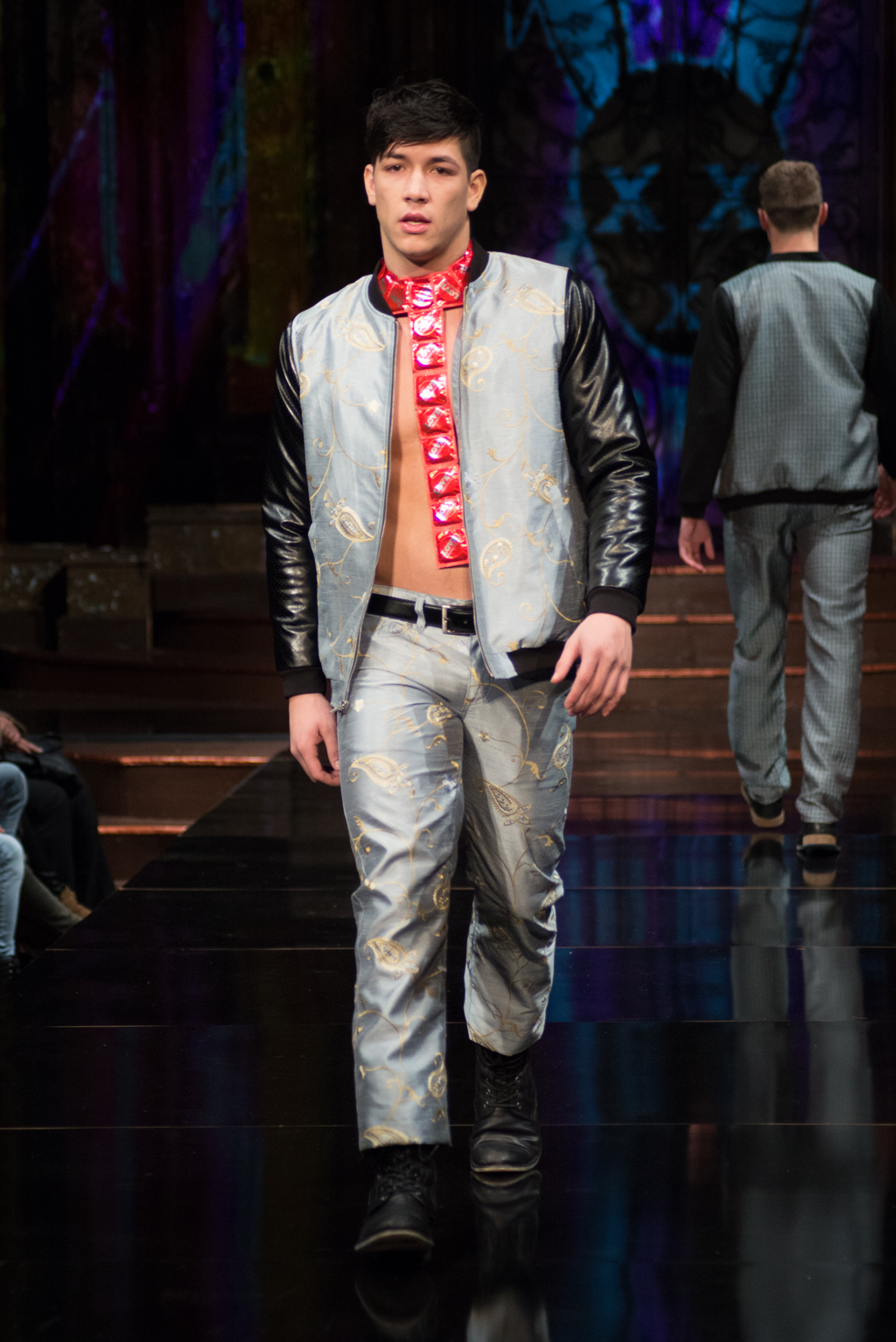 Fernando Alberto Atelier was first to hit the runway with his dark and edgy style. Even in this edge, there was a sense of fluidity. The collection was brought together with the implementation of aqua eye shadow and detailing. The moody music added to the ambience the designer was trying to exude.