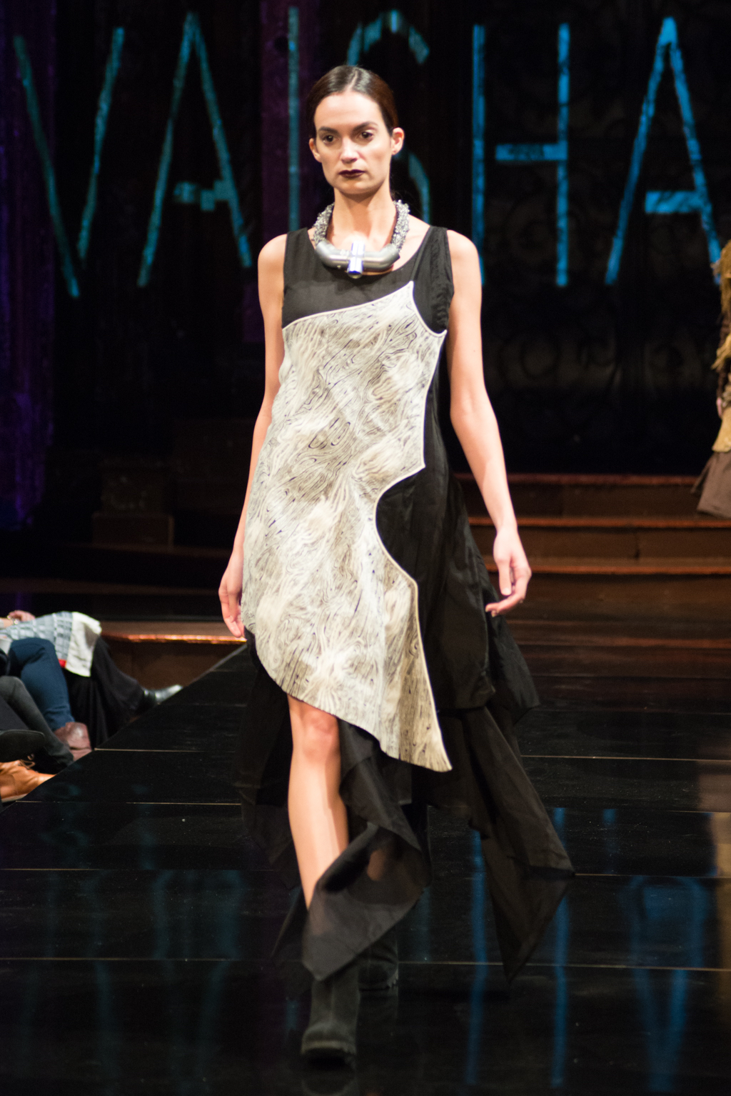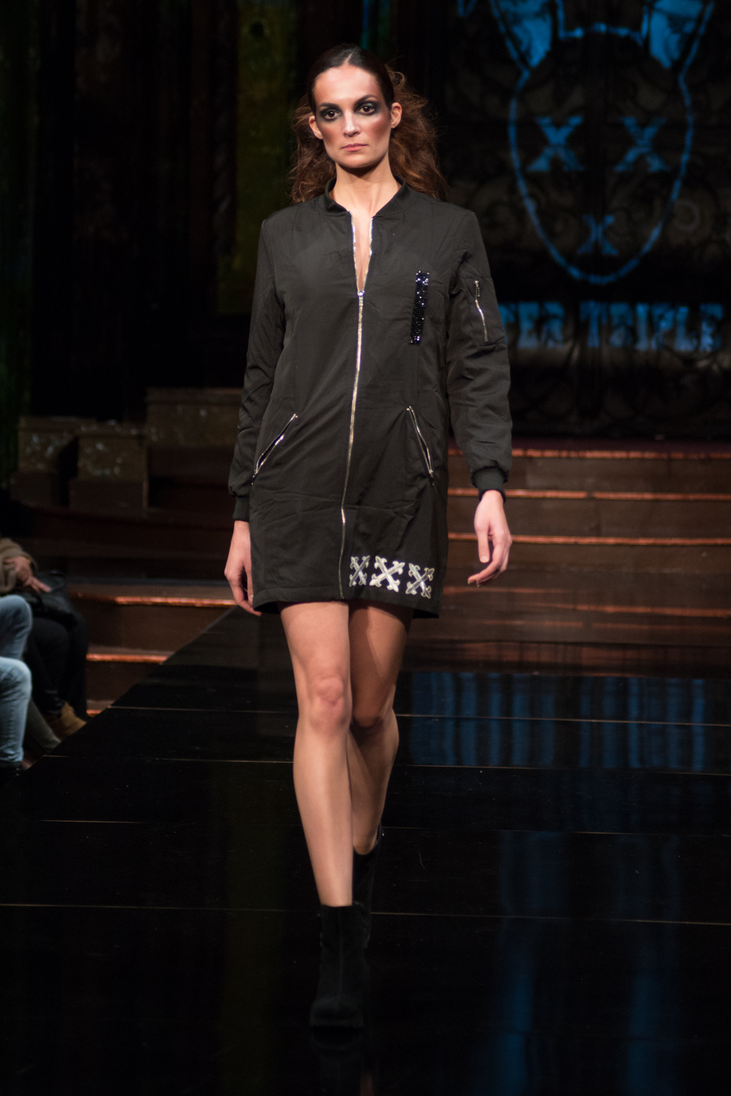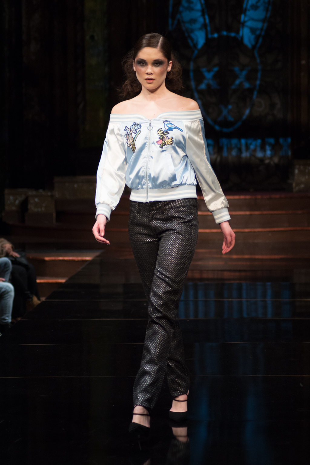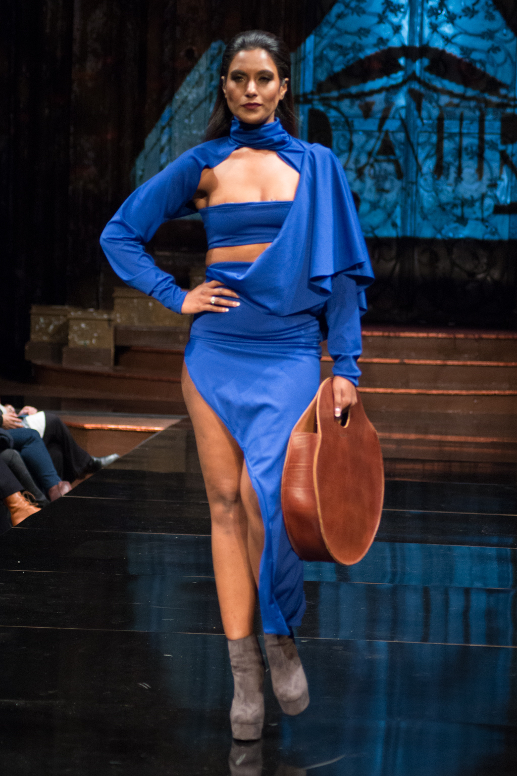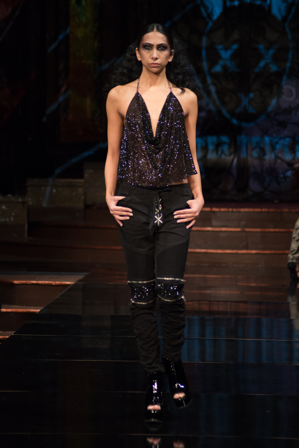 Fernando Alberto Atelier was first to hit the runway with his dark and edgy style. Even in this edge, there was a sense of fluidity. The collection was brought together with the implementation of aqua eye shadow and detailing. The moody music added to the ambience the designer was trying to exude.