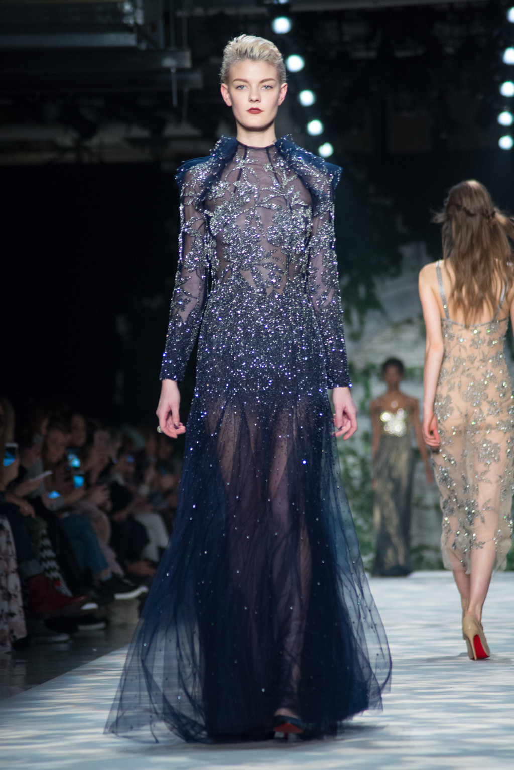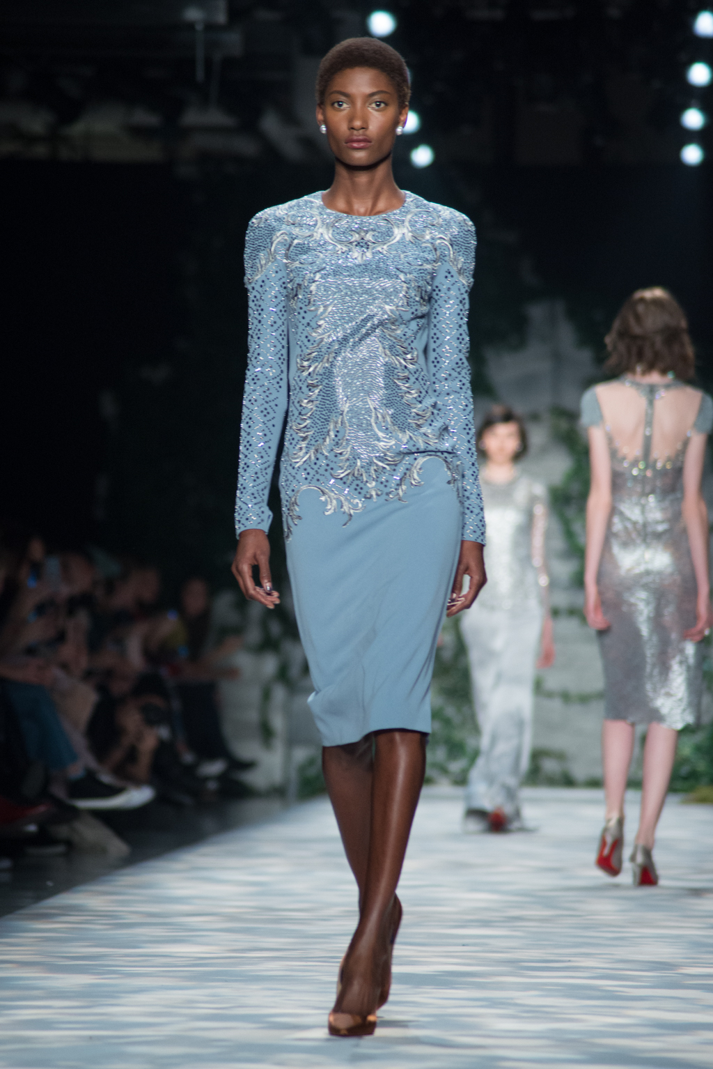As in seasons prior, Packham collaborated with Christian Louboutin to create custom shoes to go with her looks. The footwear ranged from punk fishnet stilettos to polished satin pumps reflecting the range of inspirations in the collection perfectly and giving the show that extra bit of polish that’s come to be expected from the designer.