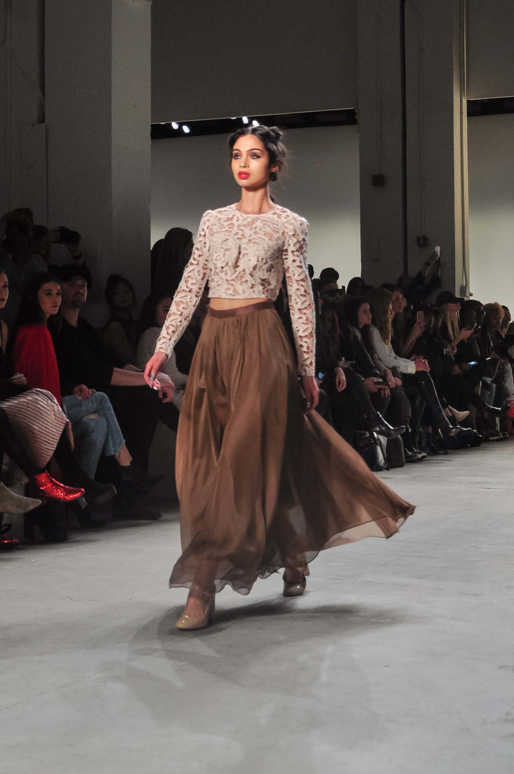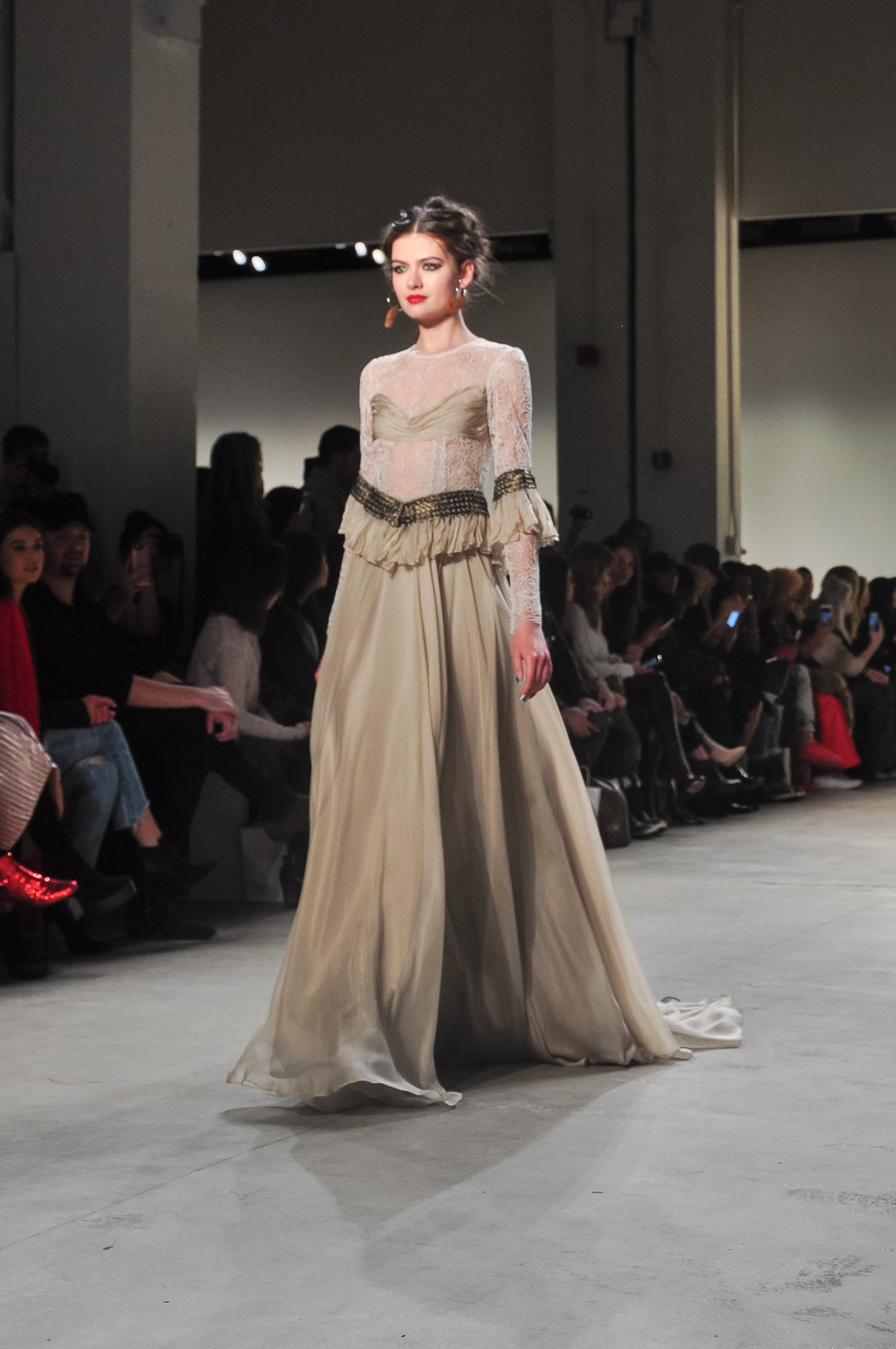 The conjunction of lace detailing with an extensive material variation played with the audience’s senses and exuded an air of sophisticated sensuality. Marshall’s idealisation of romance is breathtakingly stunning. There are no conforming bounds to her collection, and one piece after the other took on the romantic element in a new light.