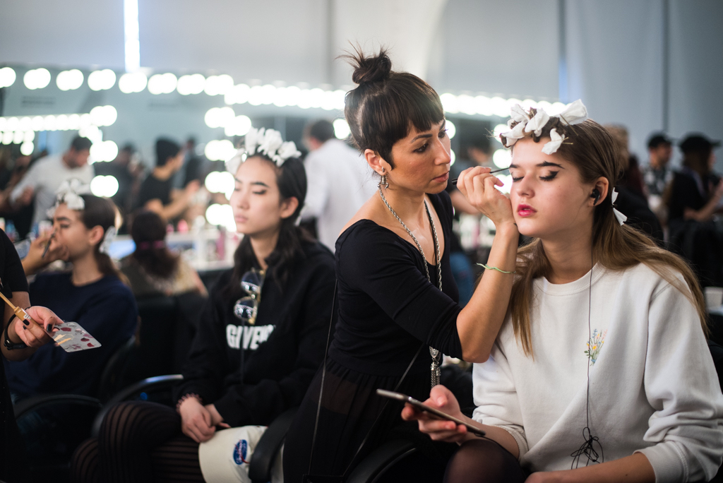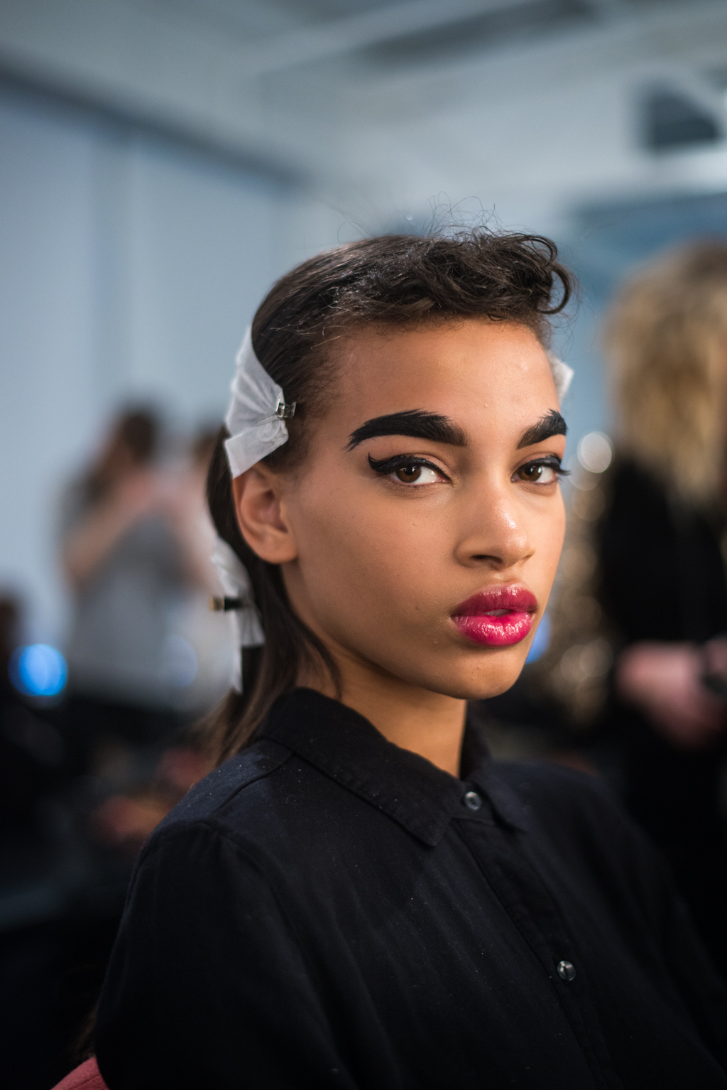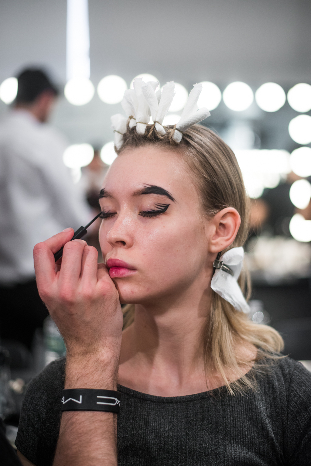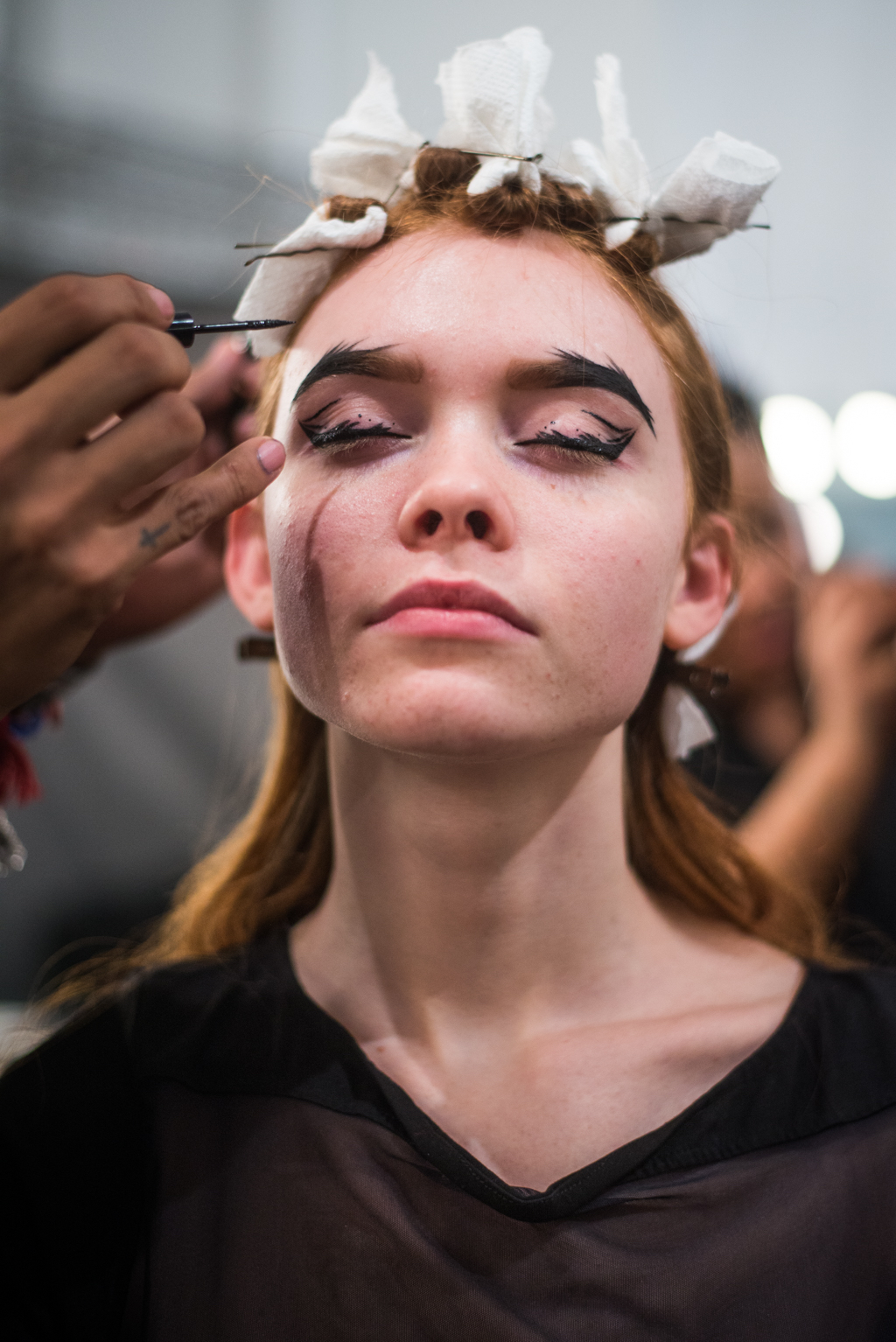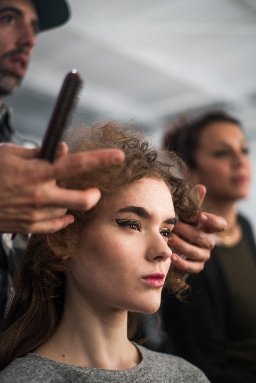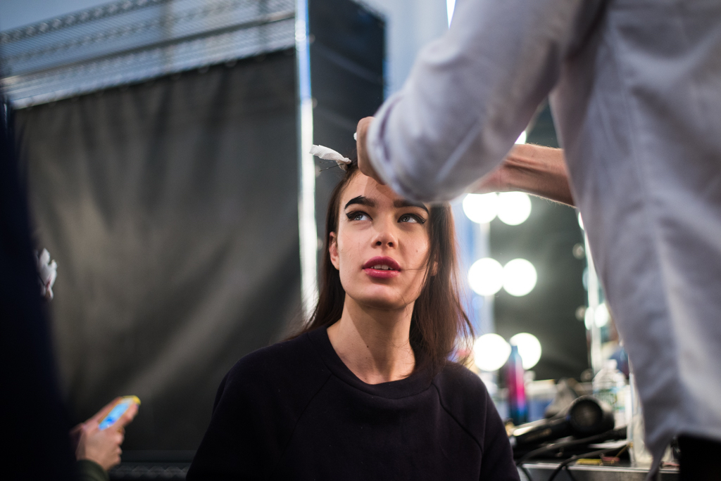 An ultra feminine edge was the point of focus for designer Katty Xiomara. Her designs were perfectly complimented by intense geometric eye make-up with pink, dewy lips and textured hair styling. The whole ensemble exuded an air of sophisticated modernism while retaining a romantic, sensual nature.