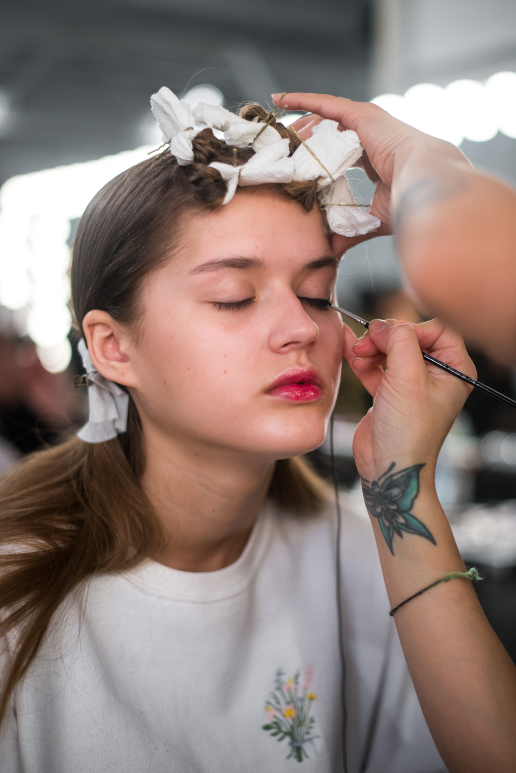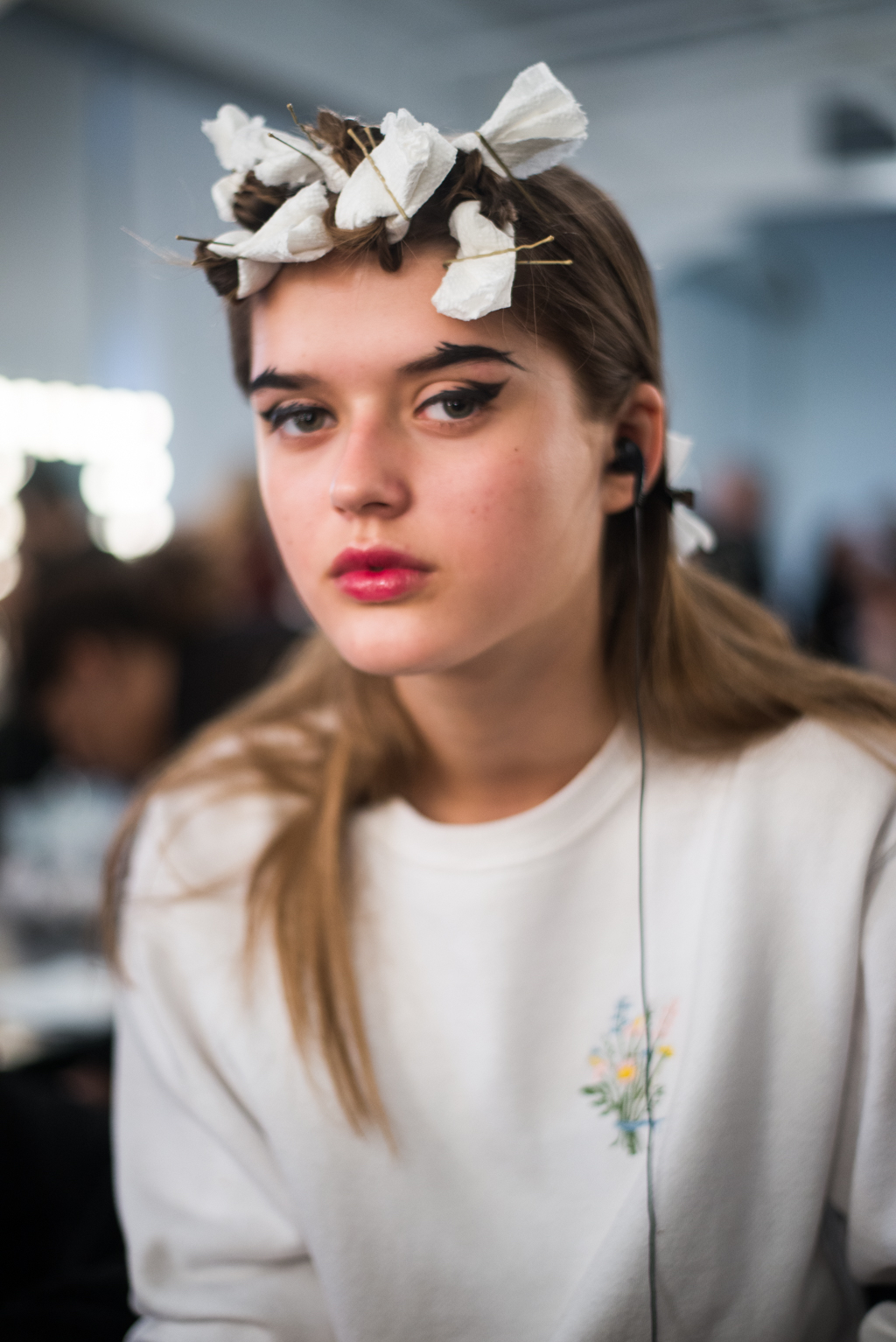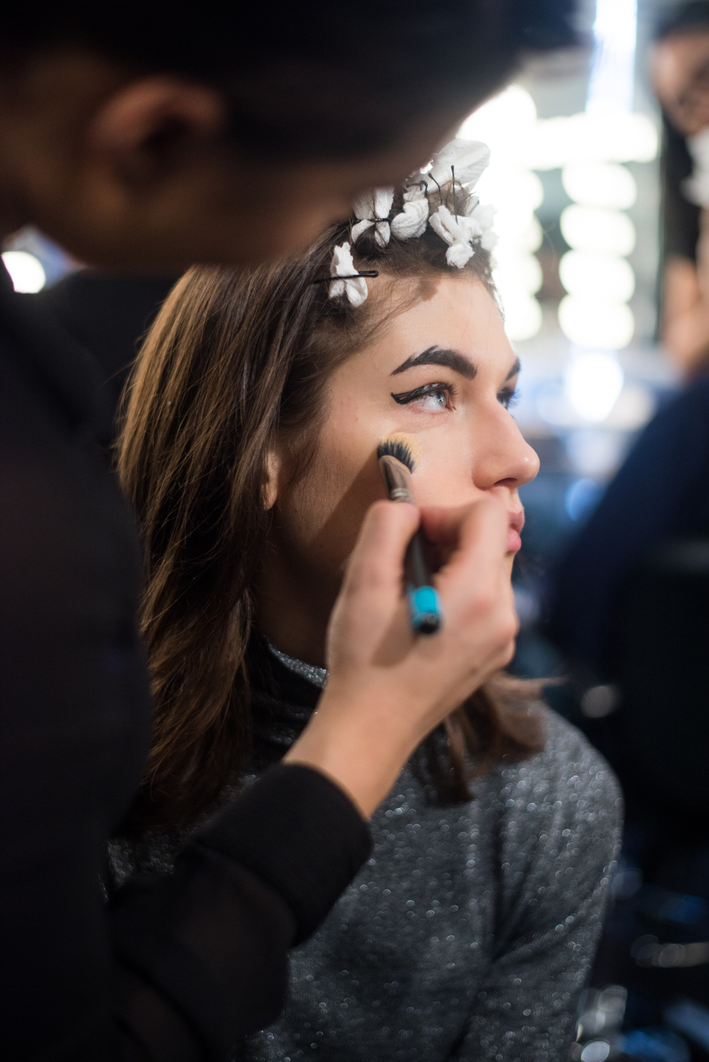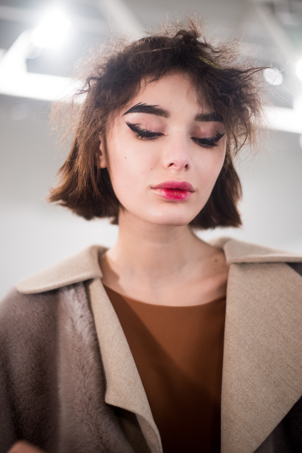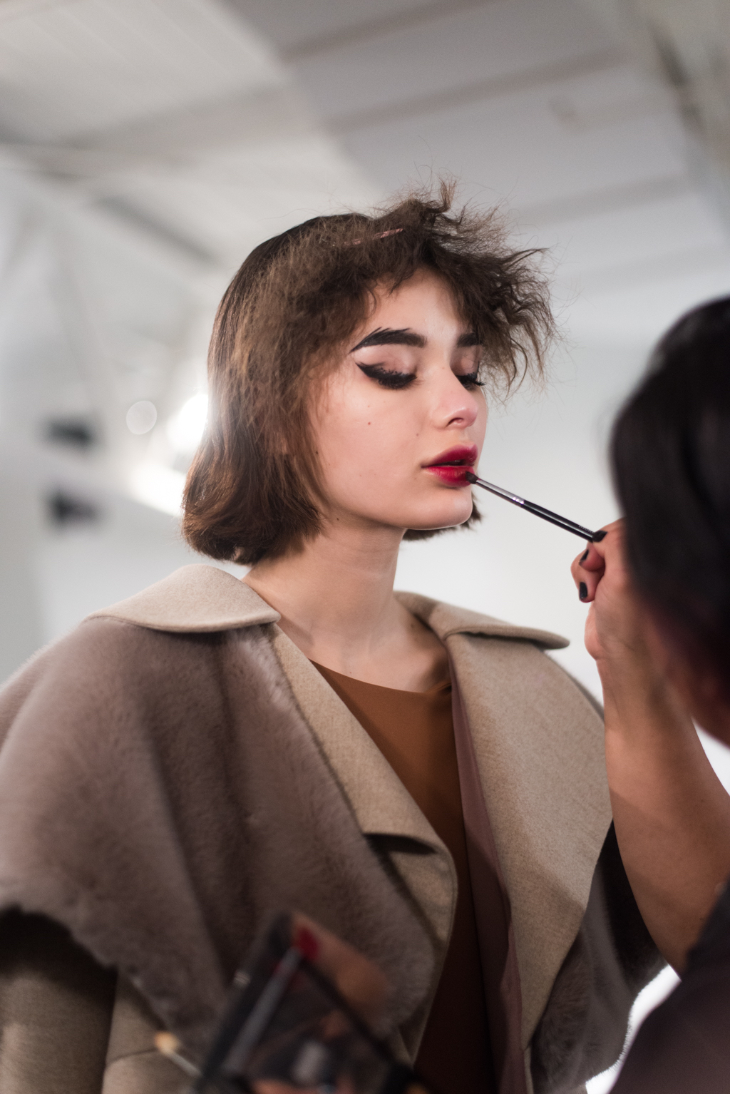 An ultra feminine edge was the point of focus for designer Katty Xiomara. Her designs were perfectly complimented by intense geometric eye make-up with pink, dewy lips and textured hair styling. The whole ensemble exuded an air of sophisticated modernism while retaining a romantic, sensual nature.