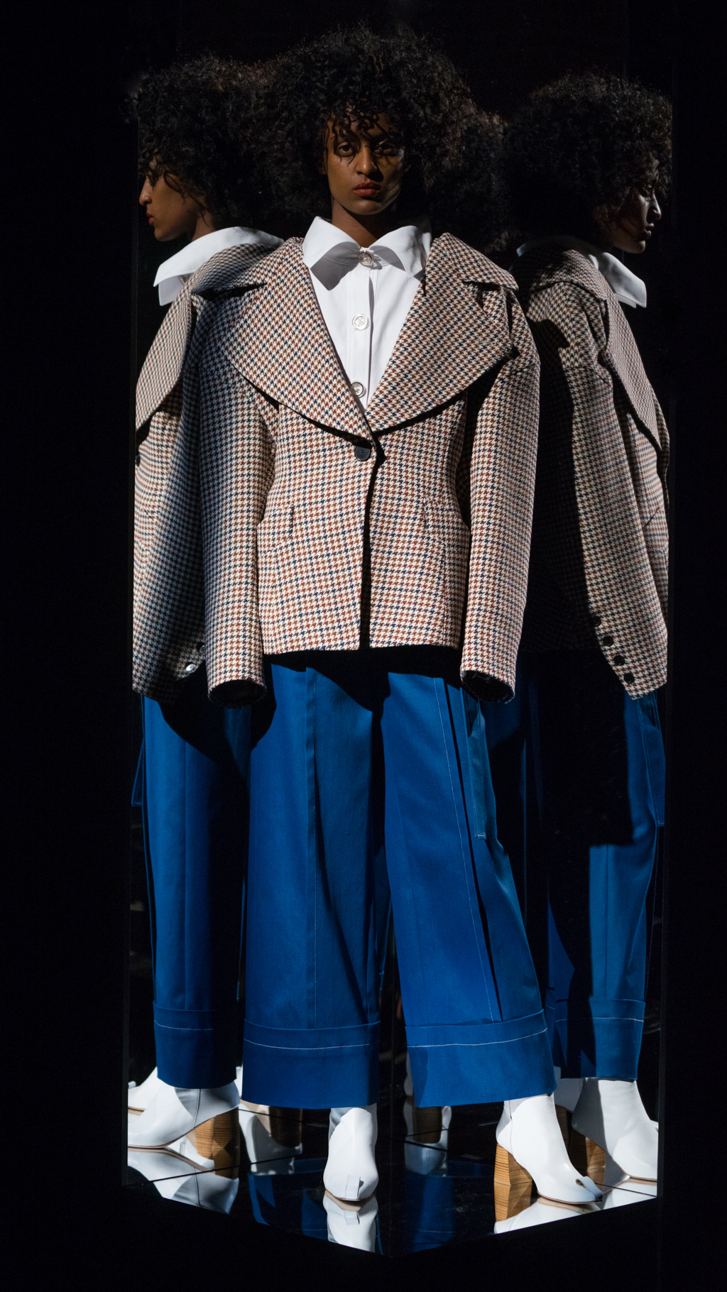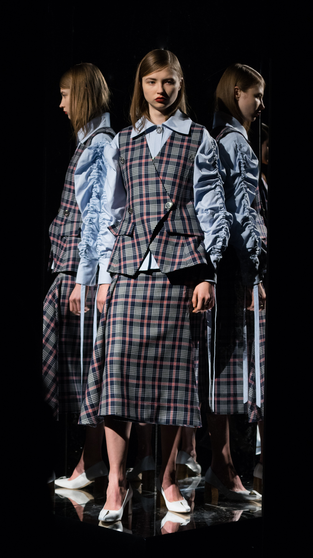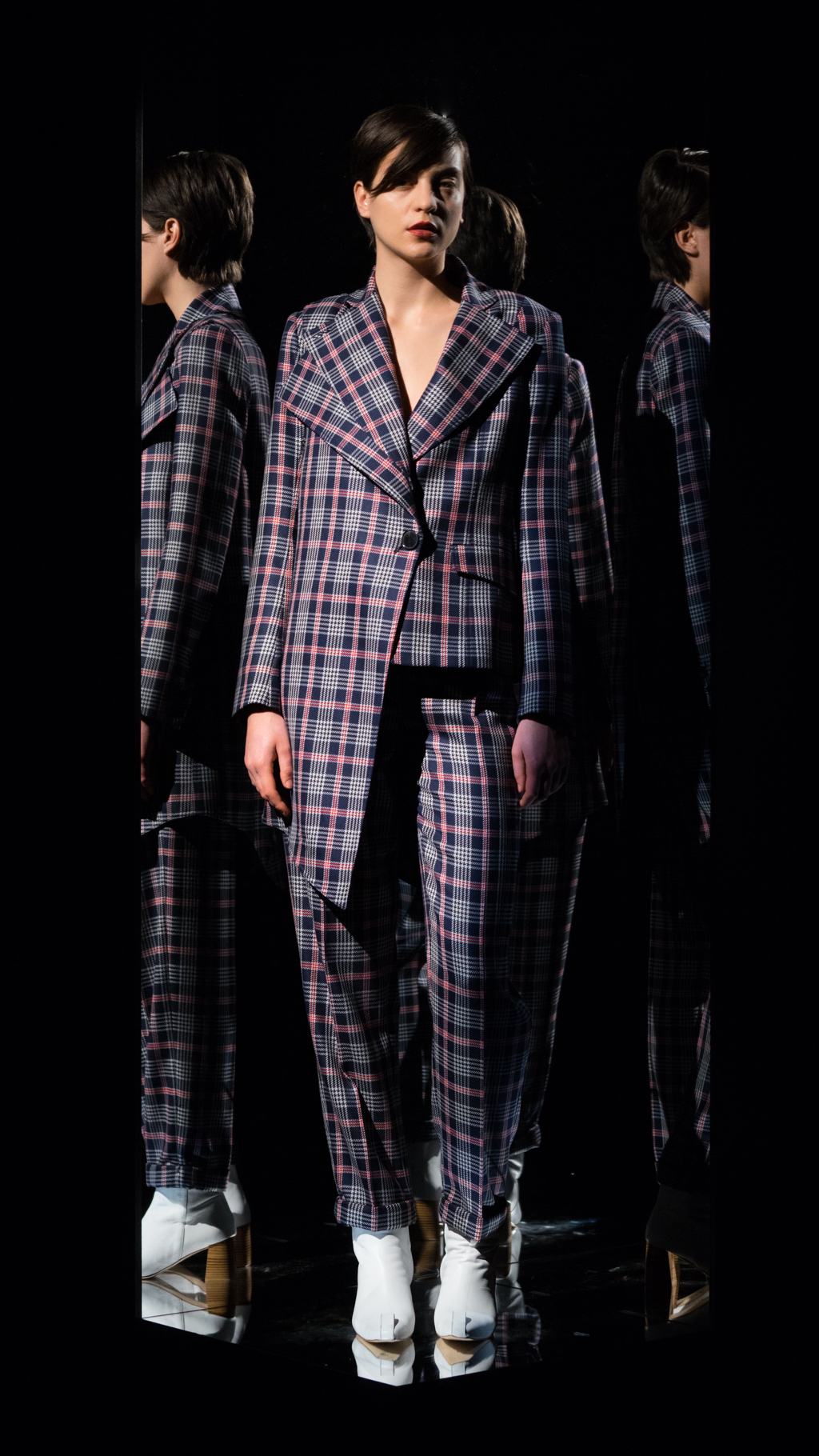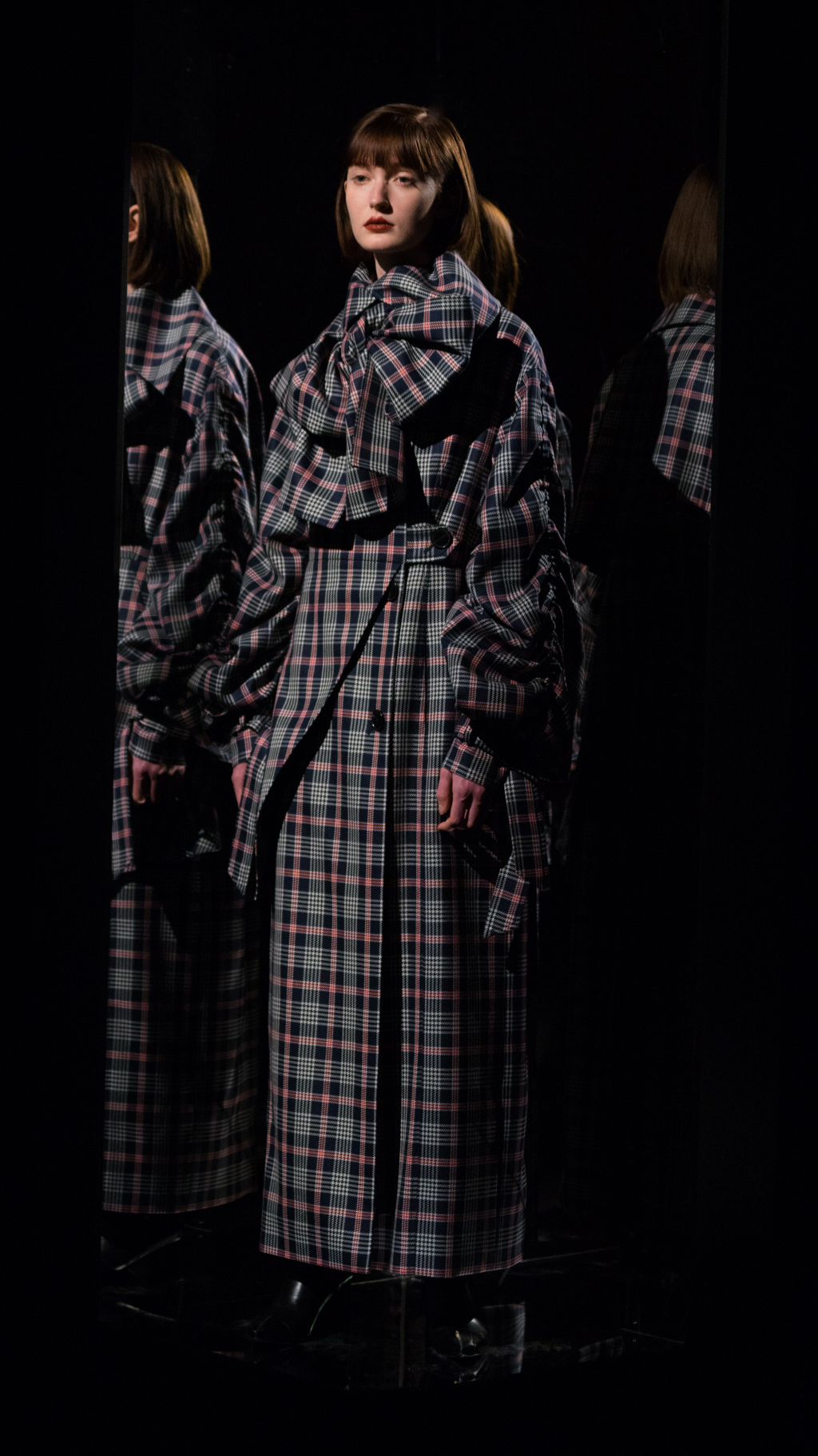 Claudia Li’s new collection blew viewers away into a whole new dimension. The theme of the exhibit, “Take me away to another place and time,” was truly captured throughout the presentation. Travelling through a time machine, to a display full of abstract triangles, layering details, and fabric full of plaid.