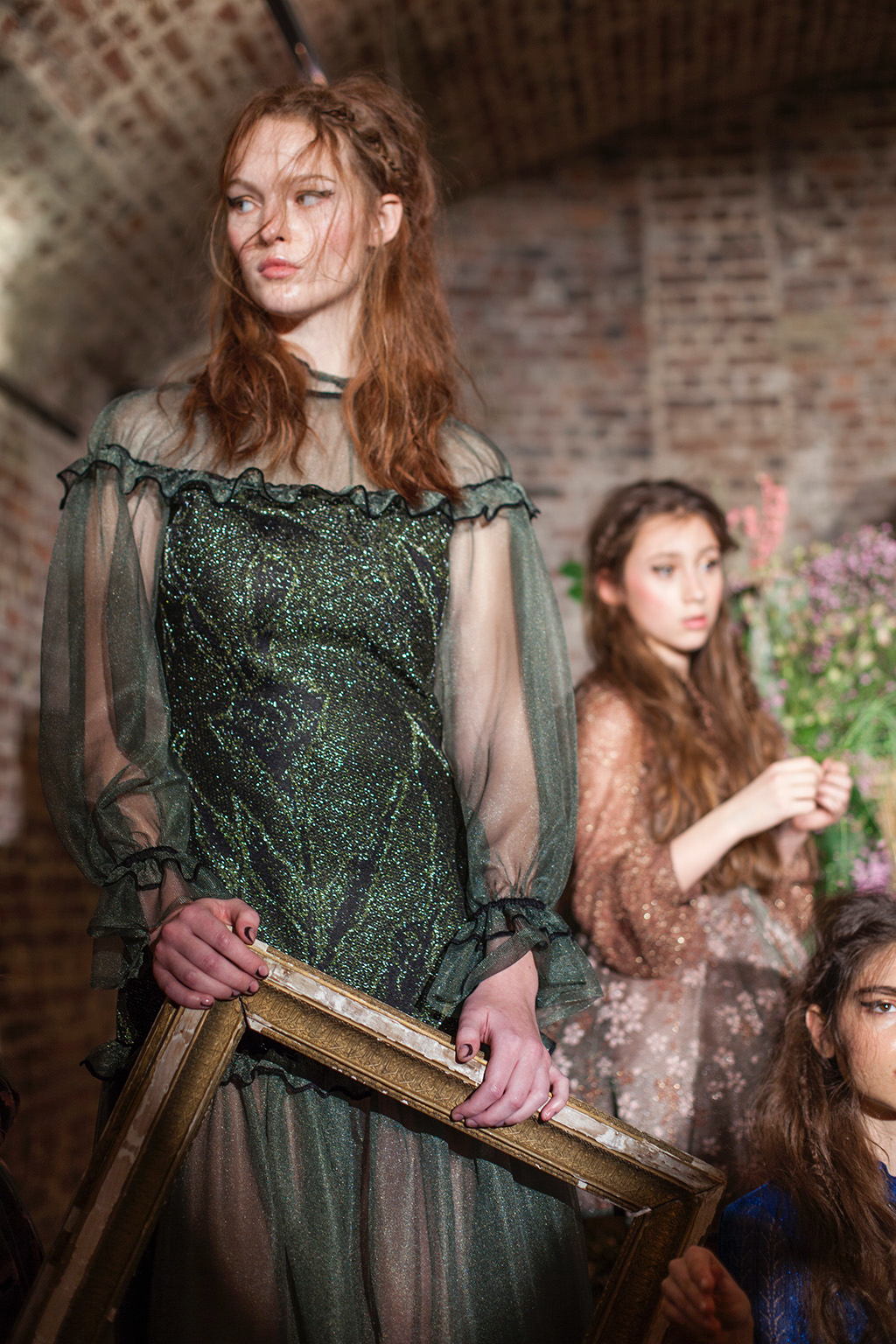 The models were playing with flowers, holding picture frames or supervising the children, aspect which could signify the restricted area of activities that women could do in the past. The models had a shimmer, pale makeup which made them look like porcelain dolls.
