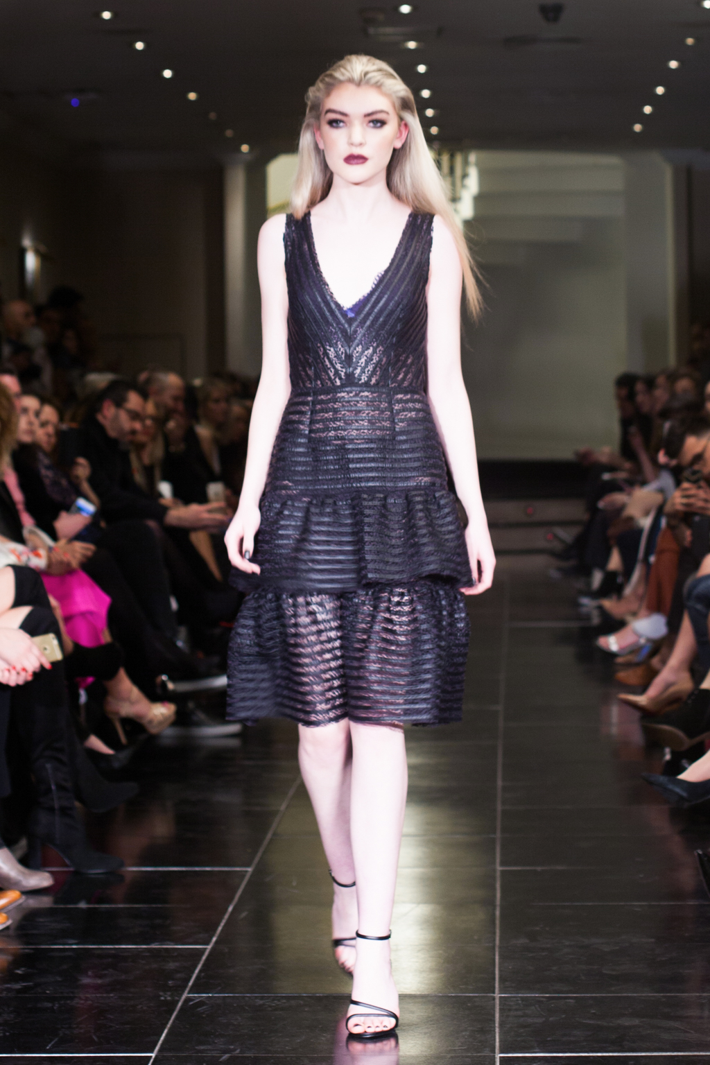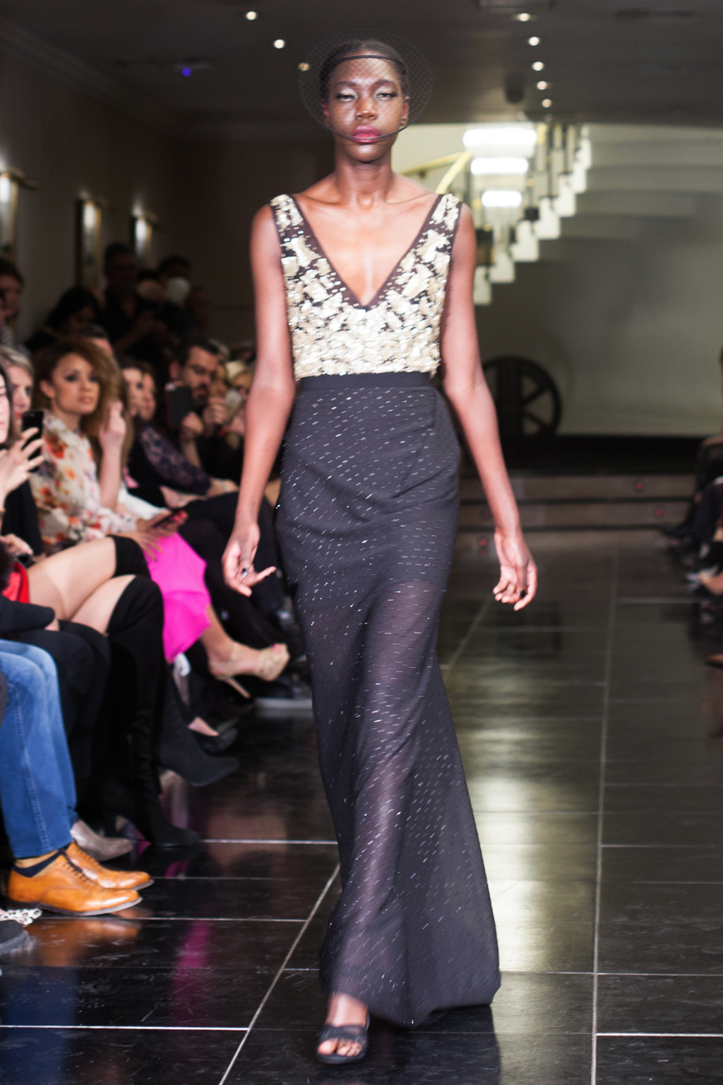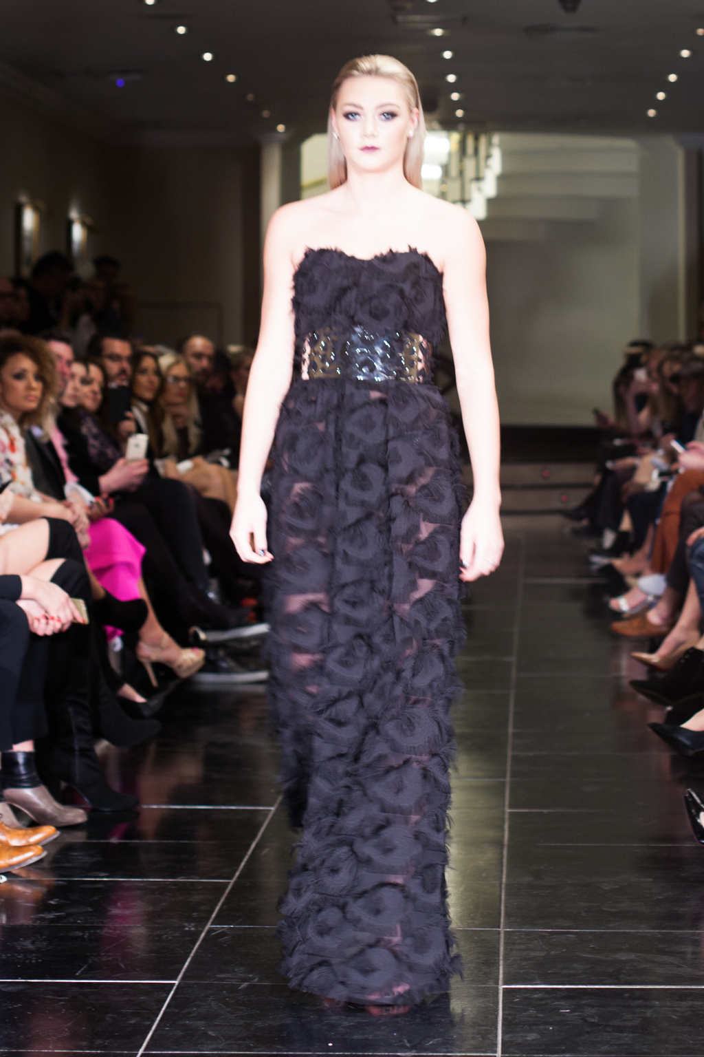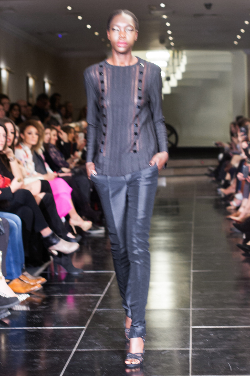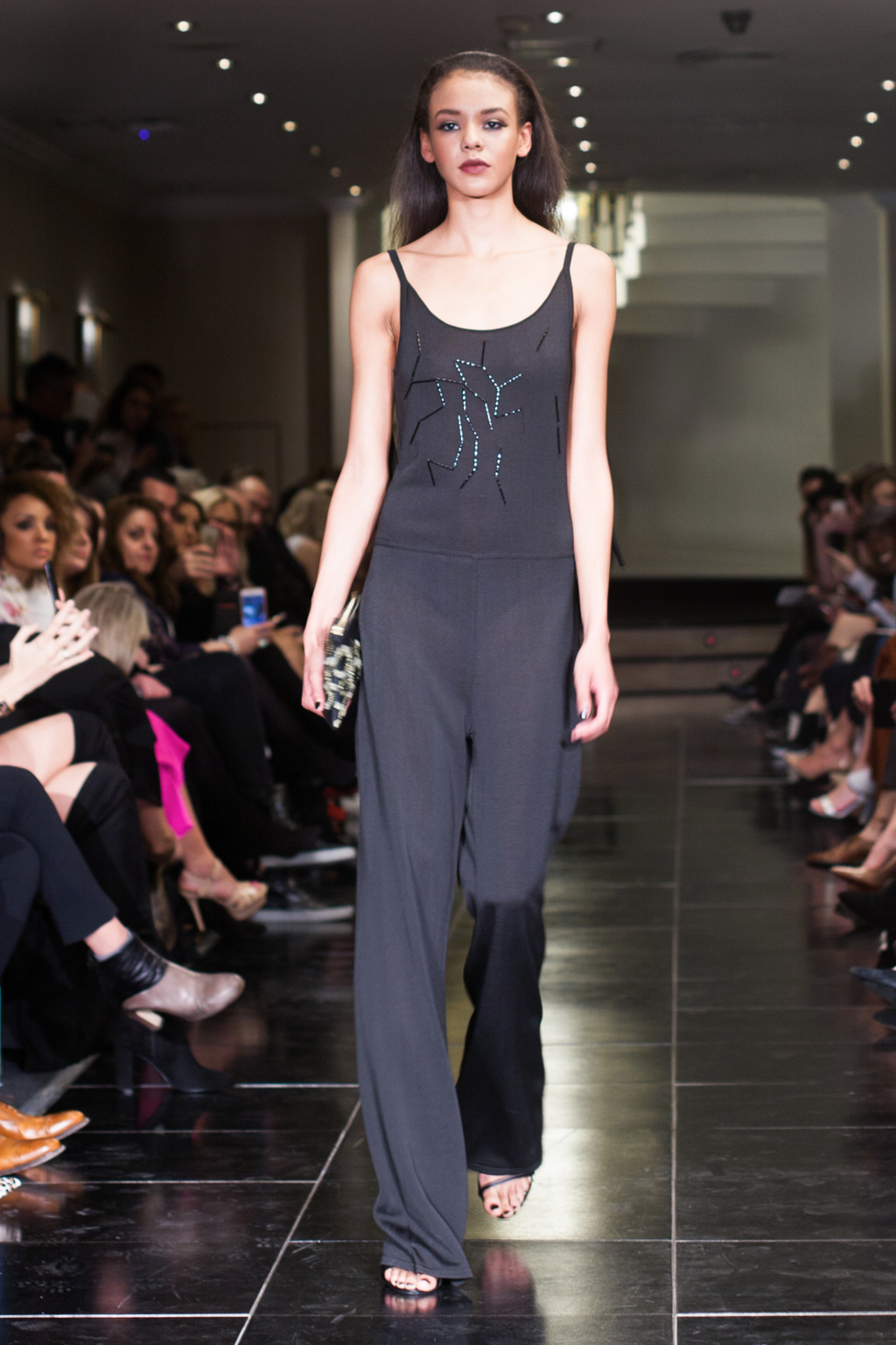 Made up of beautifully detailed garments, from blazer to ball gowns to palazzo trousers, the focus of this show was on the texture of the clothing. With an array of lace dresses, translucent panel tops, black jewel detailing, fringing and silver belts, the show proceeded smoothly and every outfit made sense. The clientele of the collection was clear to the viewer from the first glance.