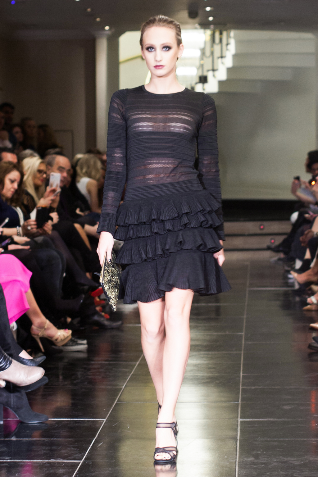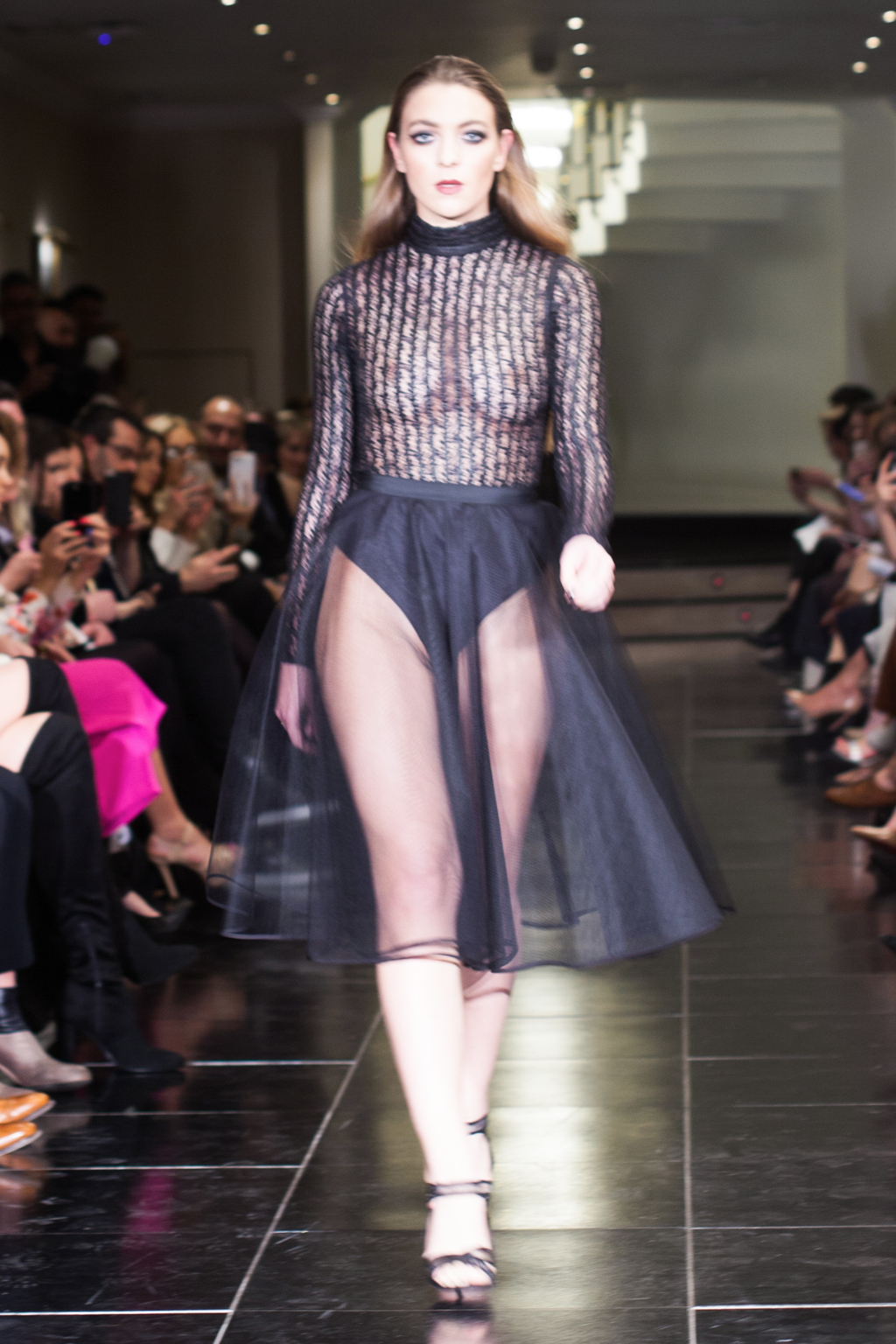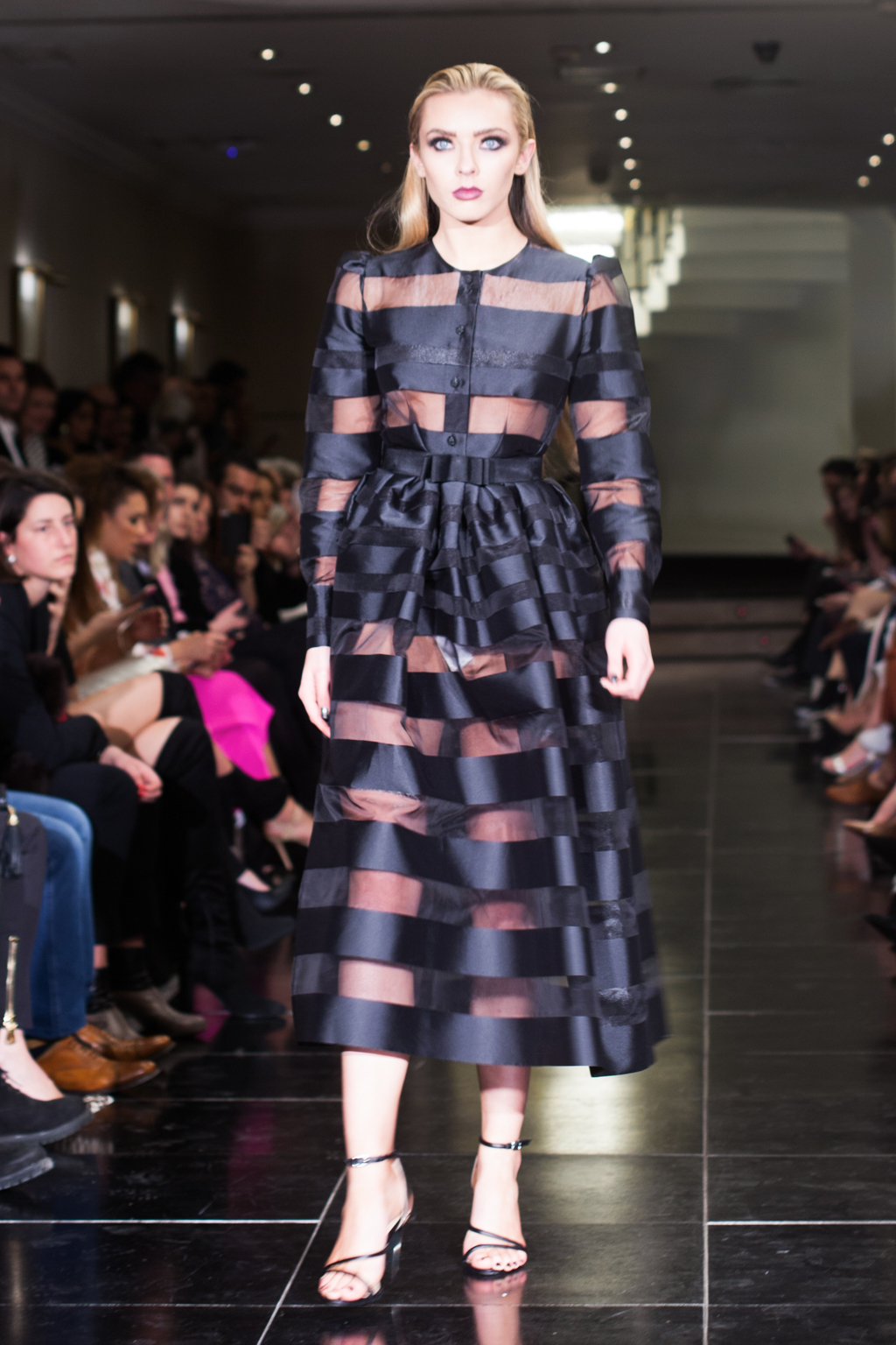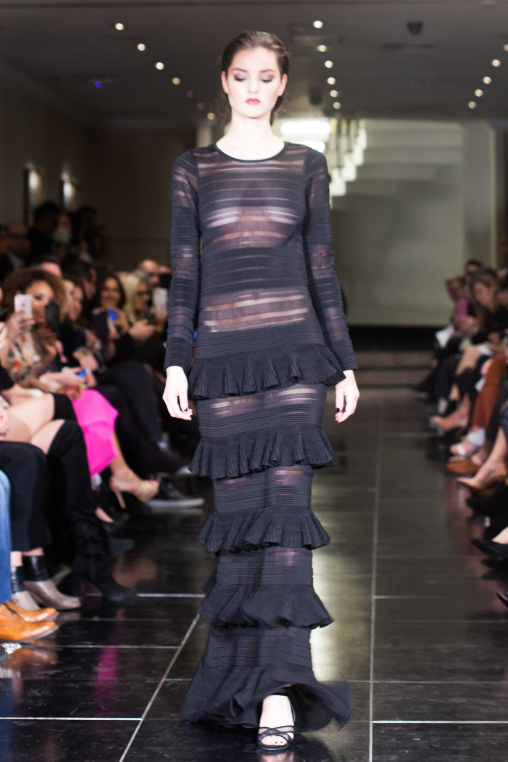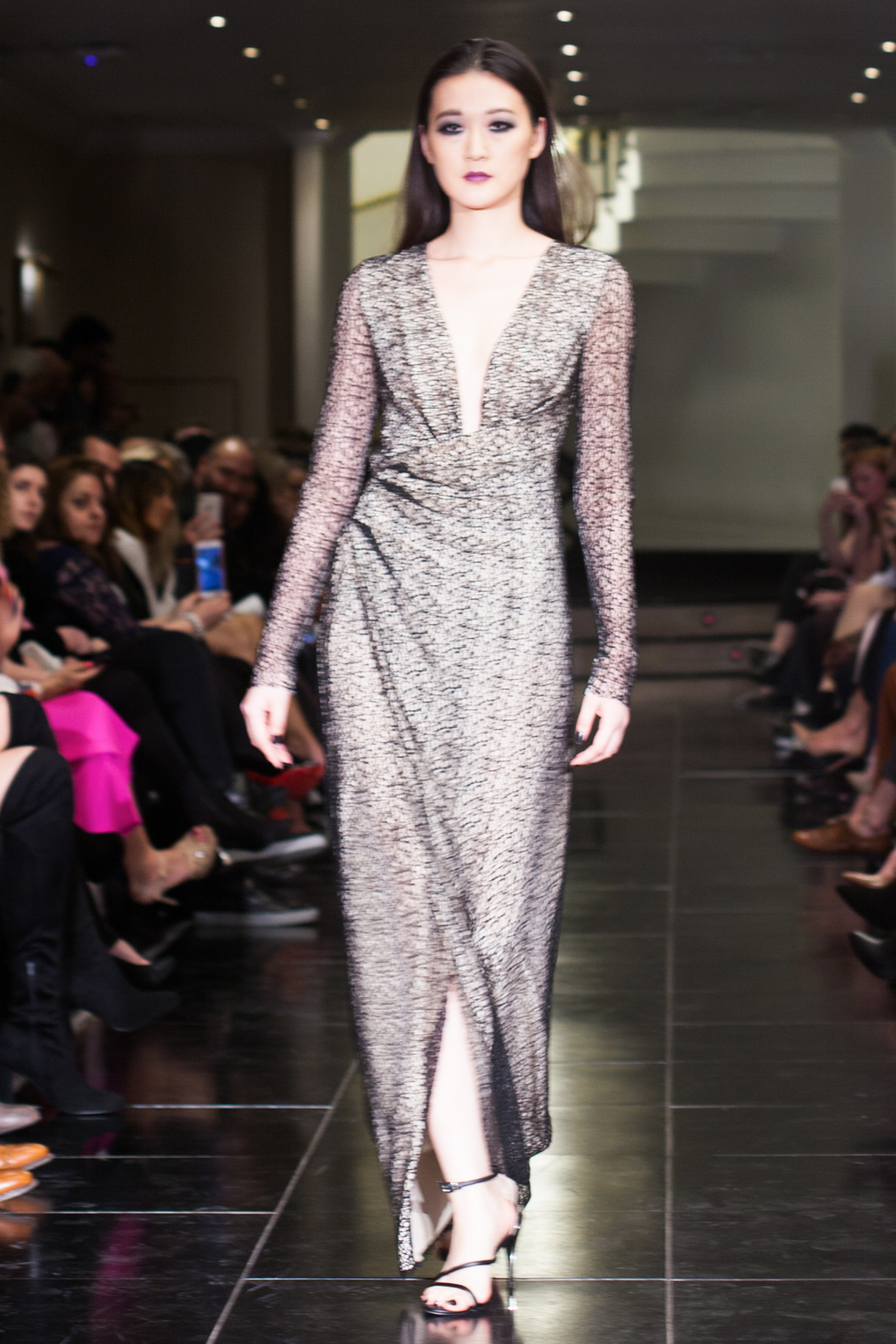 Made up of beautifully detailed garments, from blazer to ball gowns to palazzo trousers, the focus of this show was on the texture of the clothing. With an array of lace dresses, translucent panel tops, black jewel detailing, fringing and silver belts, the show proceeded smoothly and every outfit made sense. The clientele of the collection was clear to the viewer from the first glance.