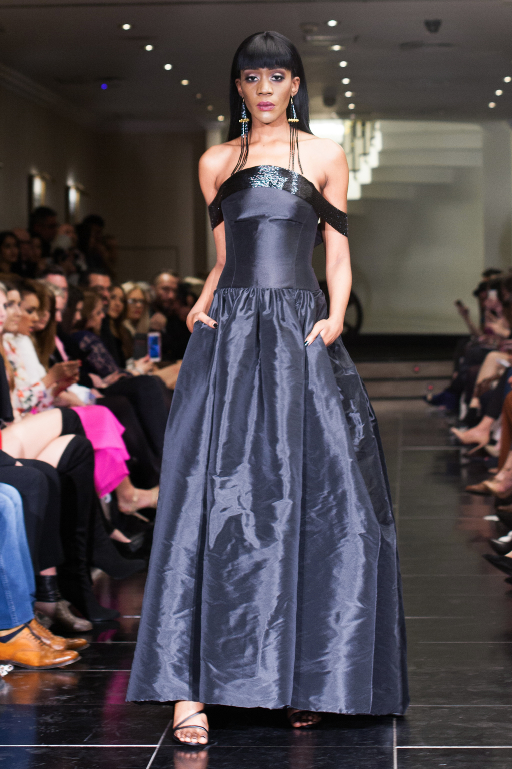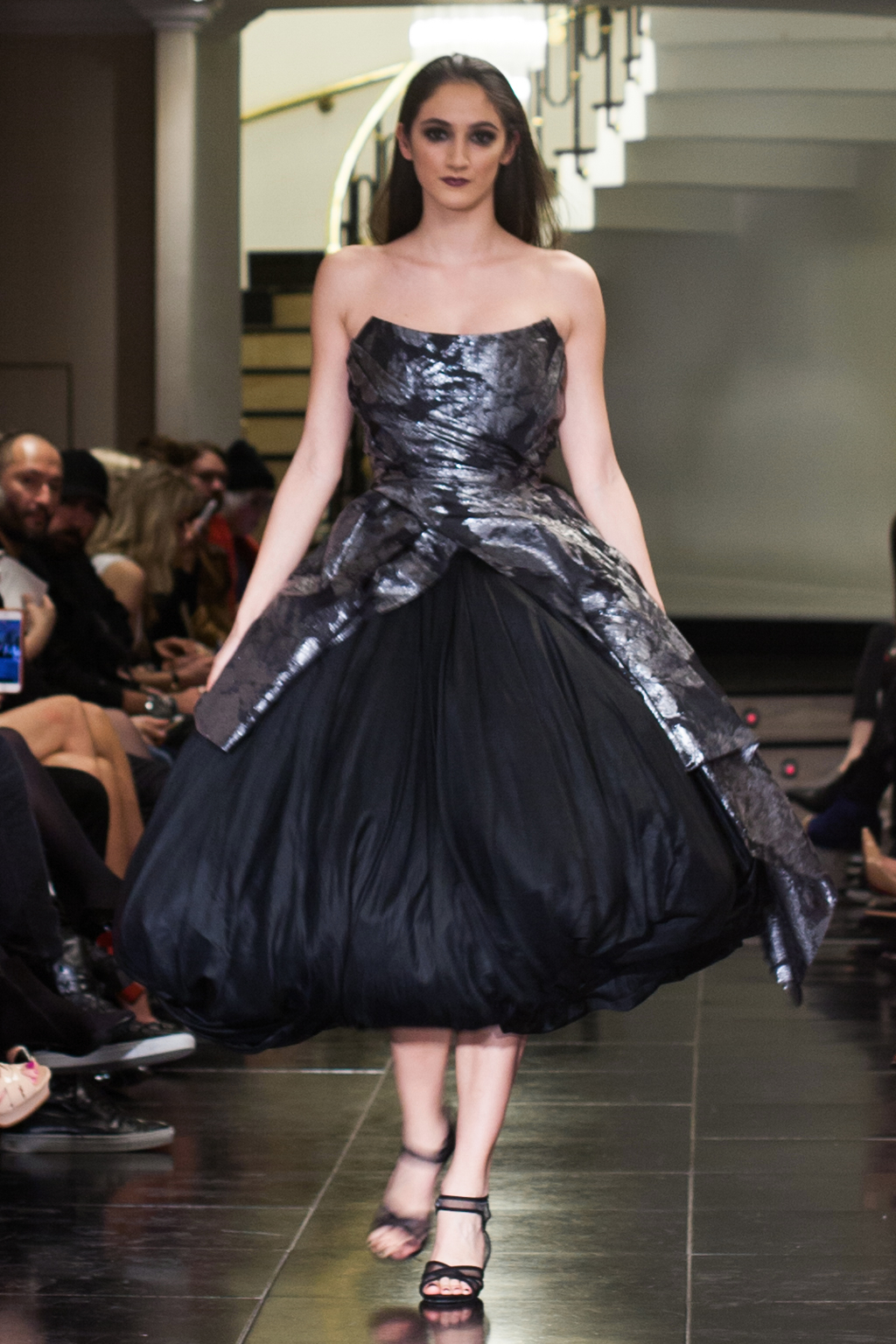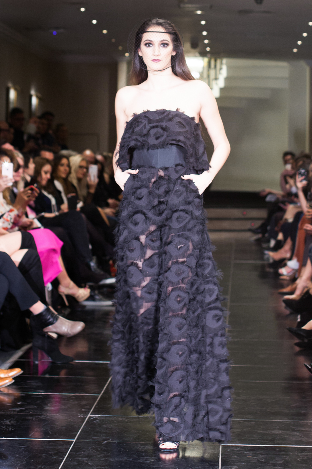Mostly comprised of form-fitting gowns, the Kolchagov Barba show was a wardrobe made for a confident, striking woman. With only hints of silver detail here and there, it was an all-black collection, referencing the highly sought-after black coral. The garments had regal details such as jewel embellishment, silver emblazement and Victorian style collars.
