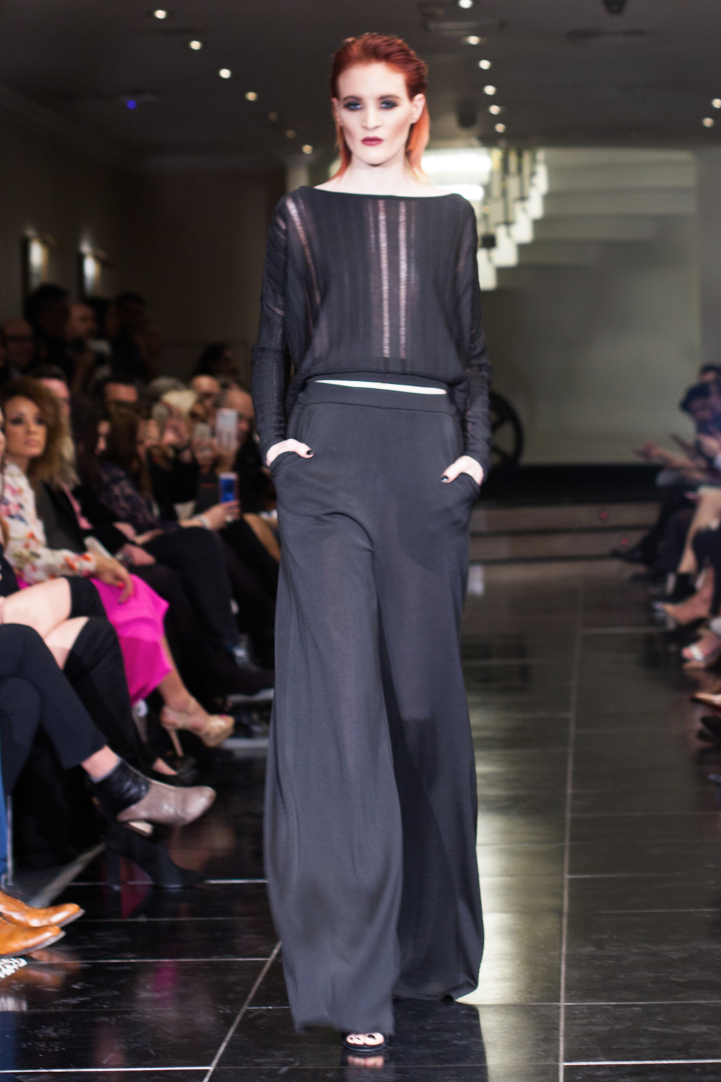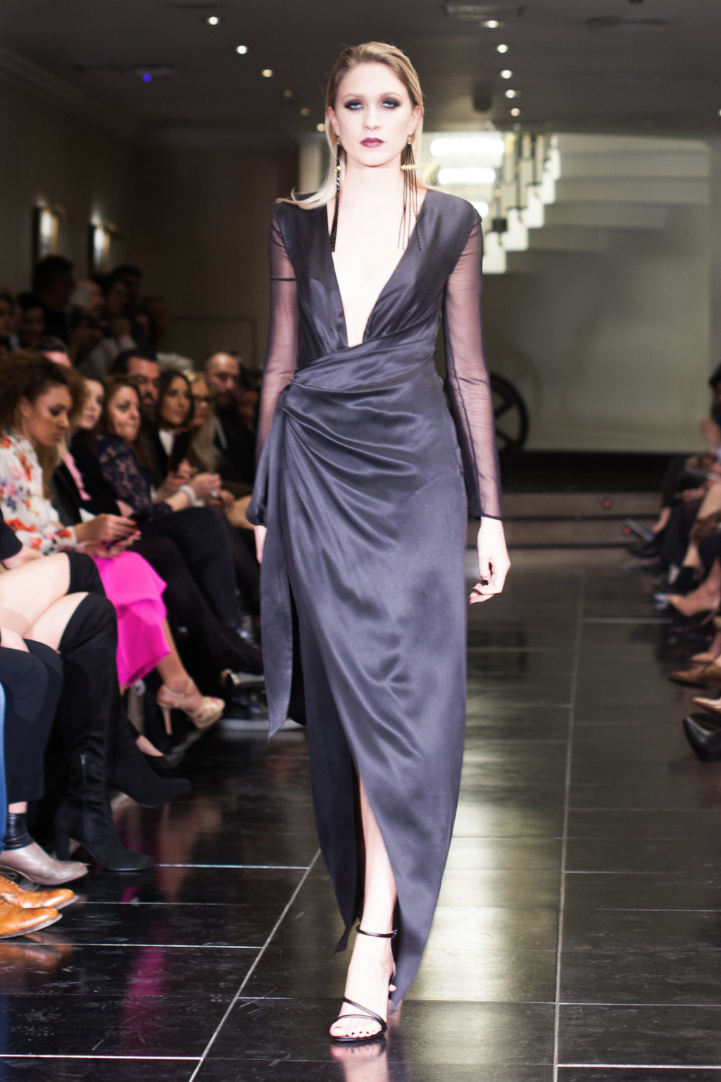There was a stark and almost melancholy feel at the show. The models were in dark eye make-up and had plum-coloured lips, which added to the mysterious nature, as if the girls had acquired one of the treasured black corals. They weren’t showy however; instead presented a dramatic, opulent kind of beauty.