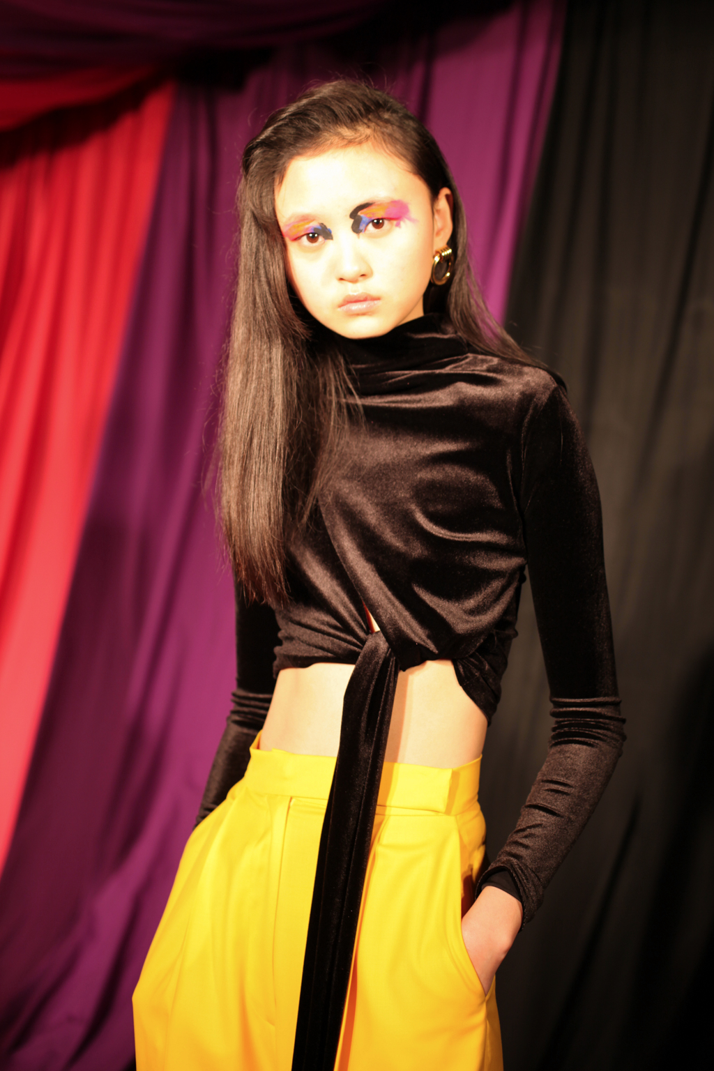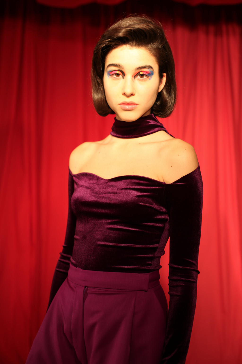 The setting was a dark room, Tina Turner’s What’s Love Got to Do playing in the background, and the models placed against the backdrop of heavy velvet curtains in the main colours of the collection: black, purple, red, pink, orange and yellow. The looks were sleek and elegant, yet with a youthful edge. It was reminiscent of her SS17 collection, featuring similar colours and fabrics, but this felt much more grown-up and refined.