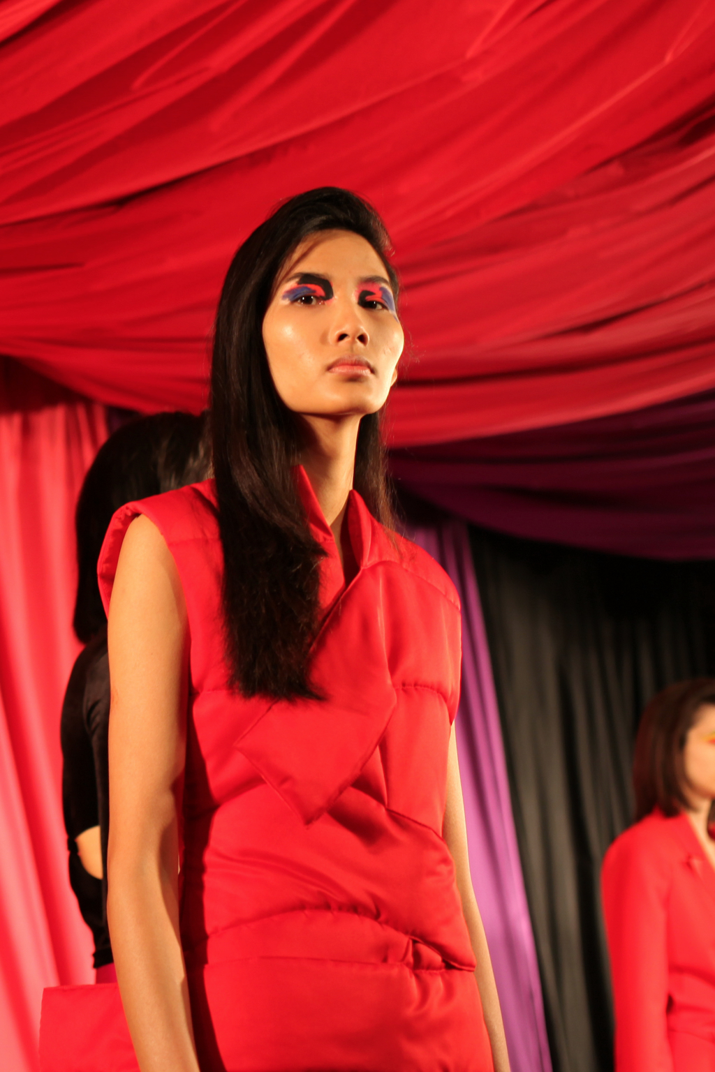 With the models only wearing minimal, delicate gold jewellery to showcase the bold colours and equally bold and artful makeup of red and blue eyeshadow, it is not hard to imagine that these bright and easy-to-wear pieces will be donned by many working ladies in the cities of the world.