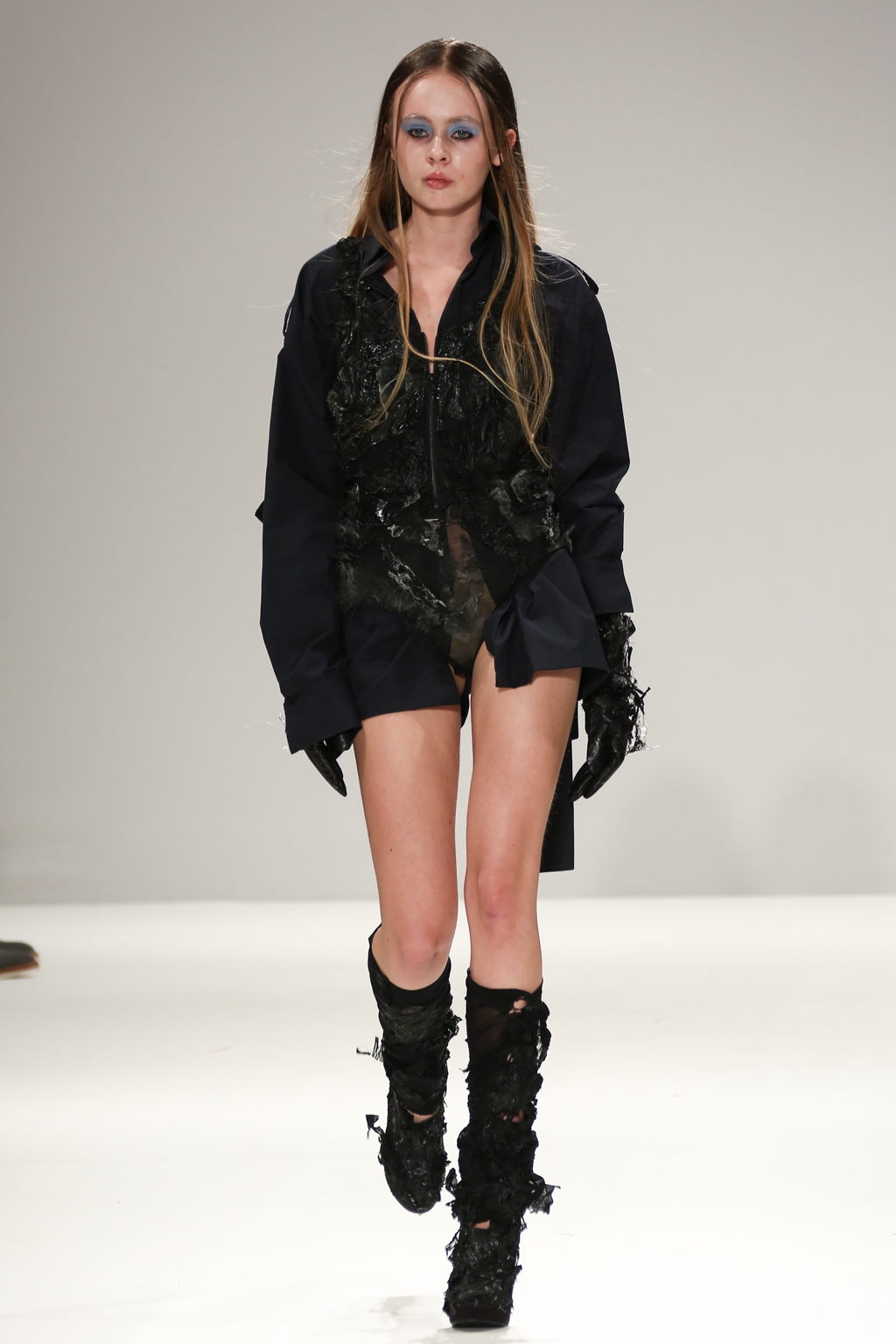 The collection seemed to be about emotion. There was something beautifully foreboding and haunting about Joanna Berling’s autumn/winter 2017. Sheer, crumpled and crinkled textures gave it a raw and organic feel. A daring black blazer and lacy lingerie combination made this collection delicate but deadly.