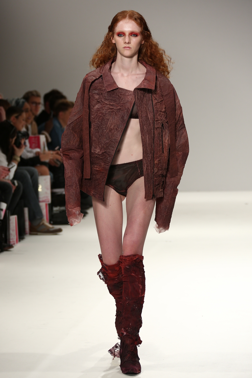 An army of Ziggy Stardusts stormed onto the catwalk, boldly coloured fringing swishing with every step. Krasimira Stoyneva’s breakthrough collection had a glam rock aesthetic with an attitude to match.