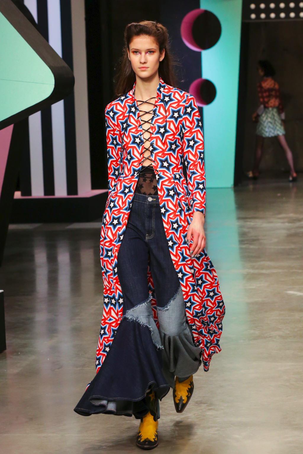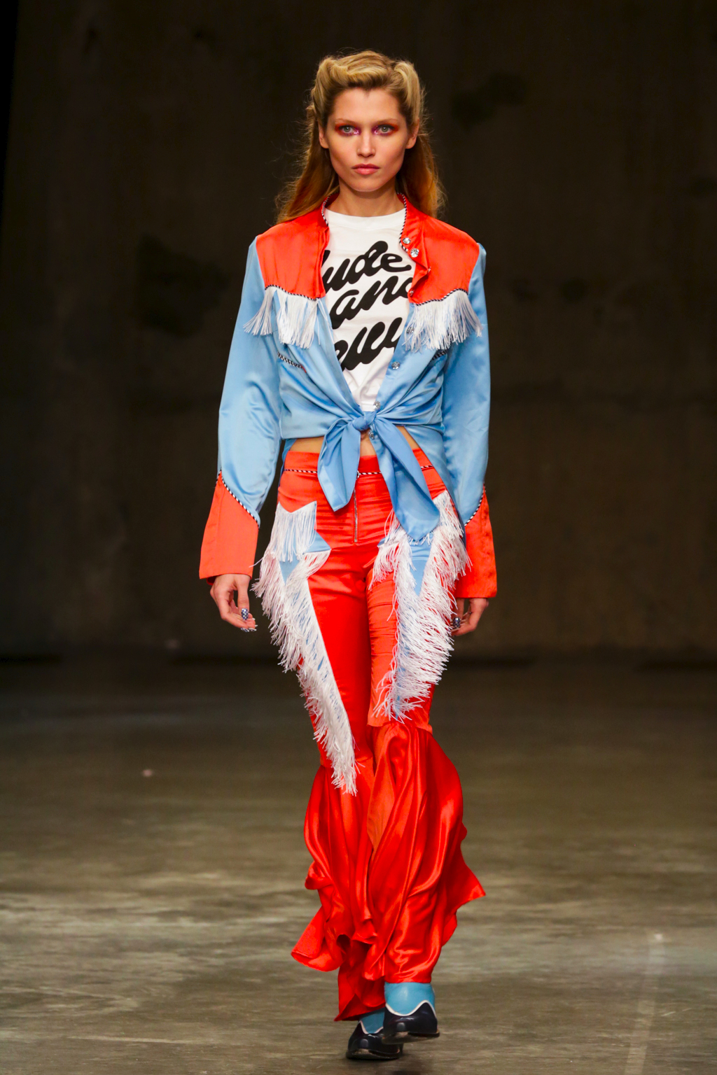 Dubbed “hip hop attitude with a country heart” the collection was dominated by the cowboy aesthetic, pimped up in loud, proud colours and clashing prints.