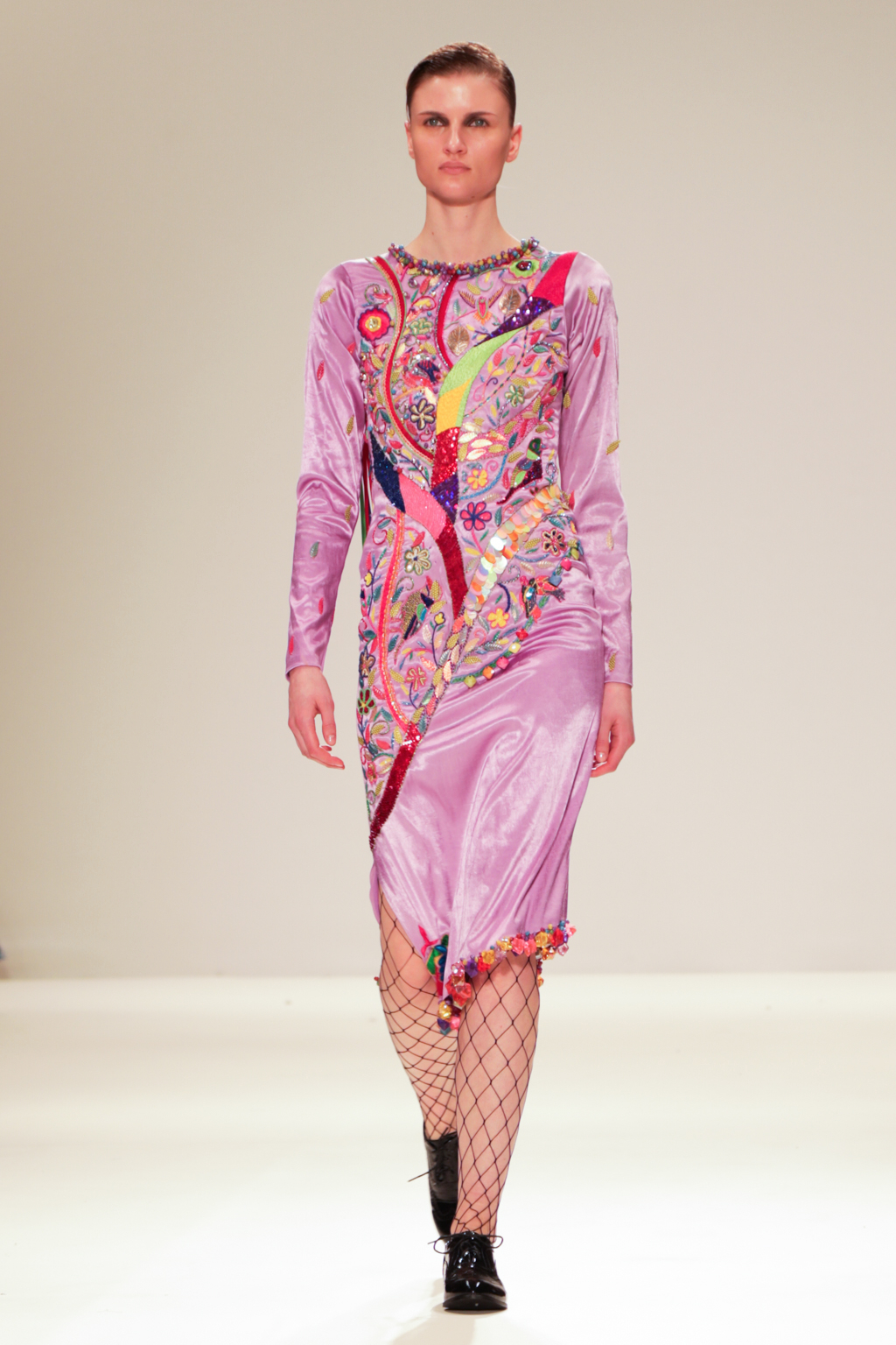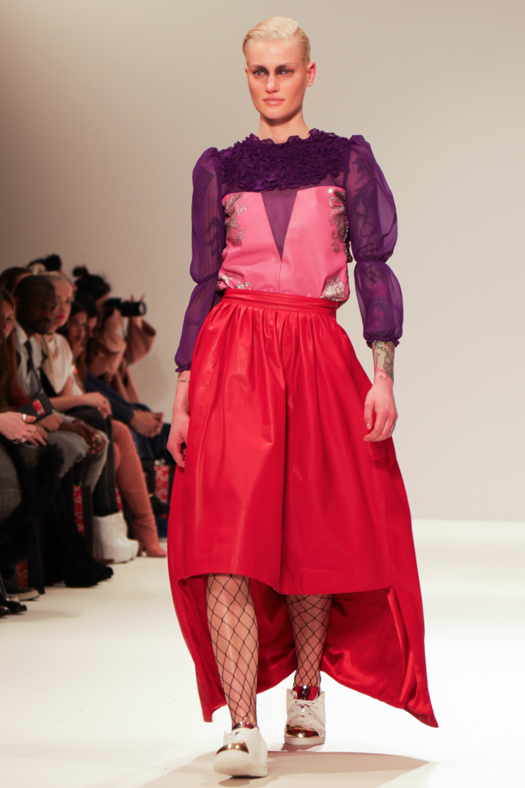 Styled with fishnet tights and Adidas trainers, models walked down the runway in designs that were awash with inspiration. There was a three-piece knitted outfit that reminded us of fluorescent and psychedelic Missoni; elsewhere, a series of gowns were so dramatic they could rival Marchesa.