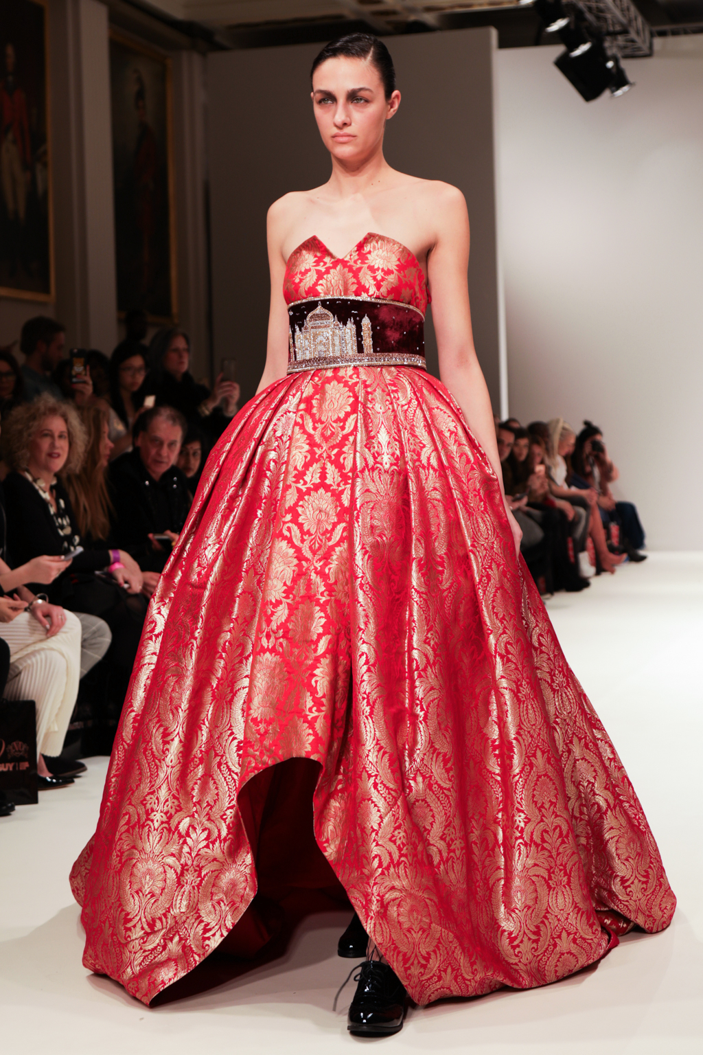 The standout piece of the night was perhaps a pale rose coat made out of silk that had the Taj Mahal embroidered on the yoke and gold thread creating impressive detail.