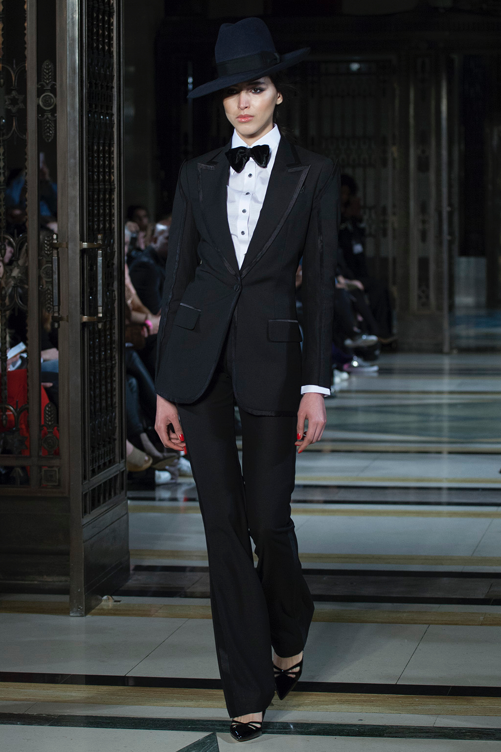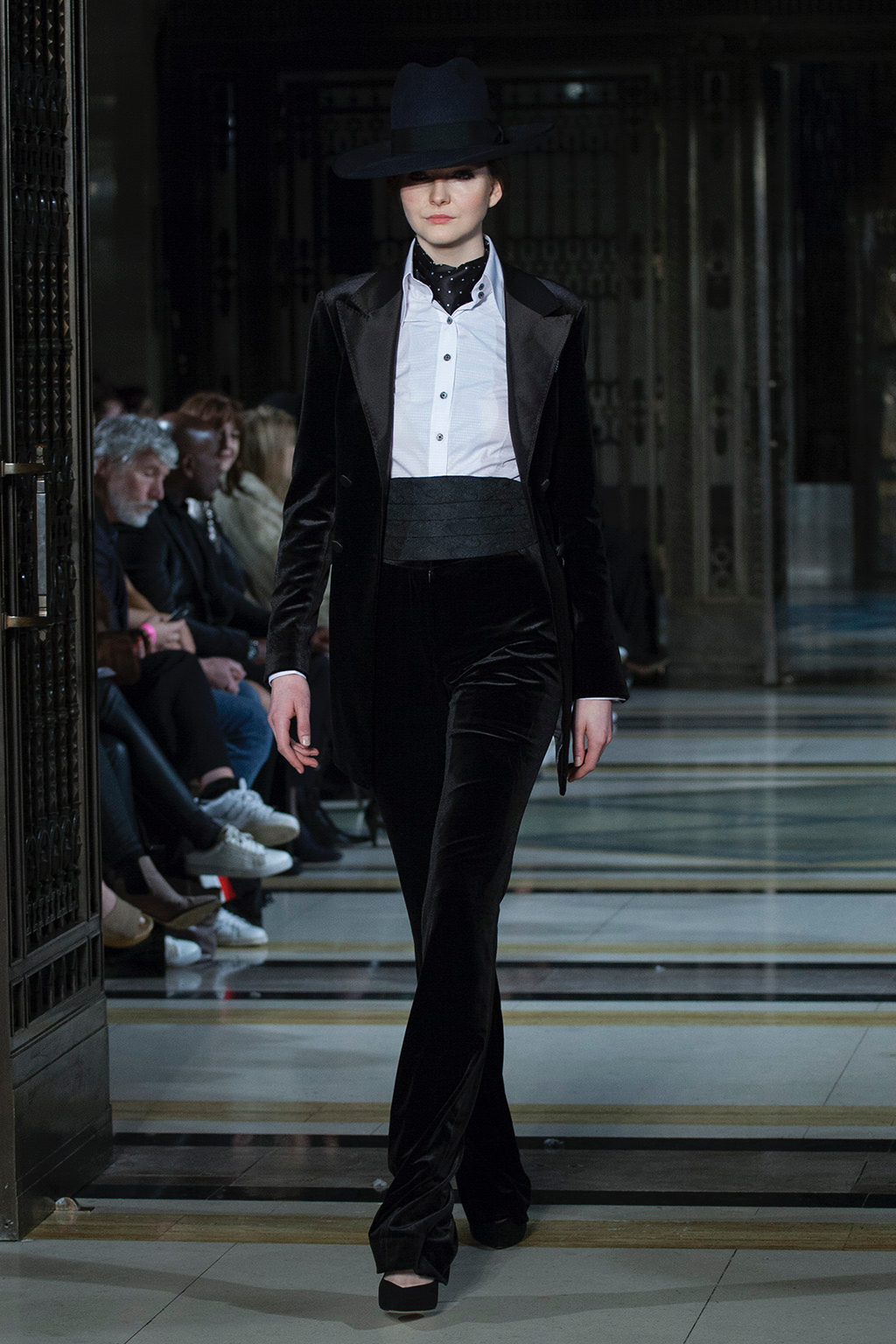 Malan Breton presented their autumn/winter 2017 at Freemasons’ Hall. Entitled Fantome, the collection paid homage to the work of Charlie Chaplin and his films of the 1930s.