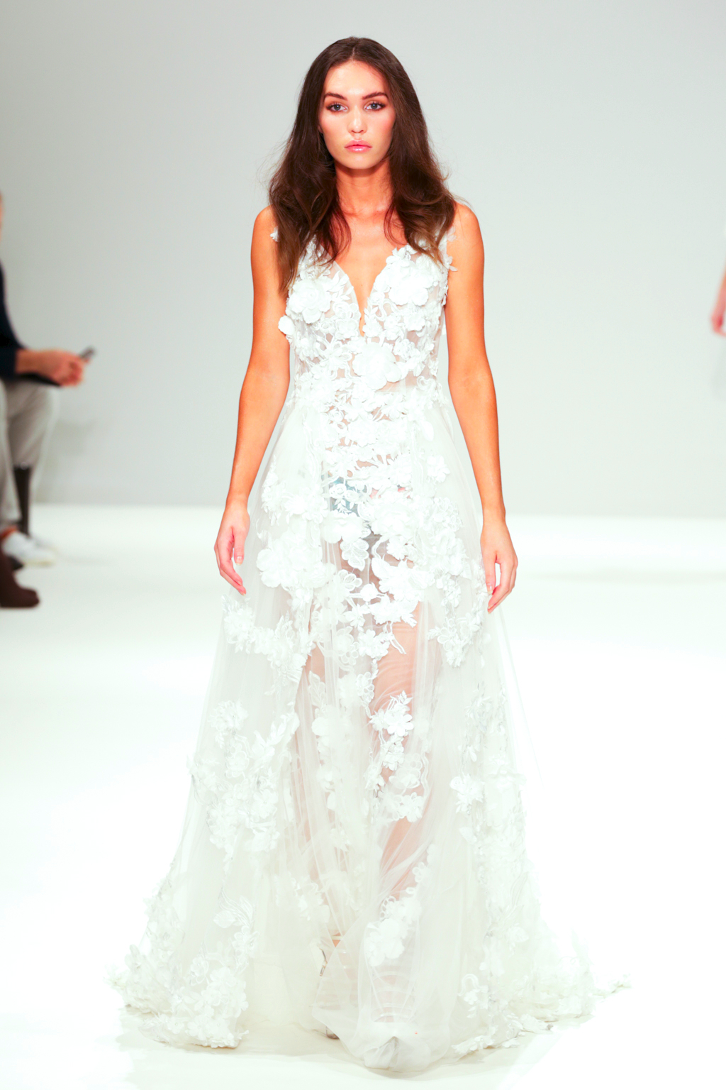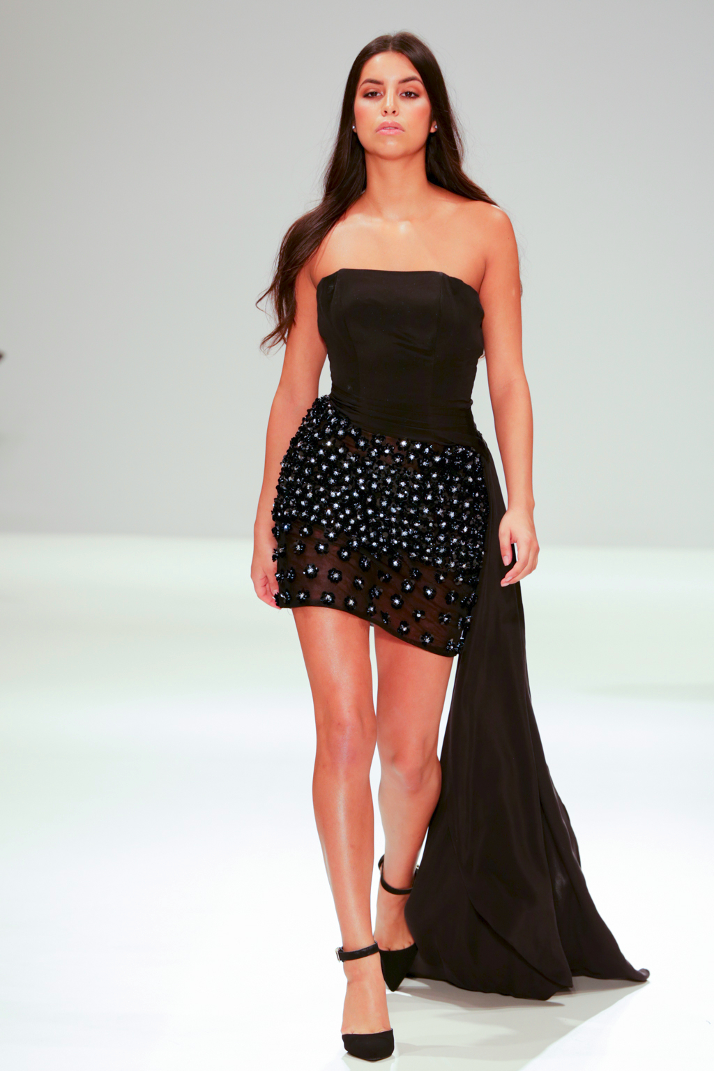 The themes of women empowerment, luxury and contemporary design came together in the capable hands of Mimi Tran. The rich fabrics and minimal accessories meant all attention was drawn to the hand bearing, floral motifs and sequinned crystal designs. The juxtaposition between the gold and black, neon and white pieces cleverly outlined the confident and impressive woman that Mimi Tran aspires to dress.