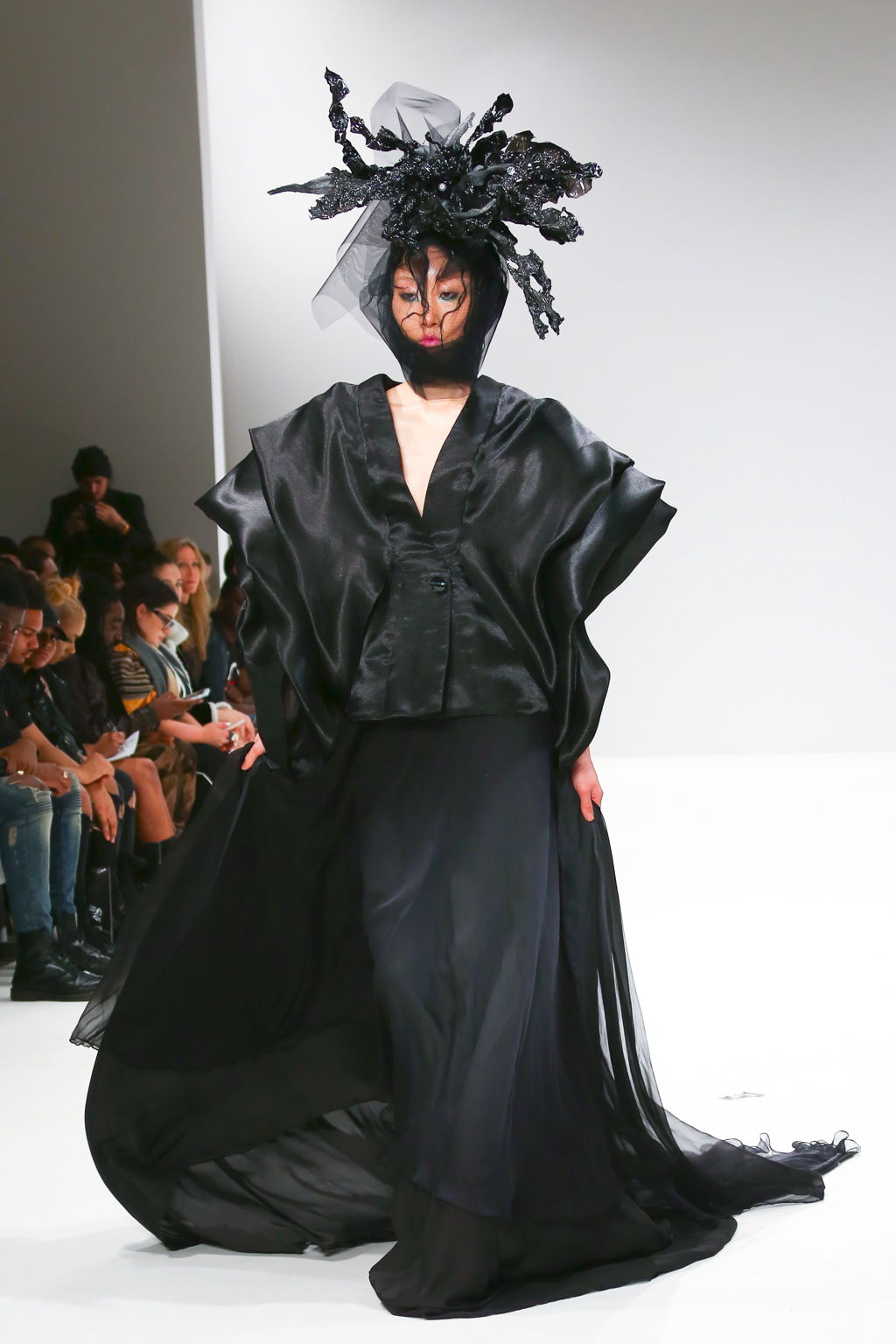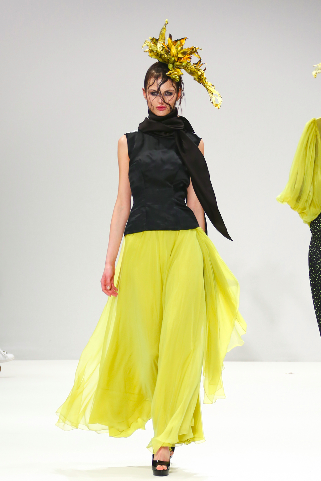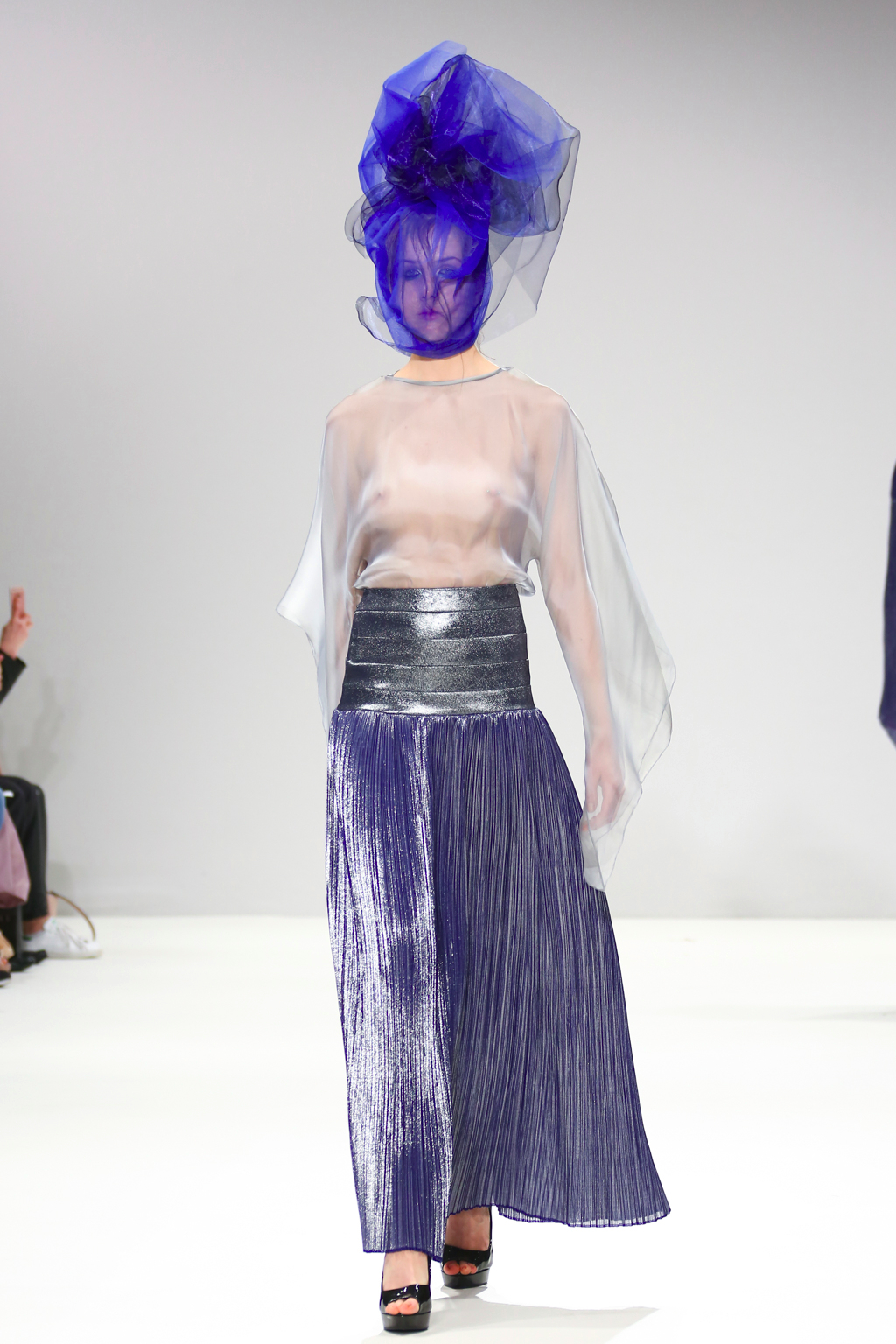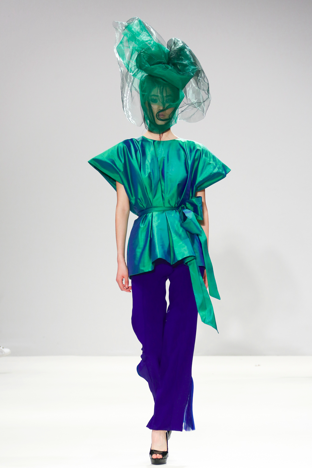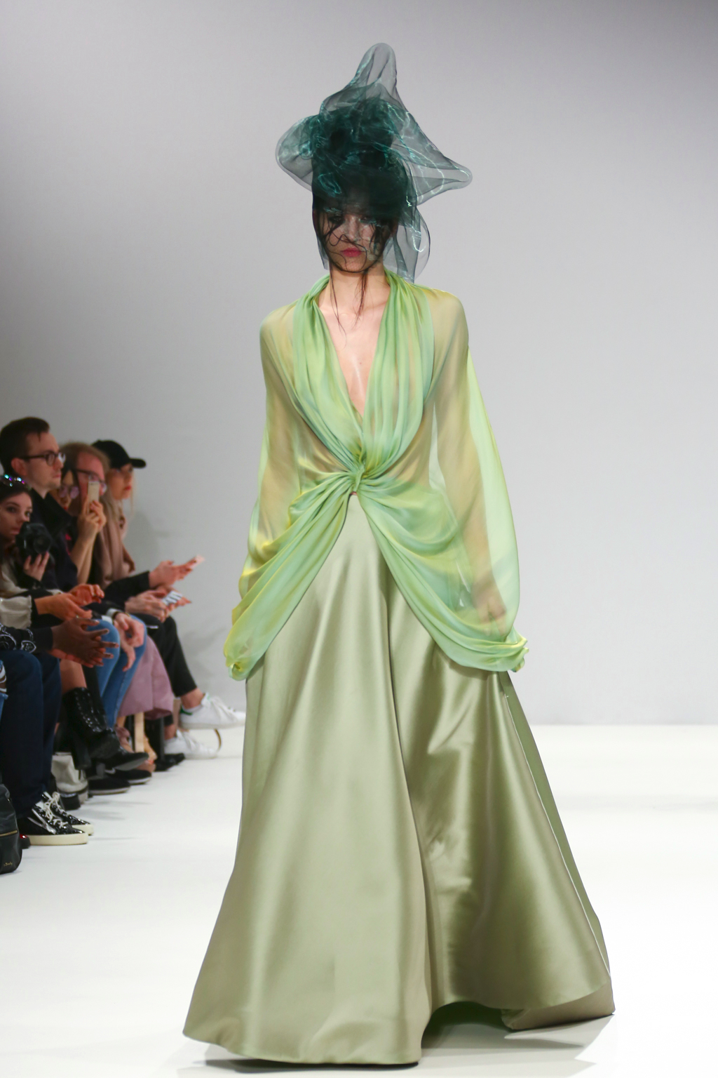 It was an explosion of shiny ruffled blazers in turquoise, maxi skirts resembling seaweed, sculptural headdresses and translucent capes which created a dreamy and deep effect. The gowns presented here were ones that could be worn by musicians with theatrical performance and on red carpet.