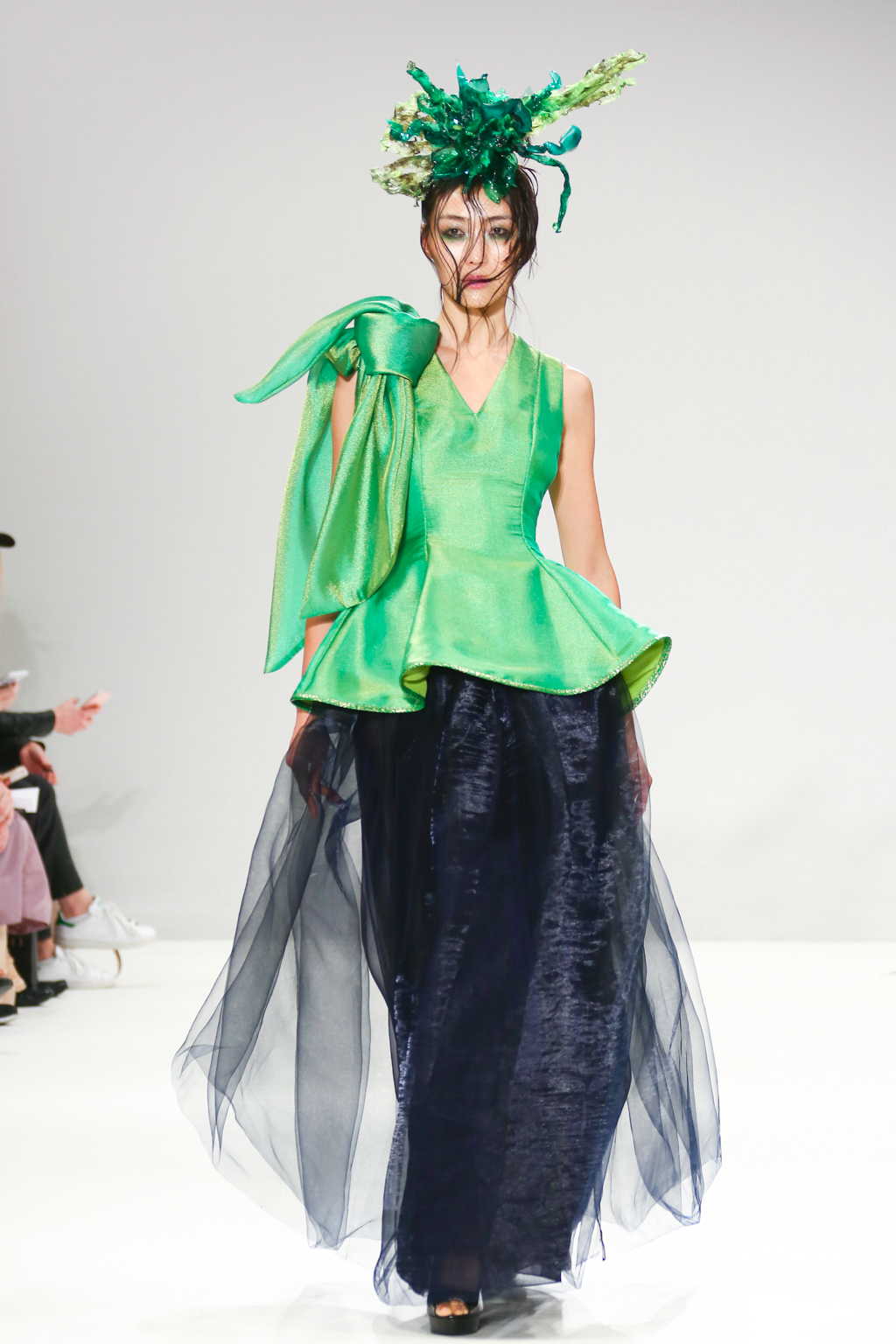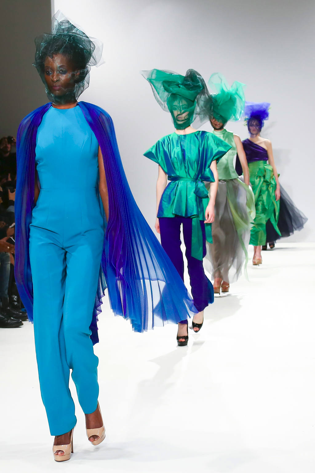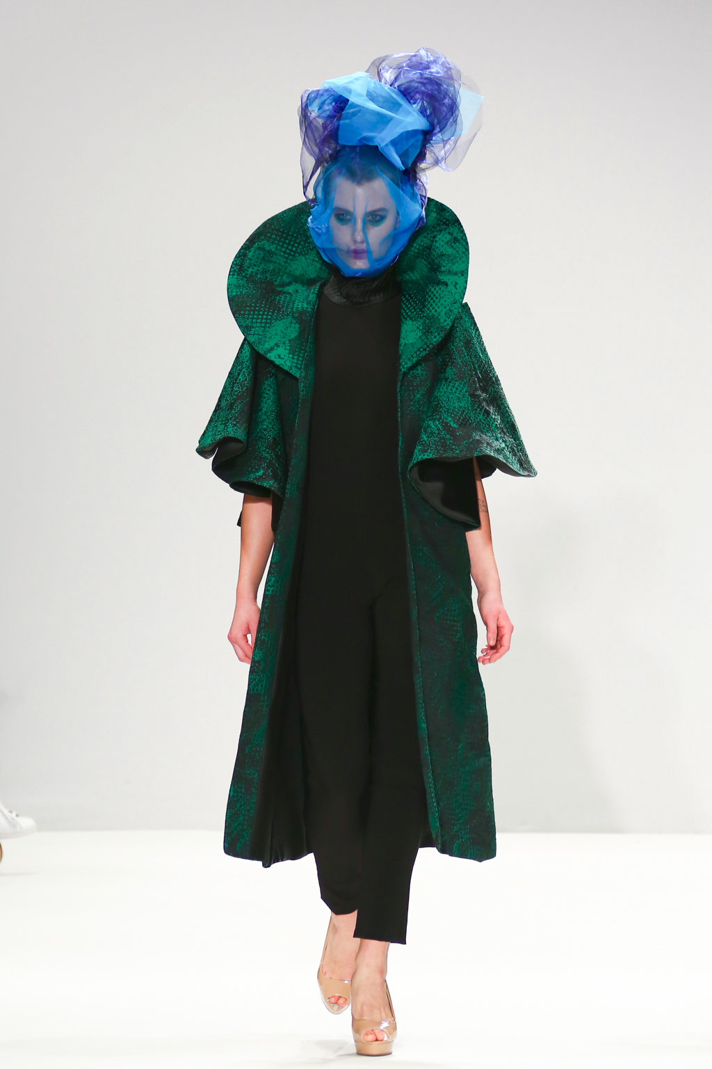 With tones of blue, green and black, the collection explored all aspects of sea life including mermaid like looks, and the depths that are too dark to see. You could also see the influence of fishnets, the foam of waves in the ocean as well as different species of fish.