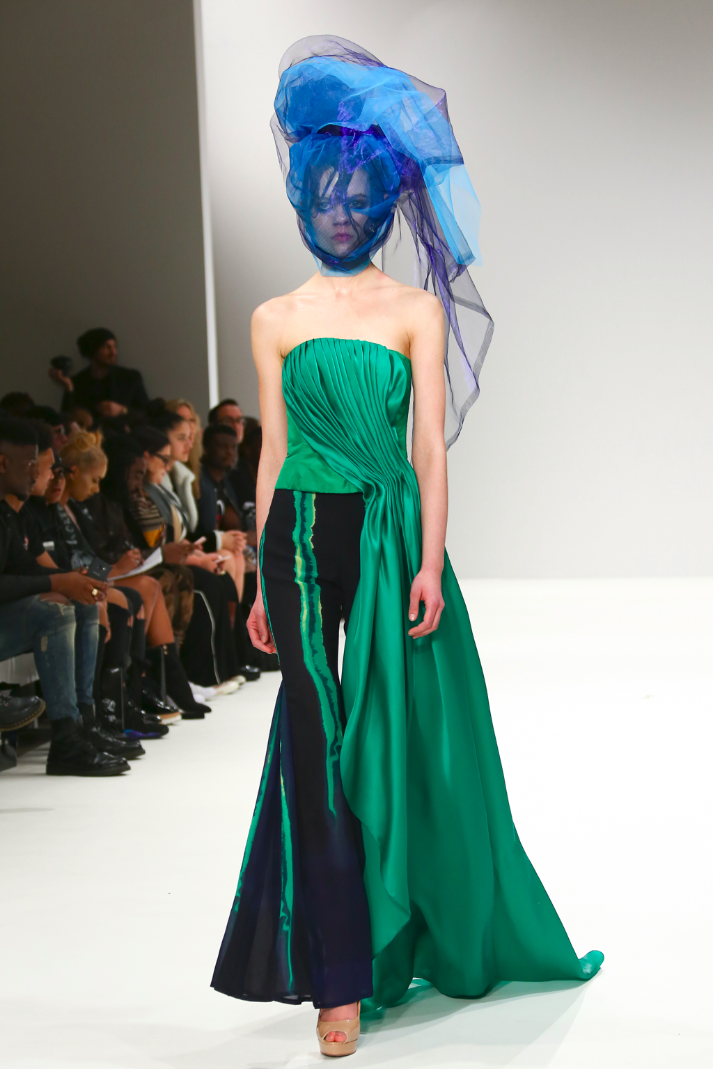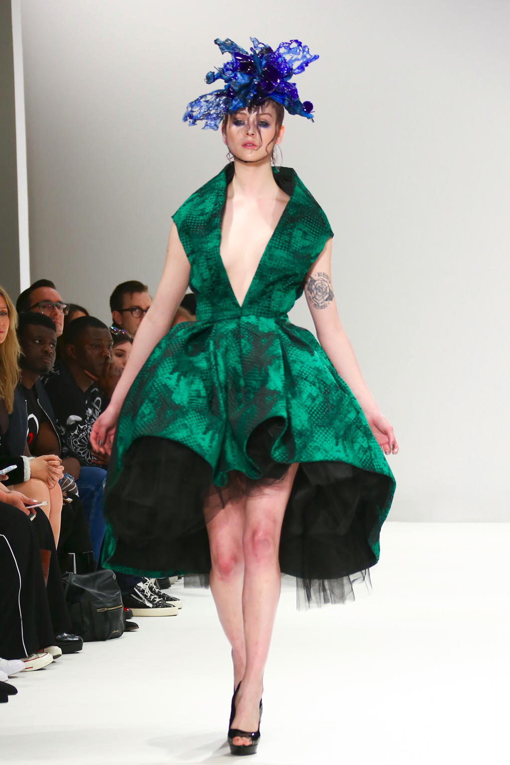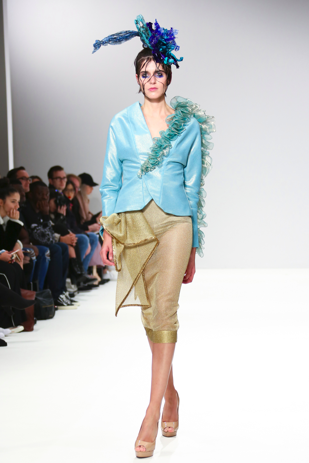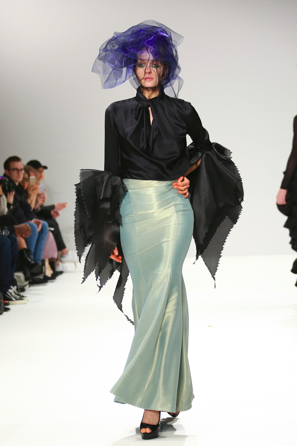 With tones of blue, green and black, the collection explored all aspects of sea life including mermaid like looks, and the depths that are too dark to see. You could also see the influence of fishnets, the foam of waves in the ocean as well as different species of fish.