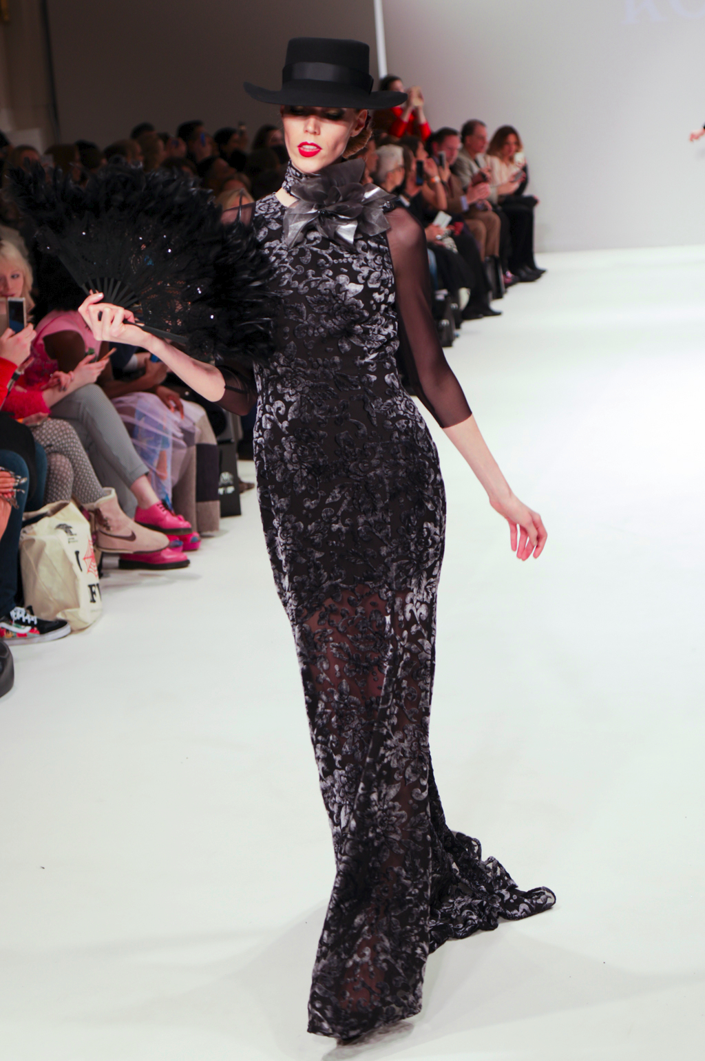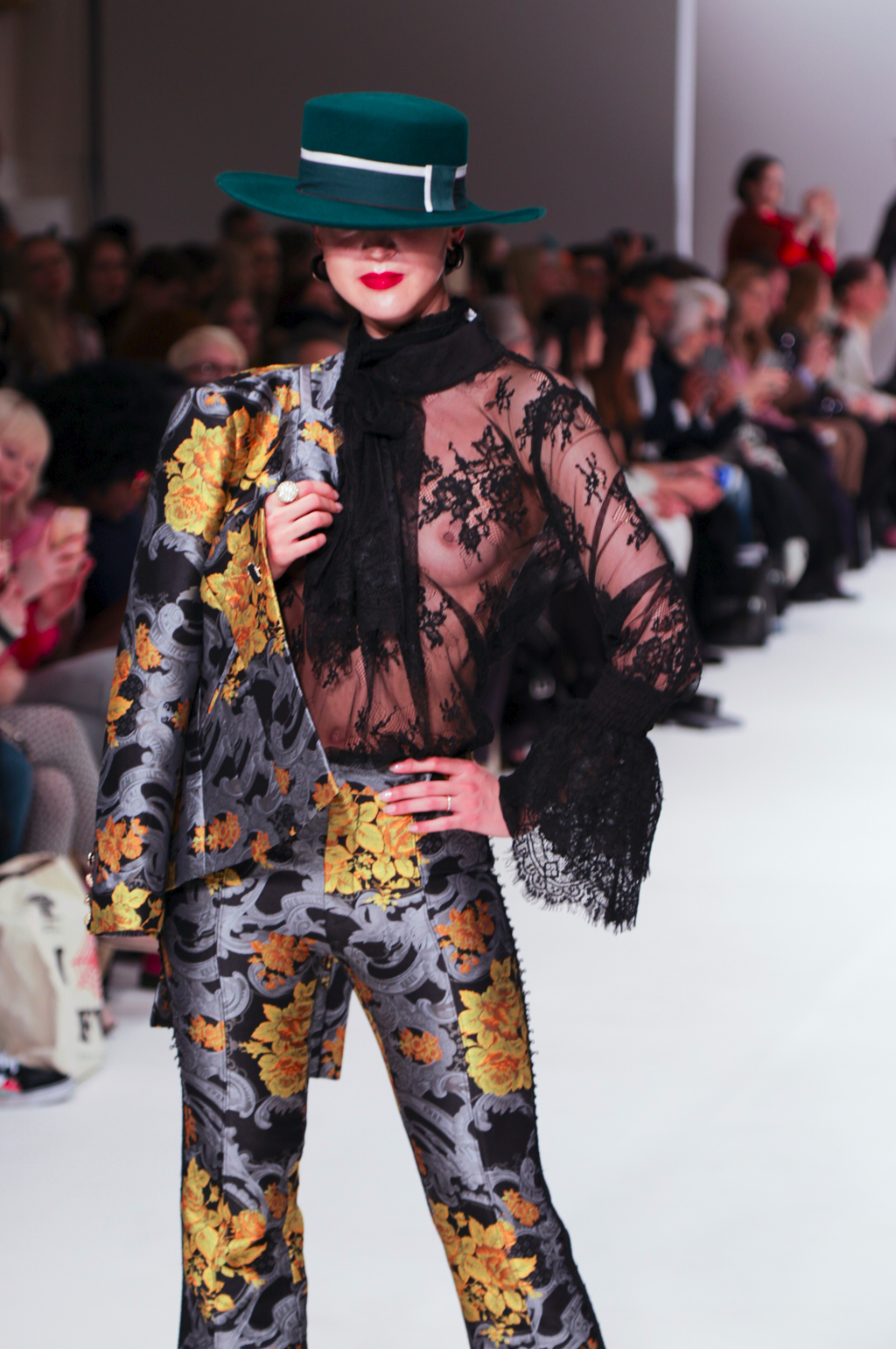 There were combinations of black, grey and mustard that felt modern, combined with Spanish gold trims and feather details to add an element of old school glamour. The standout pieces were the gowns, blazers and ruffled capes, and the Spanish music gave the collection a clear direction, as well as appearances from the flamenco dancer. The collection was rich in references, the amount of looks and different prints, but with the common theme it all made sense.