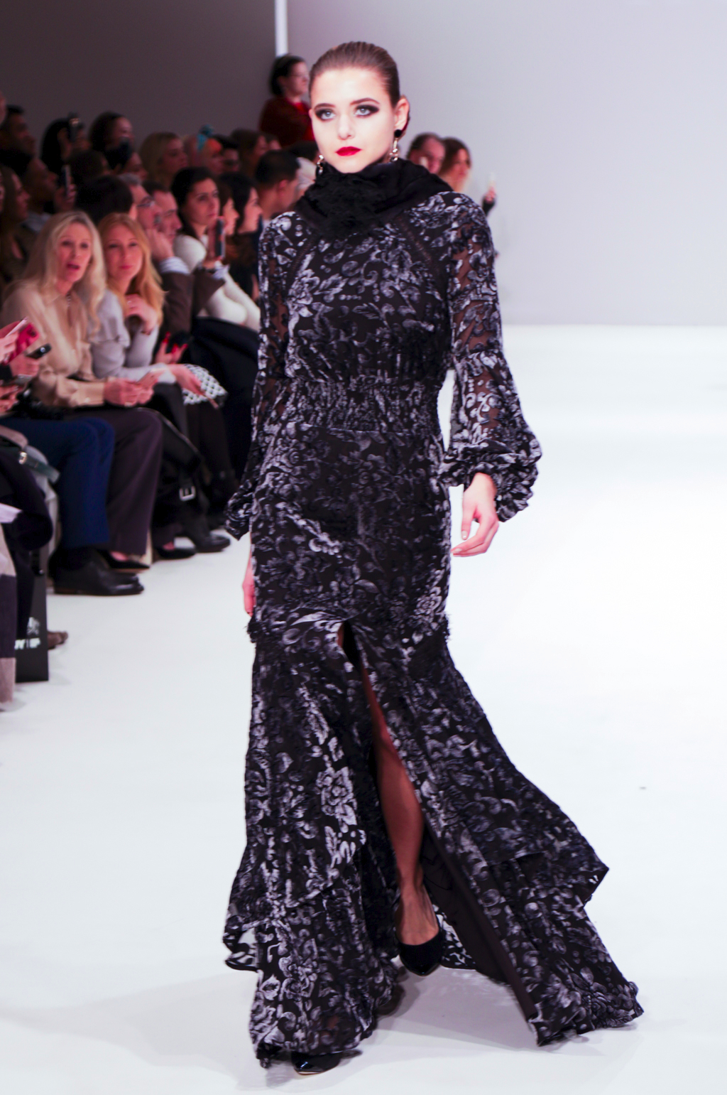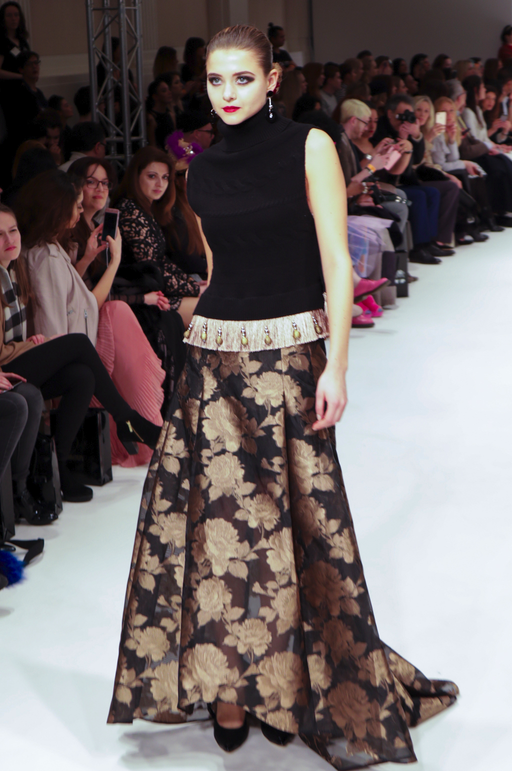 Everything was elaborate and shiny but it didn’t feel like it was in vain; it all linked back to Spanish heritage and gave the collection integrity. The gowns were so intricate that they could only be seen in high-end balls and red carpet events, but other pieces such as the flared trousers and coat in matching jacquard prints could be worn everyday, while the cocktail dresses at more informal occasions.