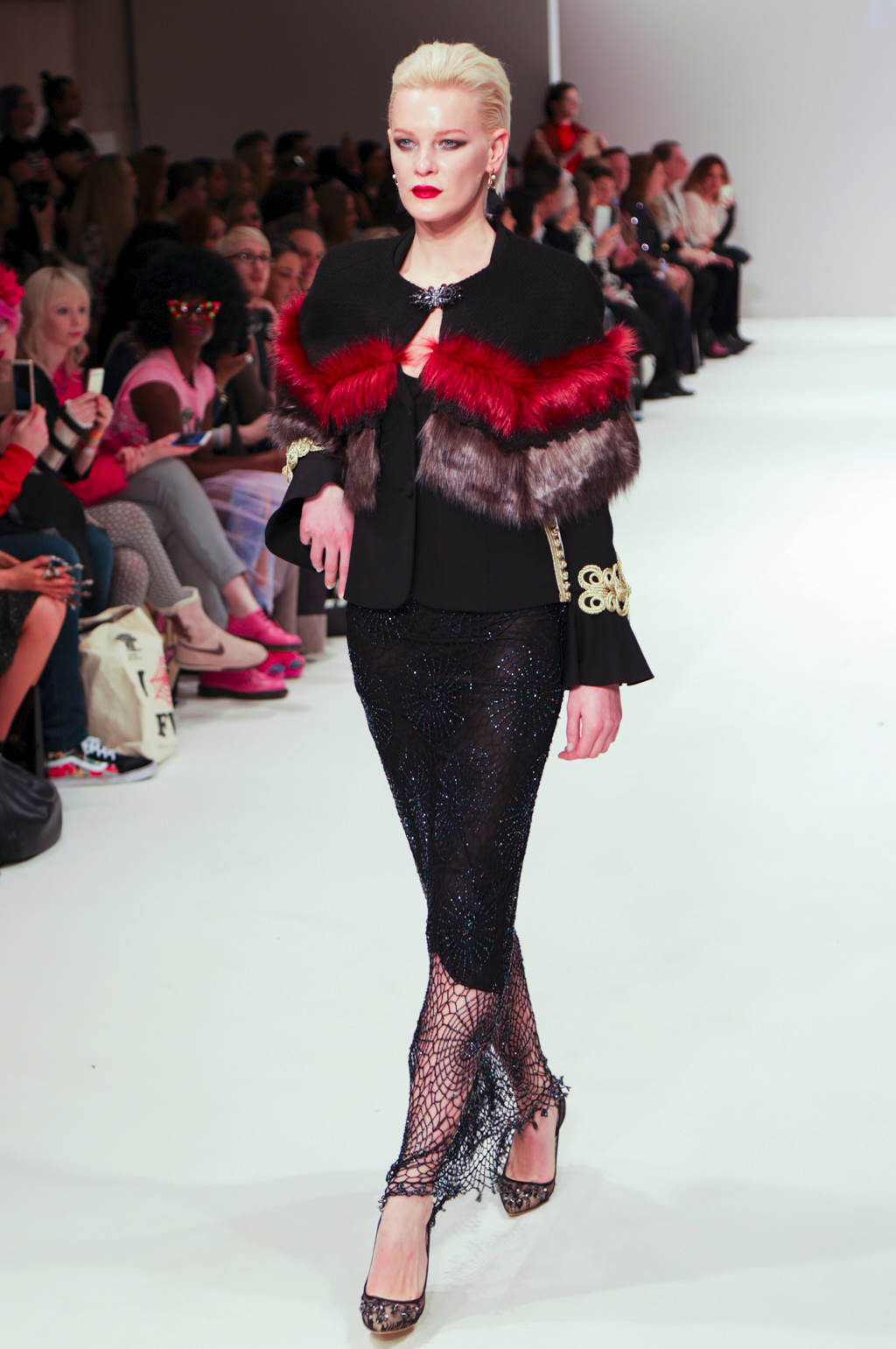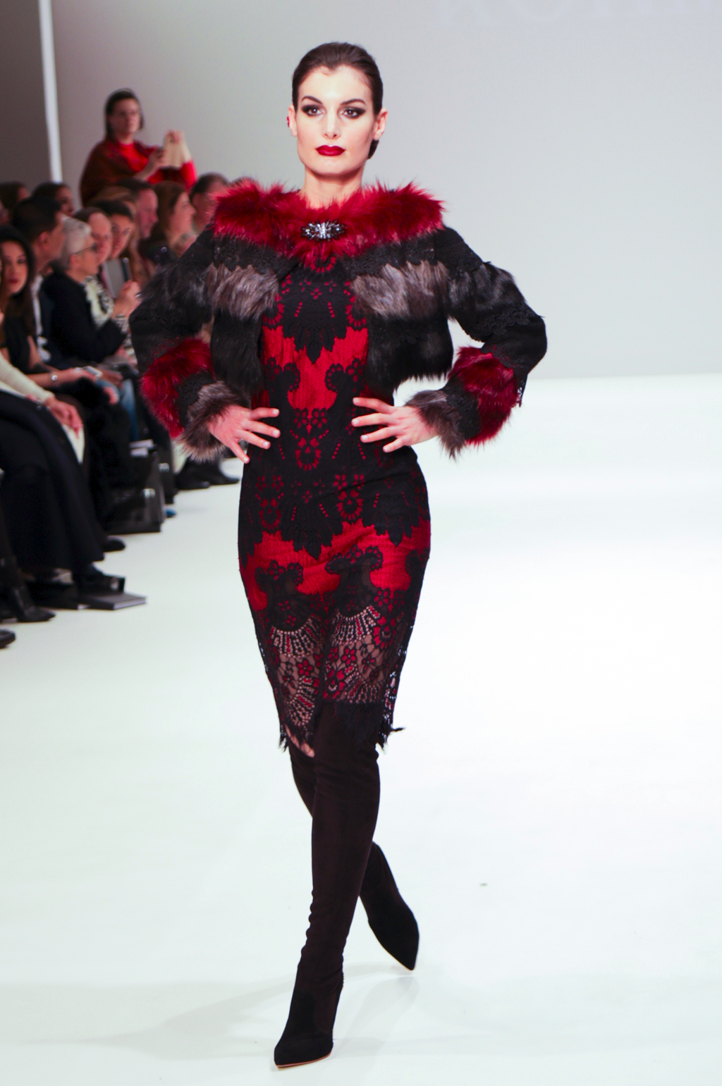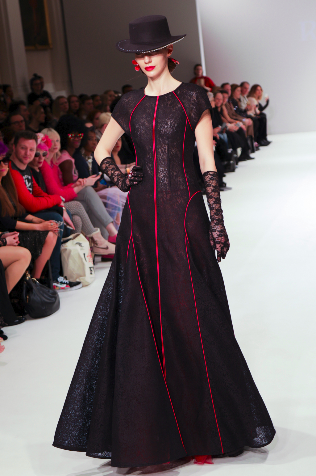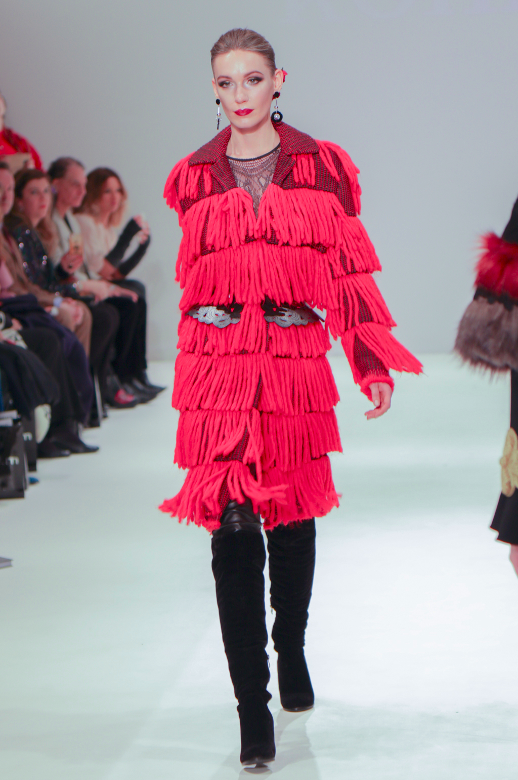 Rohmir’s AW17 show is titled El Castillo Secreto: this magical journey was an exploration of Spanish-inspired clothing through flamenco. The show included a mesmerising flamenco performance, followed by a sea of metallic brocade coats and dresses, black matador hats, velvet prints, pussy bows, puffed pirate shirts, red fur linings and fringing. It was a new take on traditionally Spanish clothing, and could be seen worn by contemporary women.