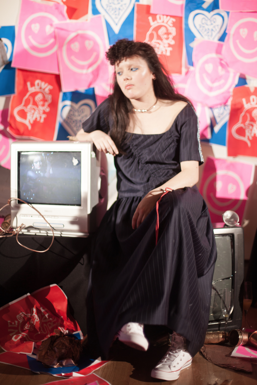 Retro 80s-inspired pastel shaded hair, garish multicoloured eyeliner and eyeshadow, and Converse finished off the seemingly careless, caution to the wind smashing together of styles.