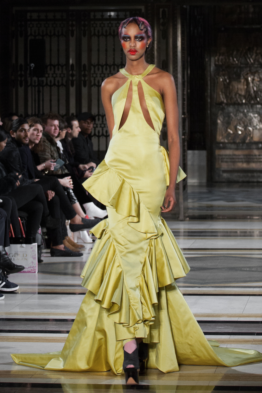 Meanwhile, a stunning chartreuse ruffled dress created a sleeker, more streamlined silhouette, but it remained beautifully ornate and fanciful.