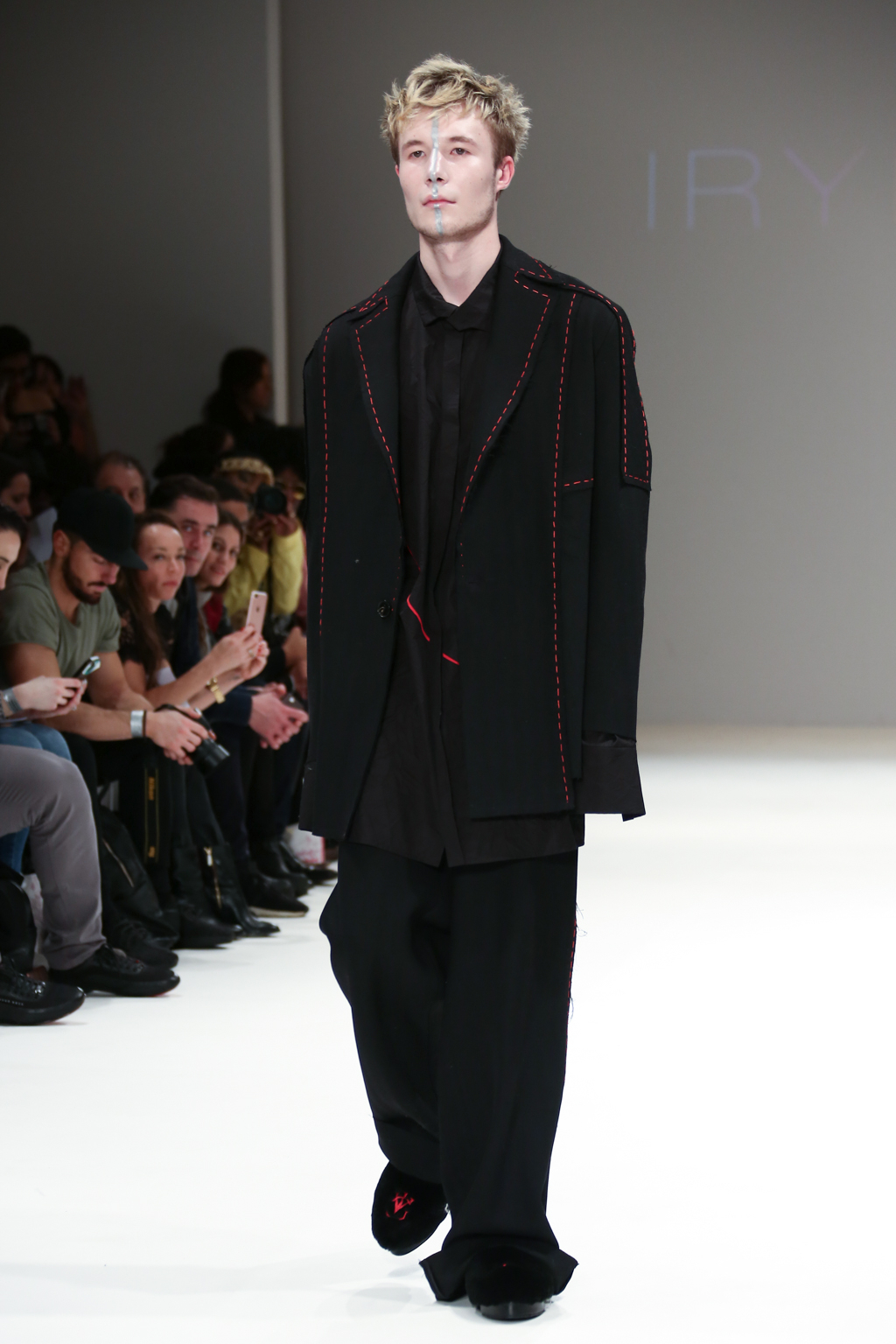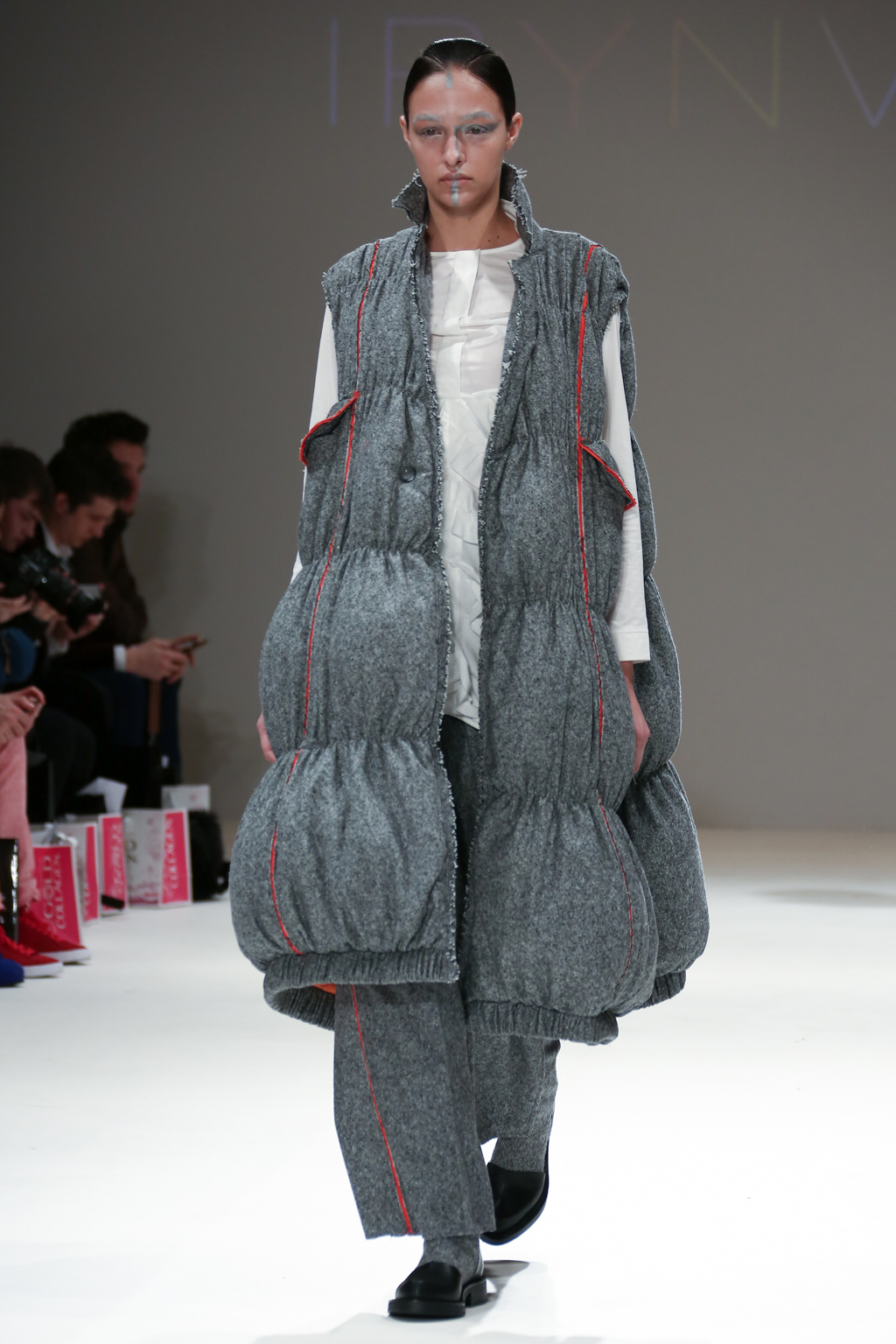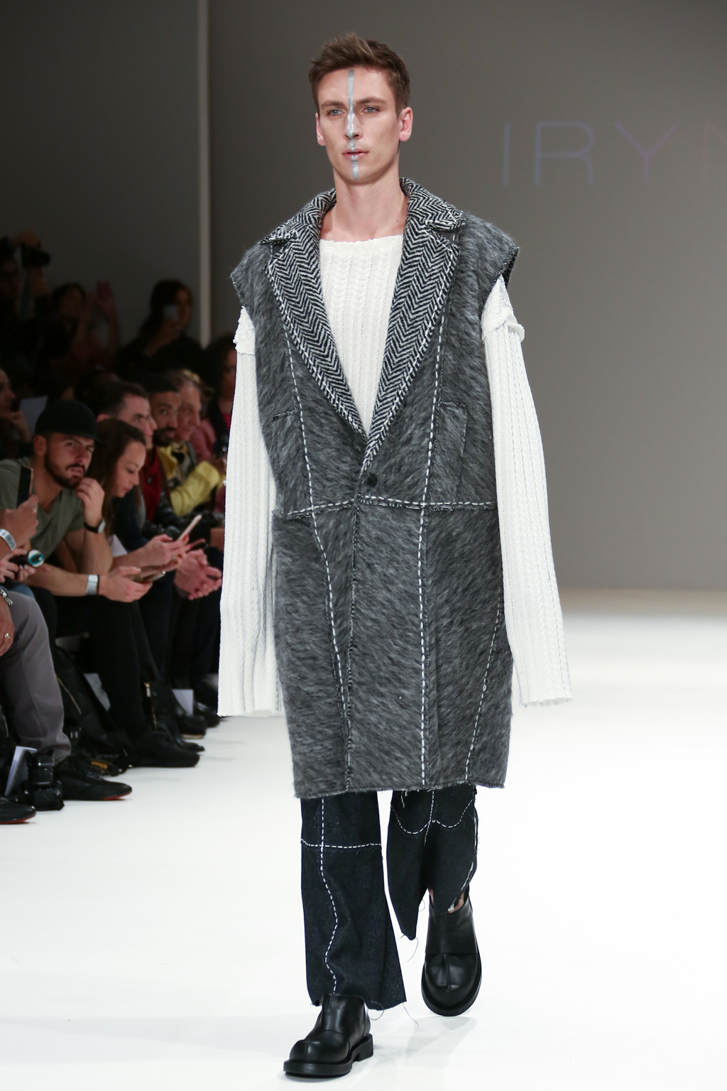 Inspired by the futuristic concept of artificial intelligence beings walking among us, Irynvigre’s autumn/winter 2017 collection was a combination of both womenswear and menswear: other-worldly models exposed by way of raw, unfinished hems and dotted, visible seamlines.