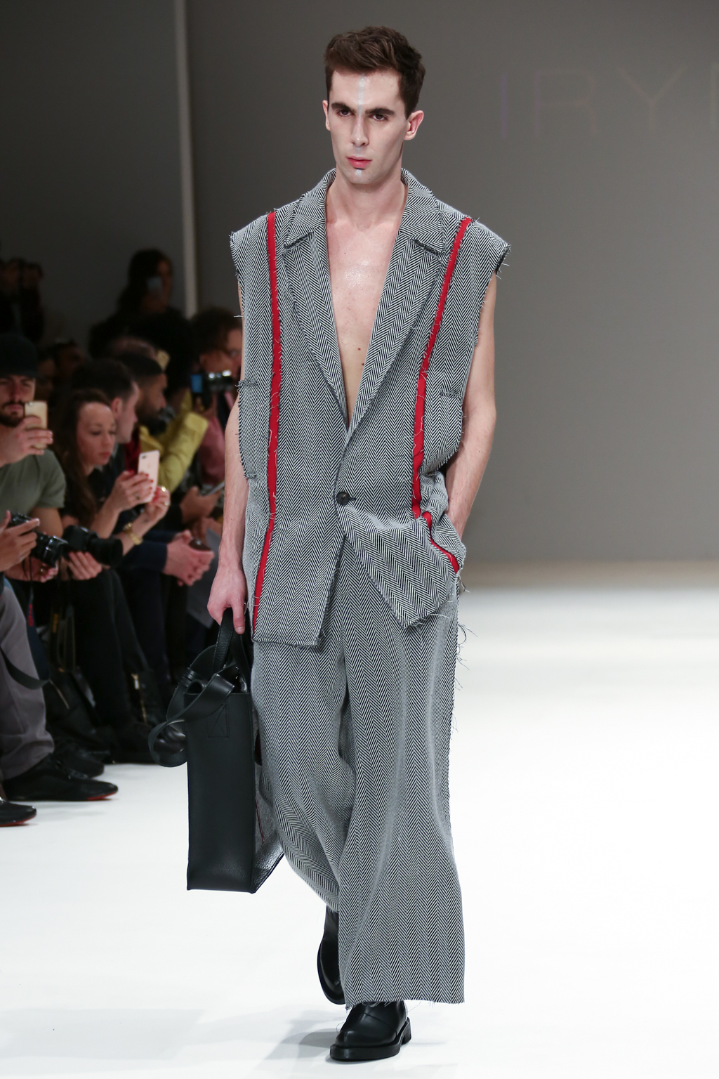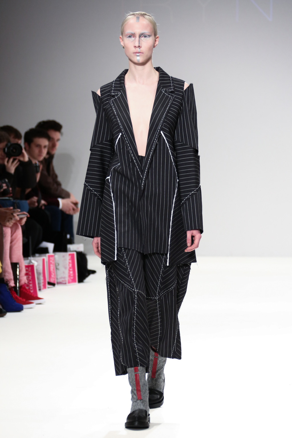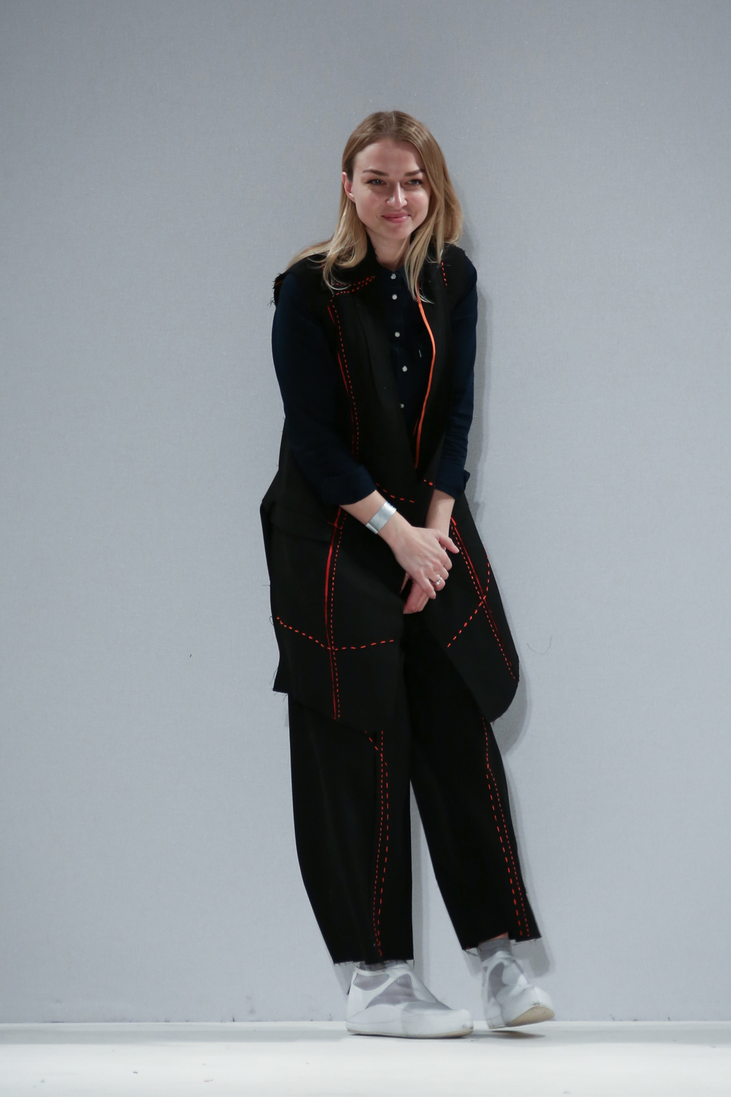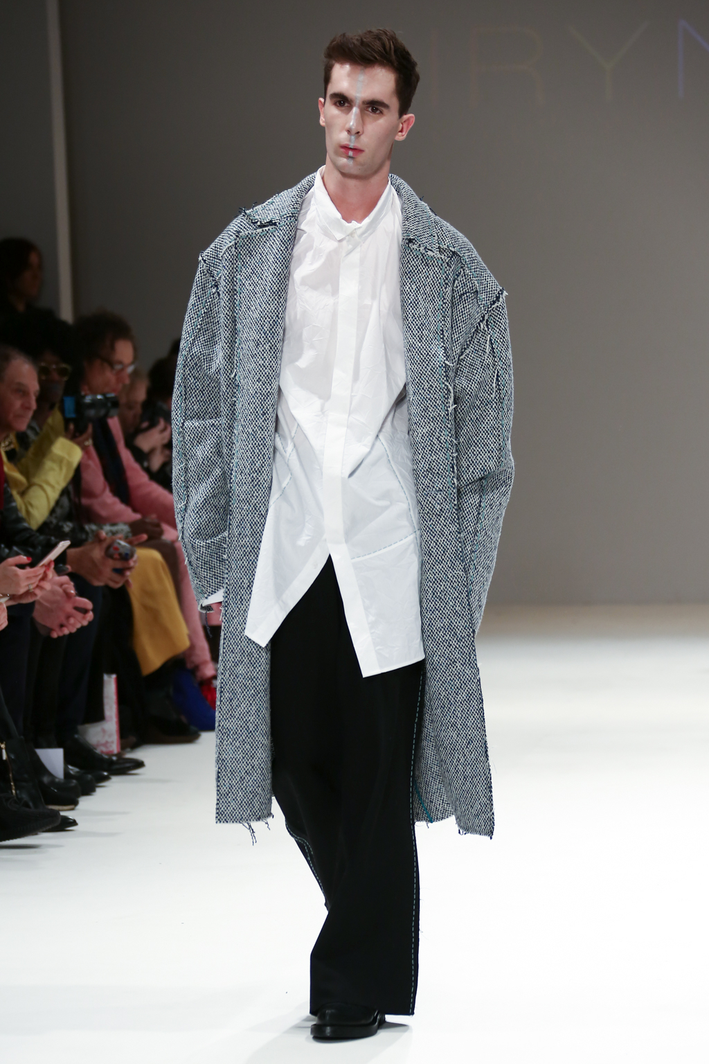 Inspired by the futuristic concept of artificial intelligence beings walking among us, Irynvigre’s autumn/winter 2017 collection was a combination of both womenswear and menswear: other-worldly models exposed by way of raw, unfinished hems and dotted, visible seamlines.
