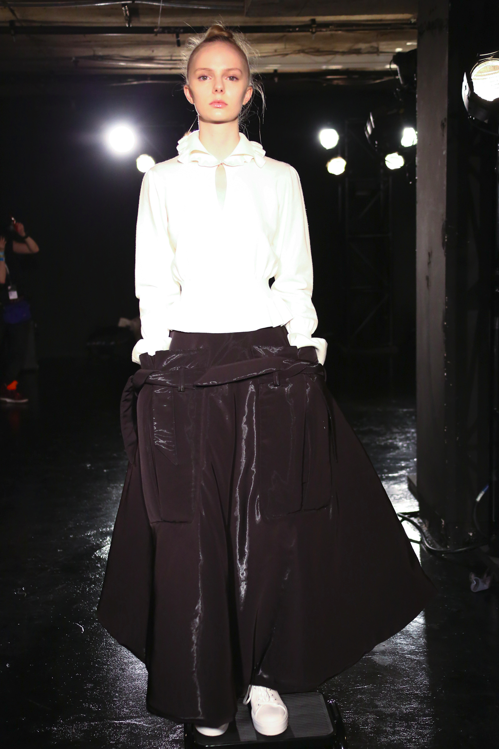 With most of the skin covered, Xiao Li created a conservative style, yet modern through the multitude of layers. The designer empowered the urban woman, giving her an effortless,confident and fearless look making the most out of references from the past