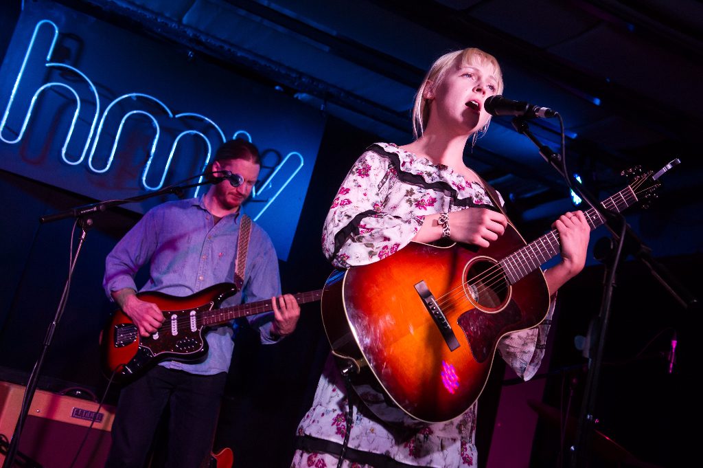 Ten years on, I’m in the upstairs live venue at HMV on Oxford Street with just a few hundred people watching the singer-songwriter perform her sixth album, Semper Femina, out this Friday 10th March, kicking off a UK tour. Slipping silently onto stage in a flowered white dress and black clogs, it wasn’t until halfway through she announced: “We’re playing the new record by the way”. and then later introduced her band, adding, “Oh, and my name’s Laura”. Equally understated (no pictures, no interviews), equally timid-seeming, yet equally able to make the room stand still, this performance showed she has only gone from strength to strength. Characteristically folky, there’s a refreshing illusion of simplicity and grace in her music that is yet able to play with rhythms, sounds and lyrics to convey a nuanced complexity of meaning and emotion. Her latest tracks form an outward and inward look at femininity, sexuality and identity, hooked around her own malleable voice and nimble, acoustic guitar fingering.