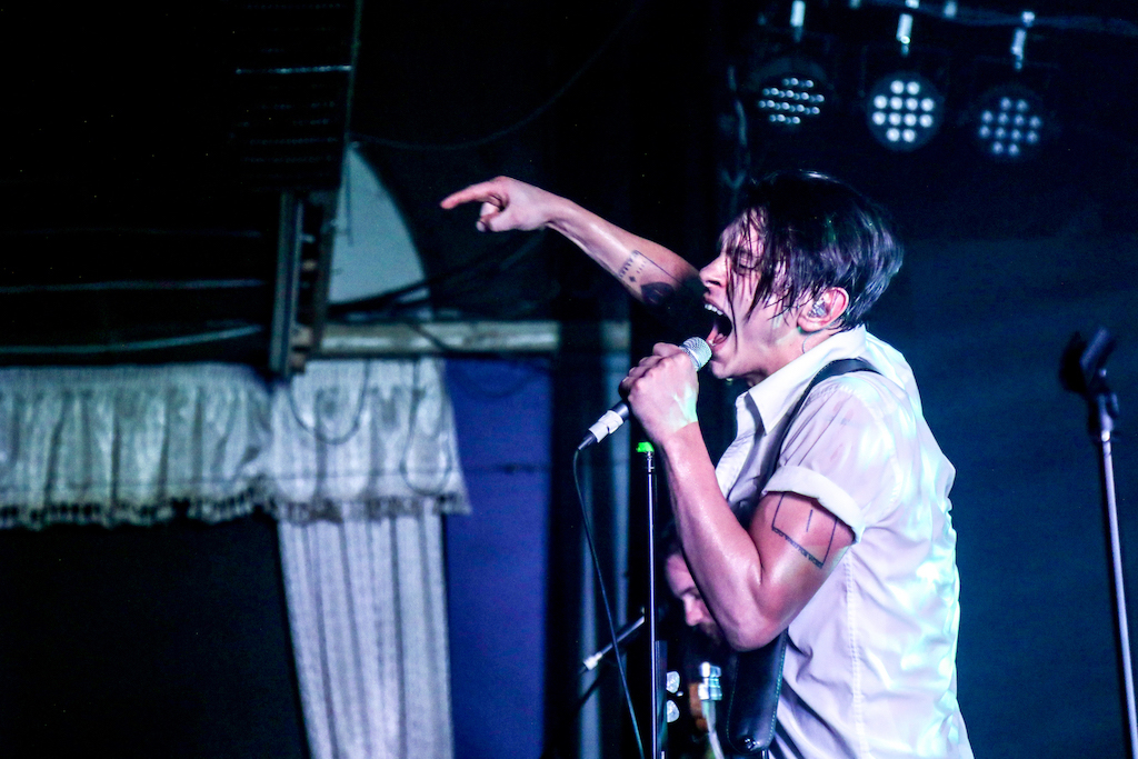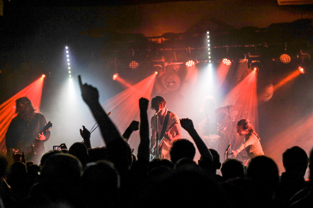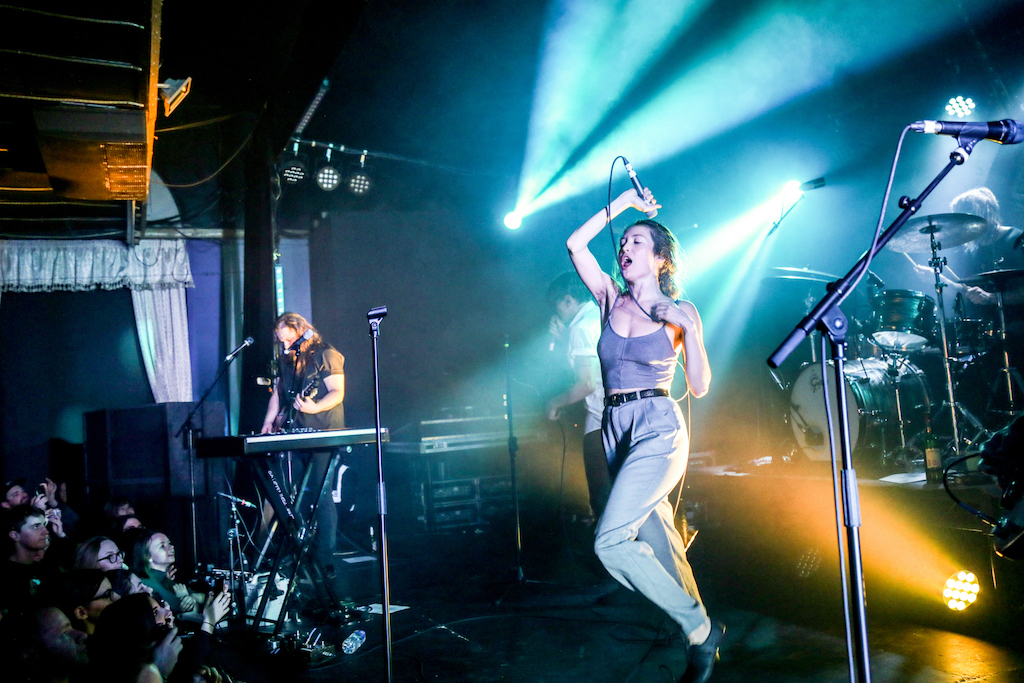 All this, set to the ripping tones Dreimanis’s and Ian Docherty’s guitars, Josh Warburton’s bass (and some surprising high-pitched backing vocals) and Danny Miles’s drums driving the heavy steam train without a minute of reprieve – save perhaps for the raucous band’s slower, emotional number, Strange Habit, enhanced with Fay’s theatrical sipping from a wine bottle – as well as some dreamy effects produced by a combination of Docherty’s pedal board and cowbell proficiency (notably in Now I Know) and Dreimanis’s keyboards.