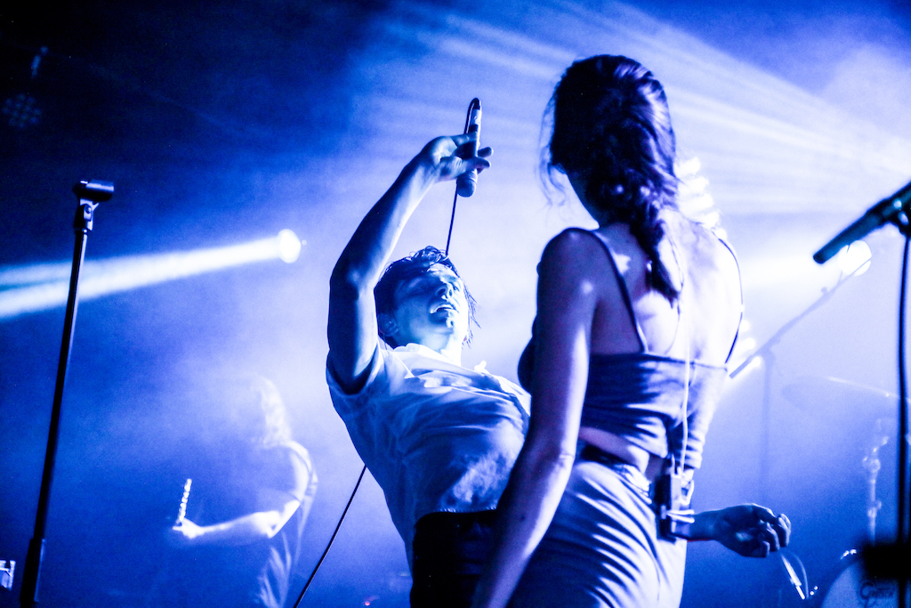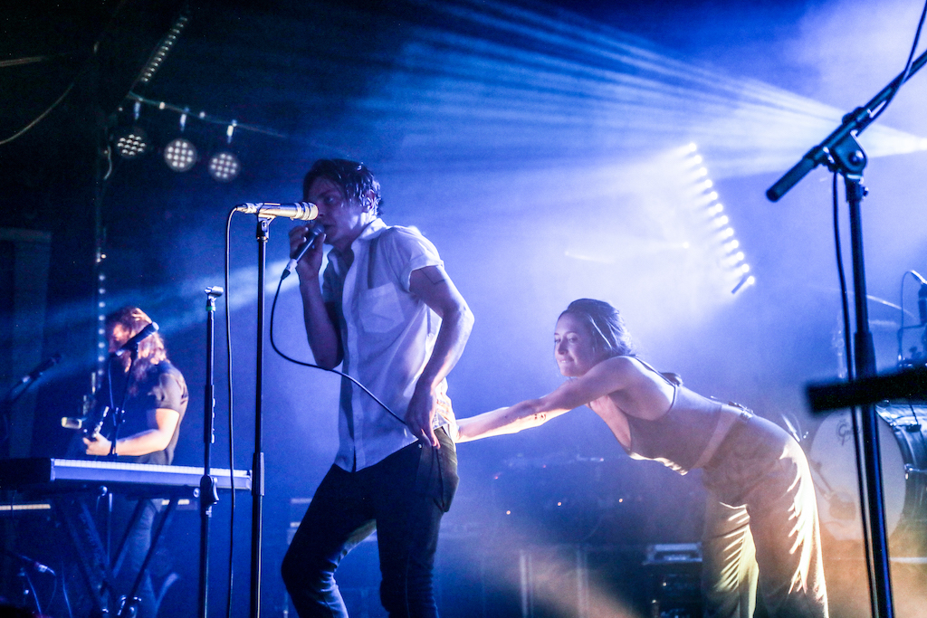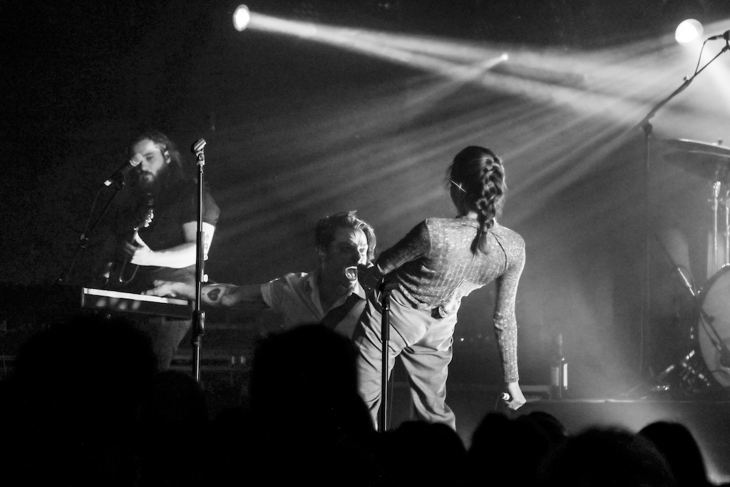 Some bands work best in the studio, and some bands are made to perform. July Talk are undeniably the latter, as they uprooted cult Tufnell Park venue The Dome last night with a killer 18-song set that left the entire room buzzing. They made a slick entrance to a pre-recorded spoken word introduction that already sent chills running up spines, accompanied by a heavy blues riff rife with premonition of what was to come.