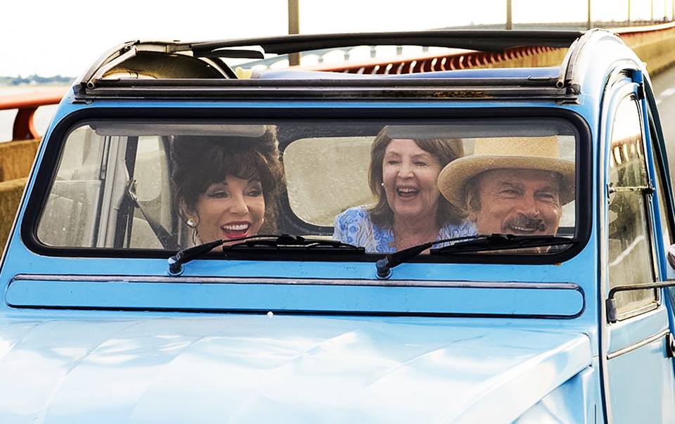 The still-fabulous-at-83 soap opera star, prolific film actress and novel writer Dame Joan Collins plays Helen, a washed up Hollywood actress journeying to the west coast of France for her ex-lover’s funeral, who brings downtrodden Priscilla (Pauline Collins) along for the ride.