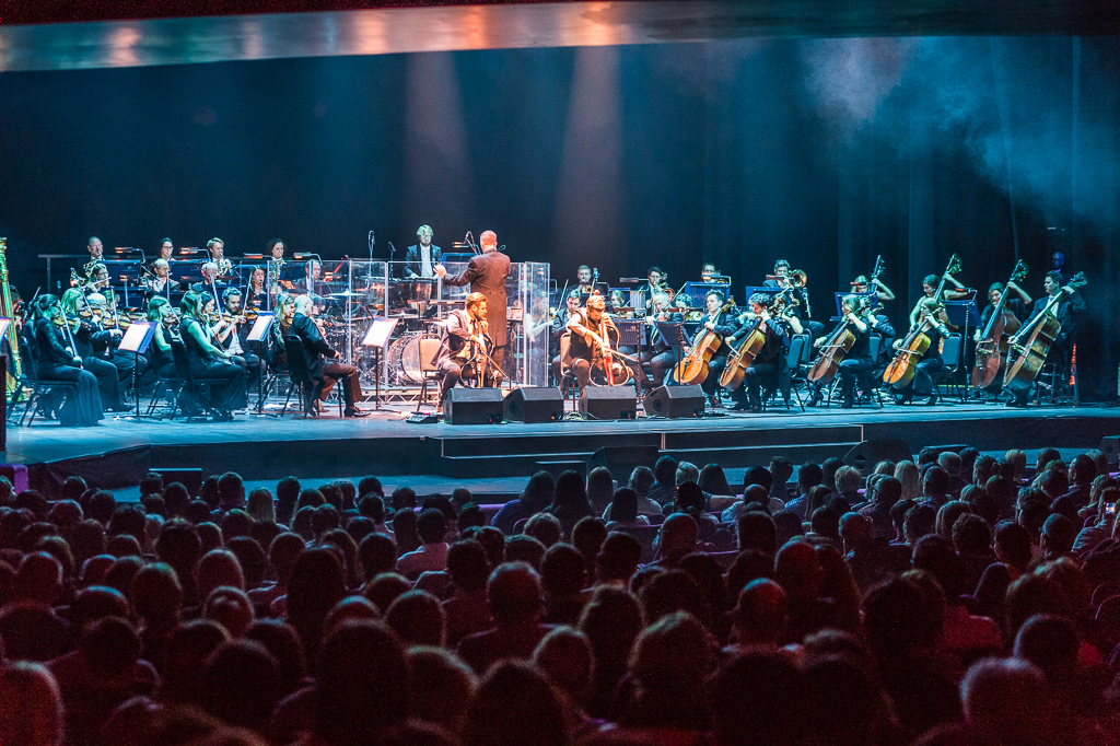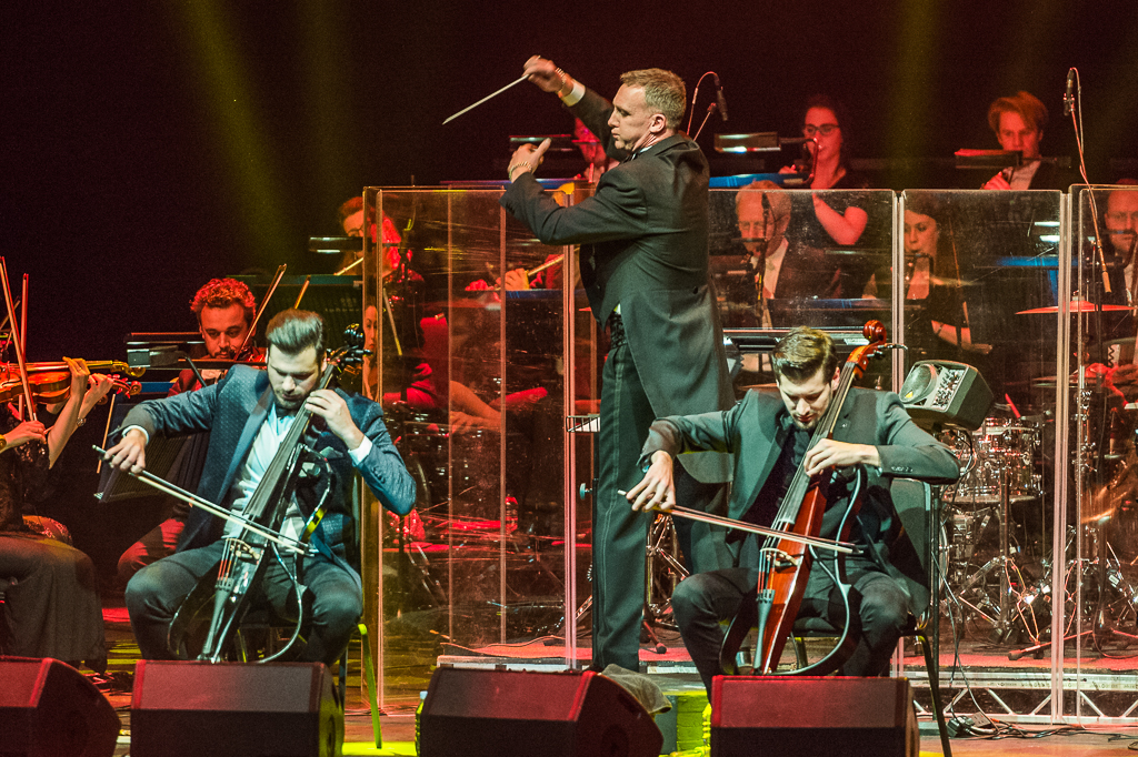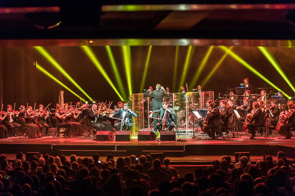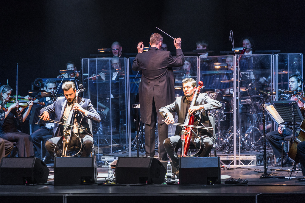 As they drew to a close on the selection from Score, a costume change signalled what Stjepan stated was “not just for the ladies” as the romantic first half was. All hell (literally at one point via some flashing red horns) broke loose as the duo rocked out on their best pop and rock tracks: AC/DC’s Highway to Hell, and Thunderstruck, Nirvana’s Smells Like Teen Spirit and The Rolling Stones’ Satisfaction – vocals provided by the audience. Even the orchestra’s conductor threw all caution to the wind and flung himself into the fray. But it had to be Michael Jackson’s Smooth Criminal (the video of which catapulted the two to fame in 2011) that no doubt stole the show, the performance of which has to be seen live to be believed: the speed, energy and total ownership and reincarnation of the track via electric cello strings a sort of musical miracle. As Stjepan span circles and ran about the stage headbanging with his fellow orchestral string players while still playing his hung from his shoulders, you couldn’t help but think their recent move to a more traditional soundscape is a step away from the genre-bending brilliance that seems their more natural habitat. Overall though, the contrast worked and they had the crowd enraptured from melodic start to wild finish.