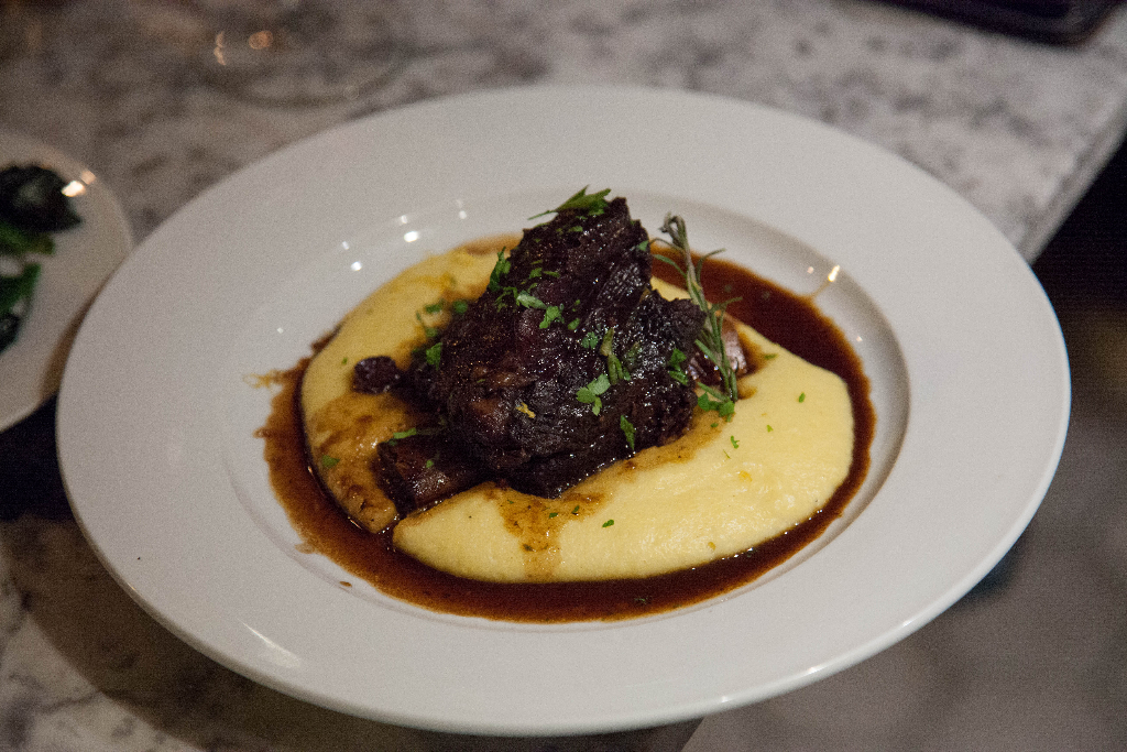 Beef short-rib atop a mound of soft polenta is all rustic Southern charm. Unlike many short-ribs, it’s been cooked just long enough for the meat to become perfectly tender but not so long that it’s falling from the bone. Normally, those luscious tangles of meat are the holy mecca of slow cooking but here the slightly more robust meat is a better match for the polenta.