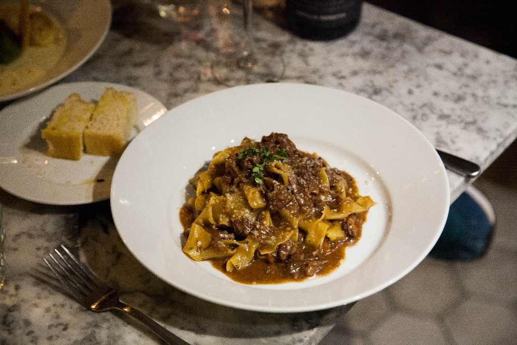 Which is why it’s always enjoyable to see Italian restaurants dive into both with aplomb. Our primi course is a prime example of this. On one side, there’s gnudi plated up like it’s modern art, the beautiful little ricotta dumplings sandwiched between crisps of fried cheese and plenty of sage. Sitting atop a butter-rich parmesan sauce, it’s a bit of classic, refined cooking that could easily pass at a higher end restaurant. On the other side of the table there’s a simple but utterly delicious pappardelle with wild boar ragu. The sauce is so stunningly rich, a masterpiece of rural decadence, the meat melting into it with the same sigh of contentedness that escapes our lips as we eat it. It’s an utterly simple dish, but one that can be only be made with time and care.