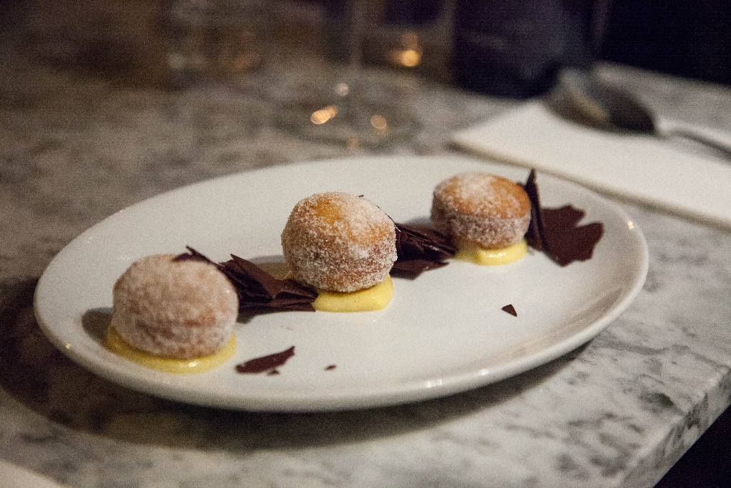 Desserts are both fairly simplistic. Bombolini are simple Italian doughnuts, flavoured with melting flakes of chocolate and a little slick of custard. It’s nice enough, though nothing you’d write home about. A shot of espresso poured over salted caramel gelato is better, that contrast between sweet and savoury, hot and cold, working well to create an interesting dish. The ice cream itself isn’t too rich or too salty either, though we could perhaps do with a little less of it.